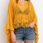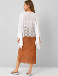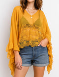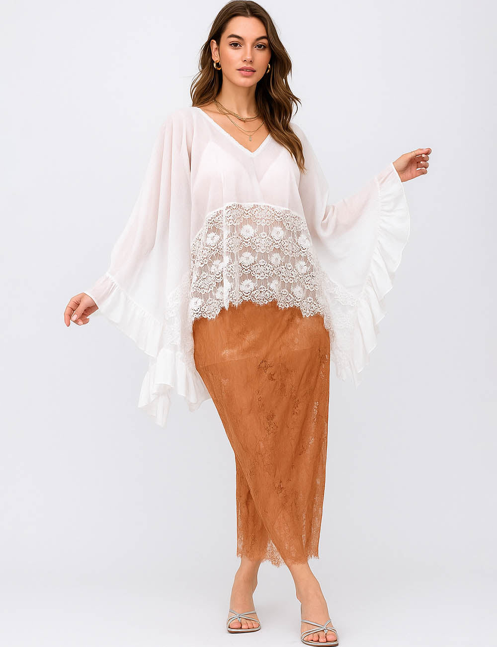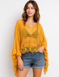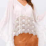 Ladies V-Neck See Through Floral Embroidery Mesh Blouse