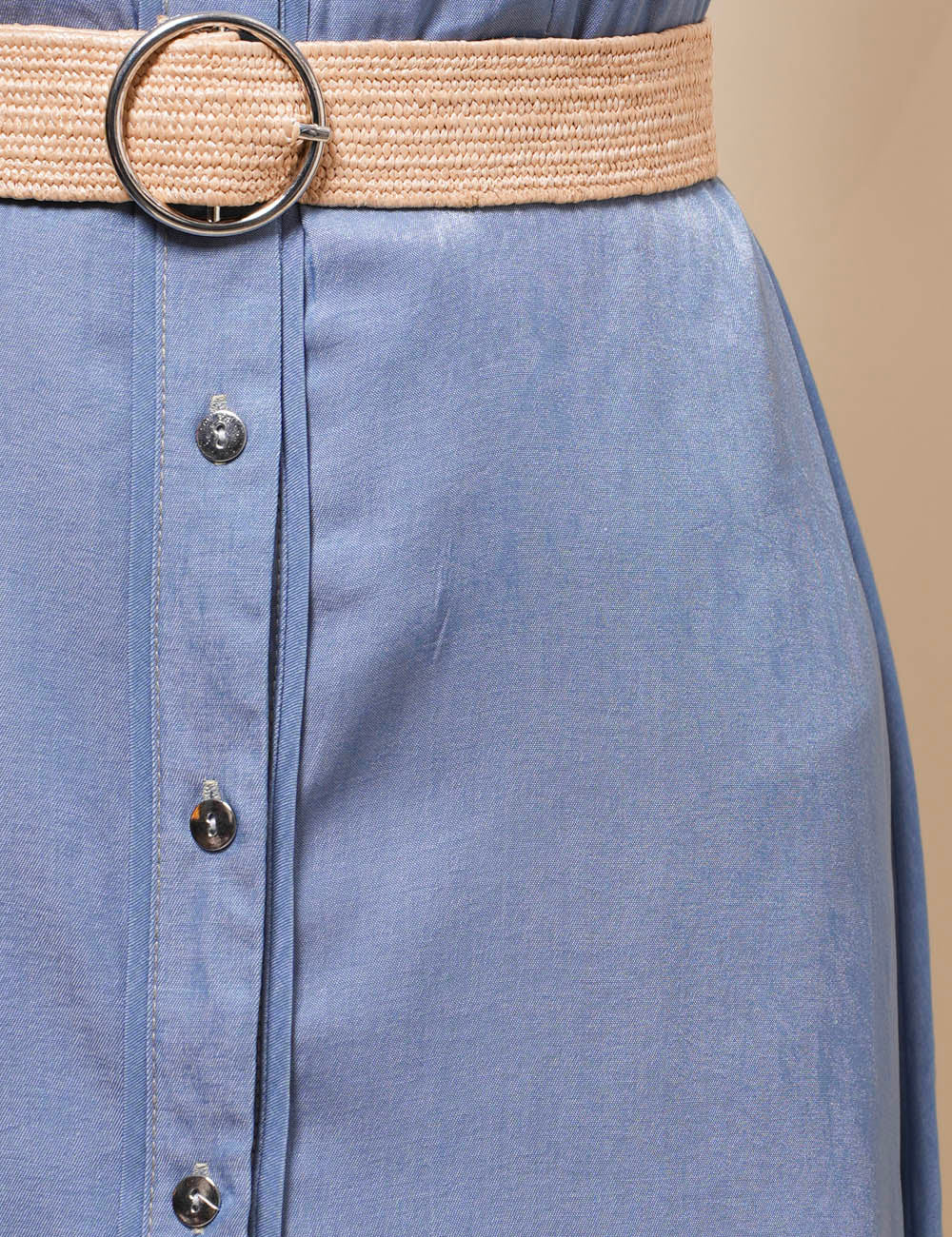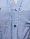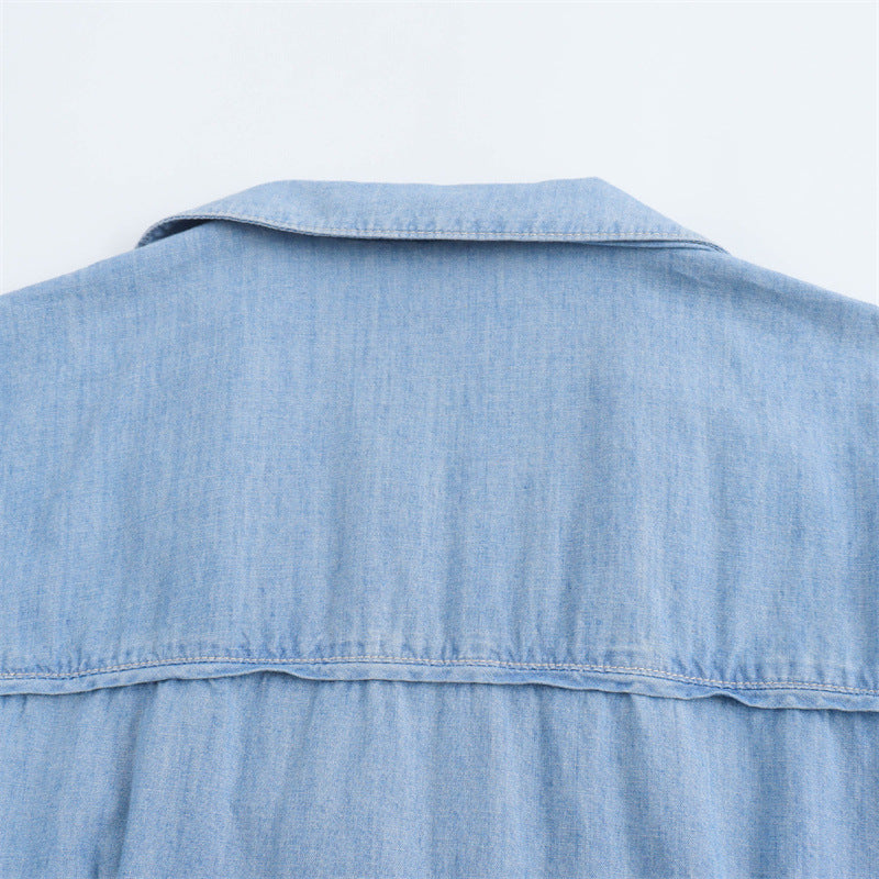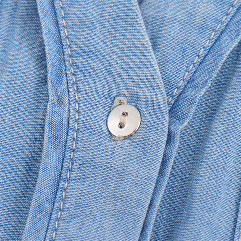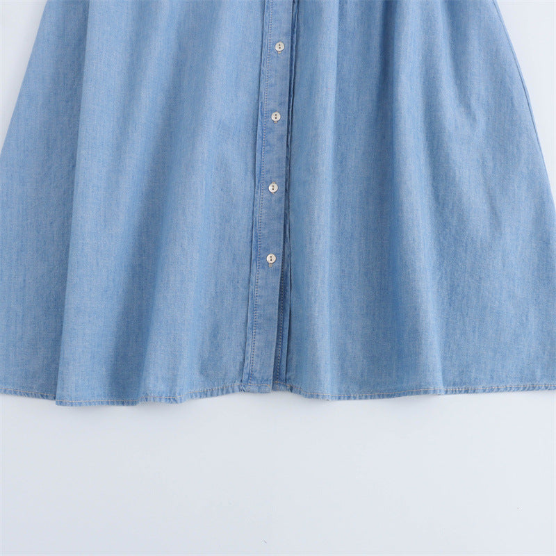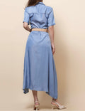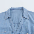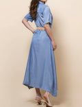 Ladies V-Neck Short Sleeves Denim Midi Dress SKD50031
