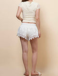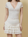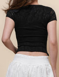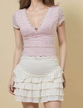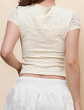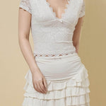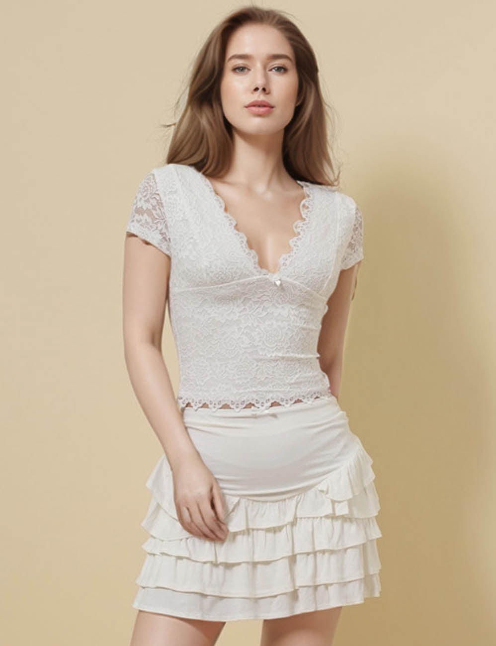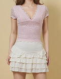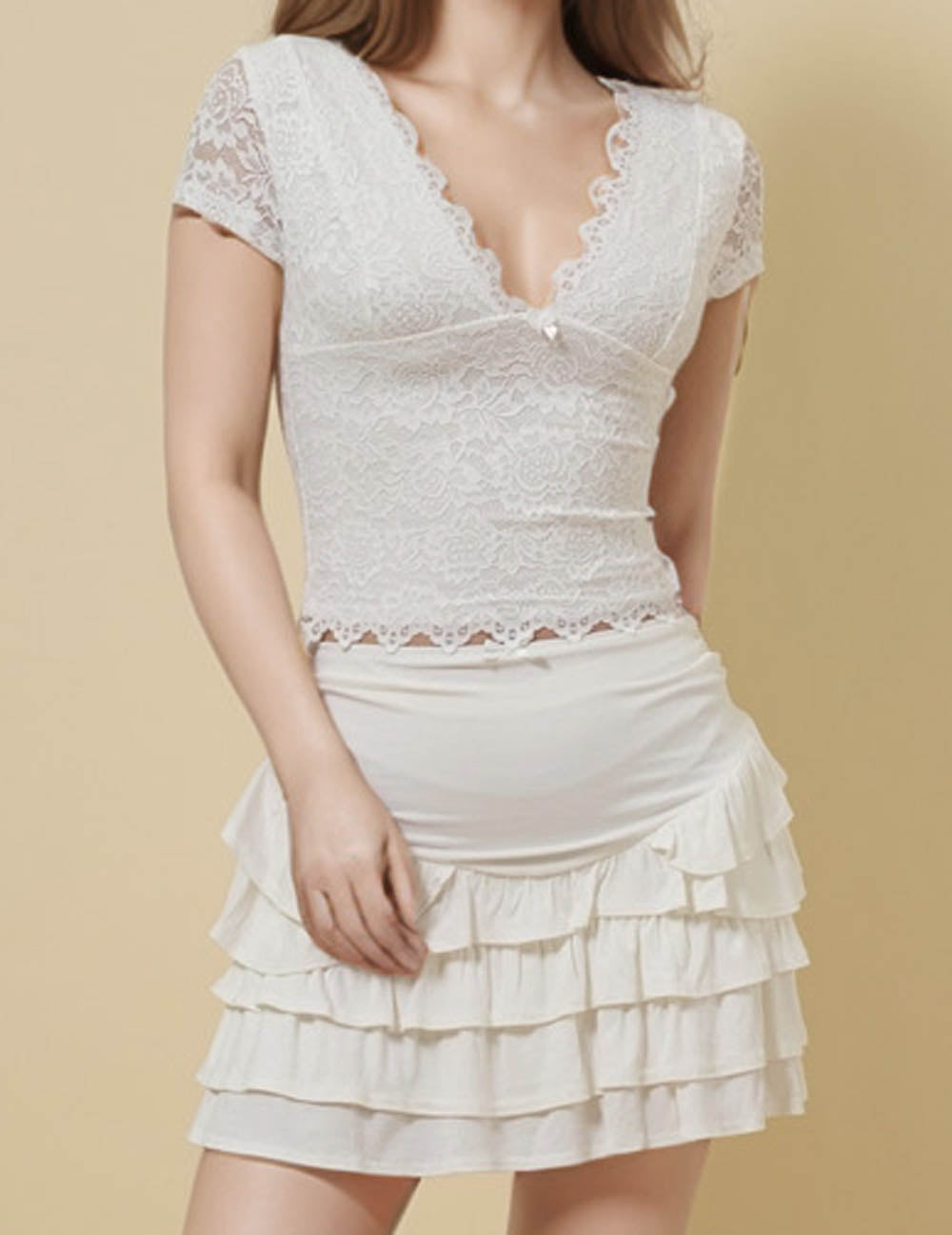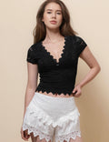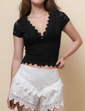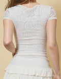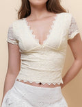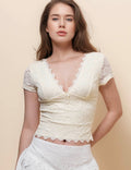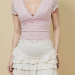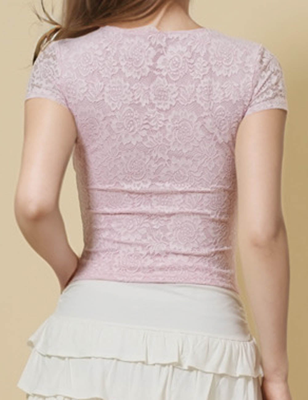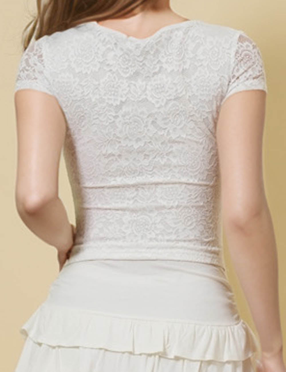 Ladies V-Neck Short Sleeves Floral Lace Top 8SKT51013