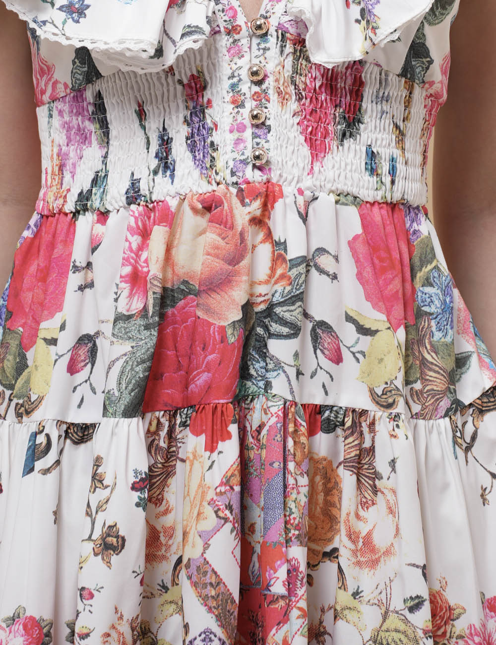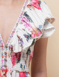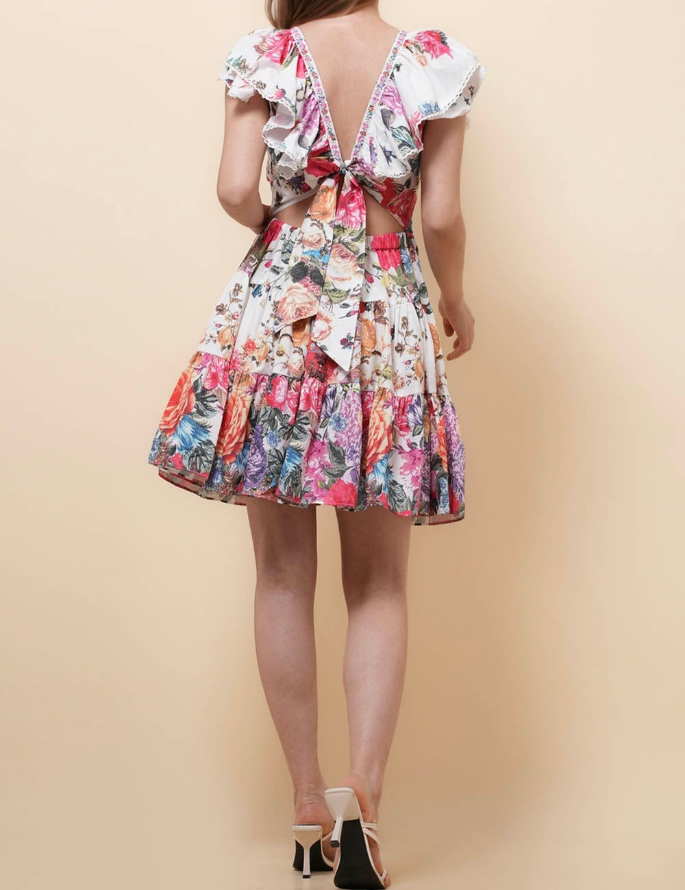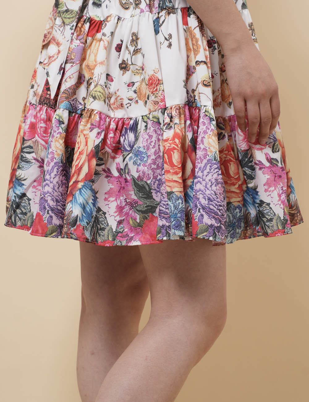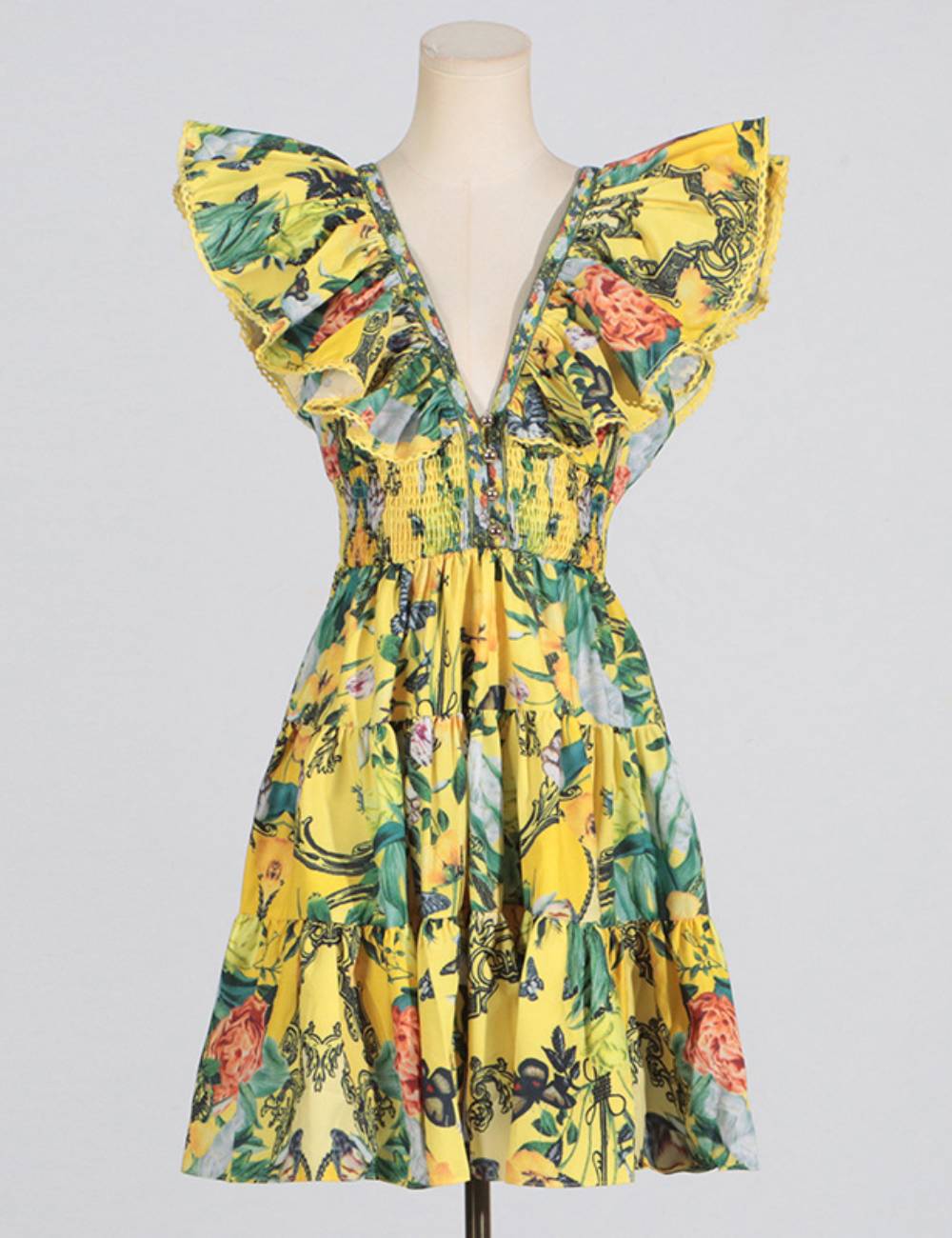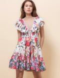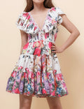Ladies V-Neck Short Sleeves Floral Print Mini Dress SKD51129