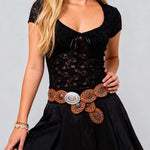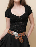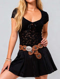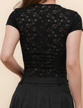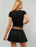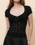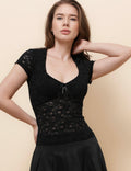 Ladies V-Neck Short Sleeves Hollow Out Crop Top SKT51084