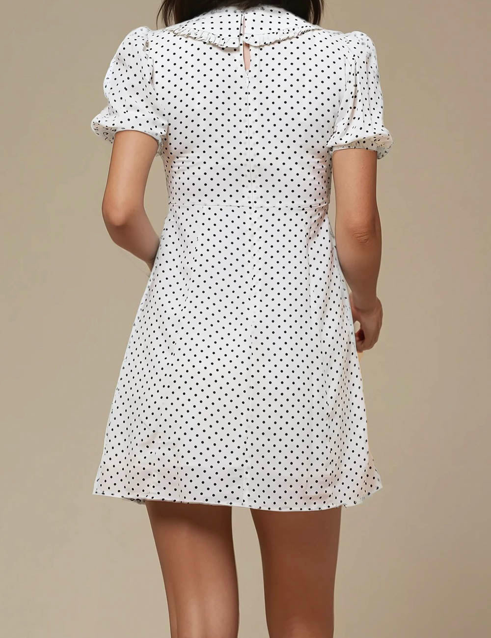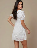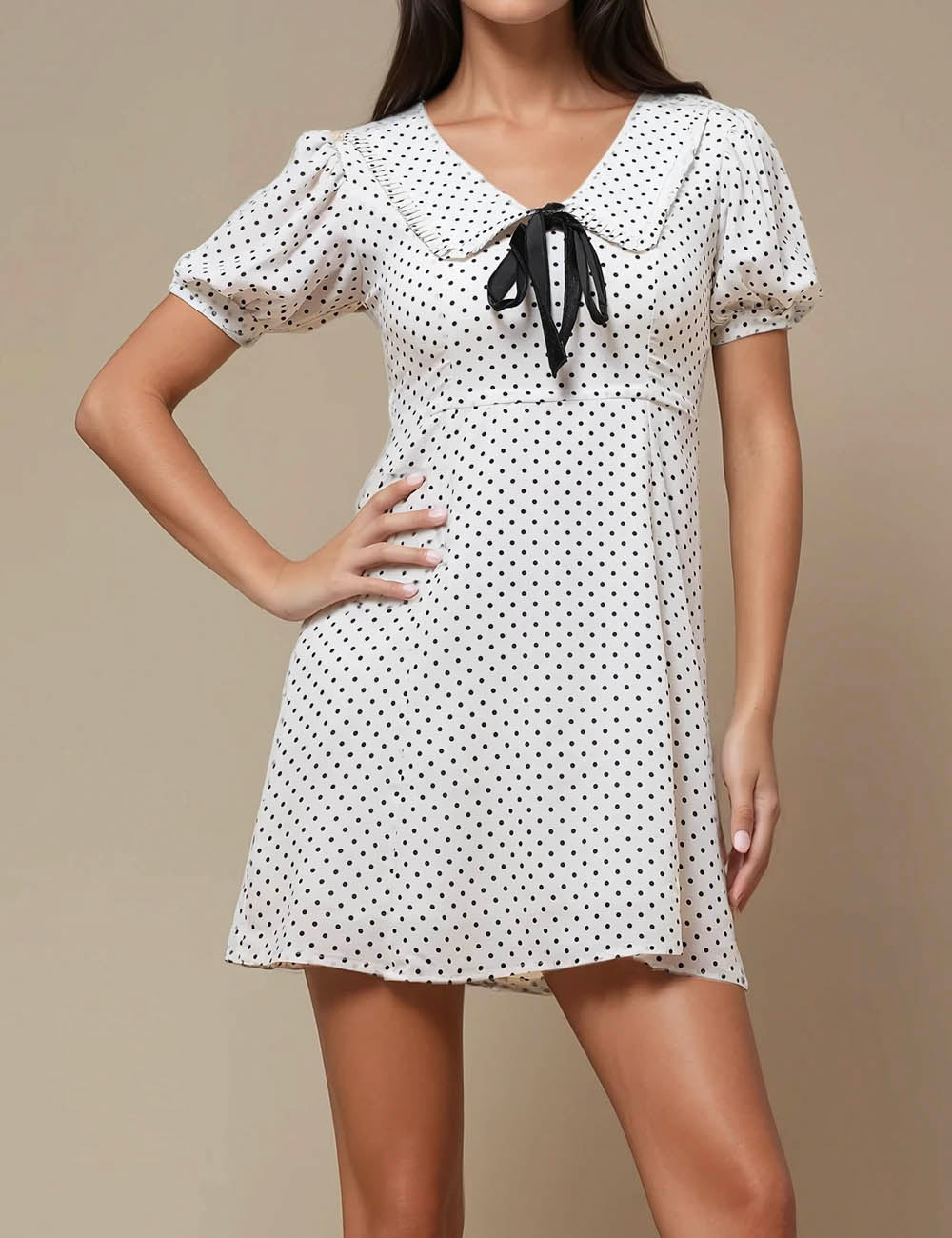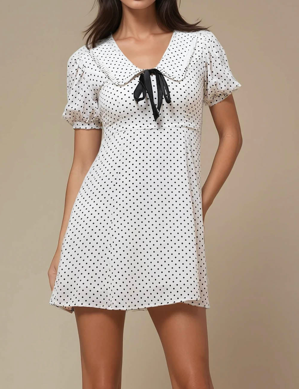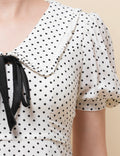Ladies V-Neck Short Sleeves Polka Dot Mini Dress SKD50186