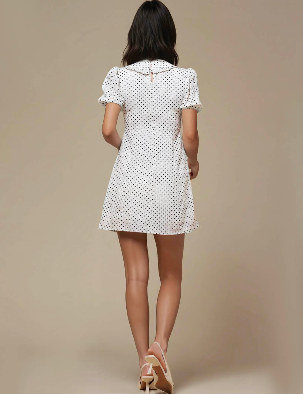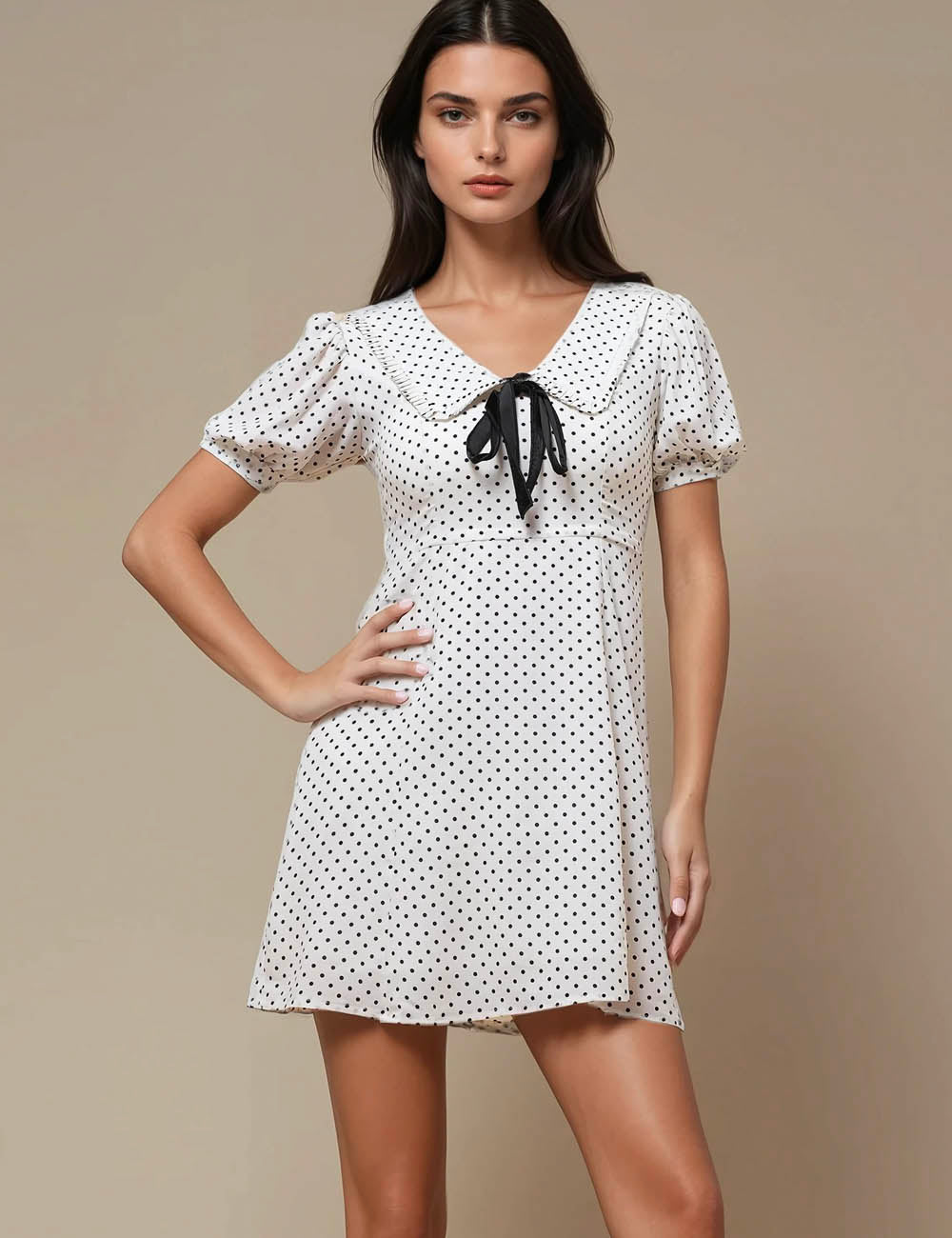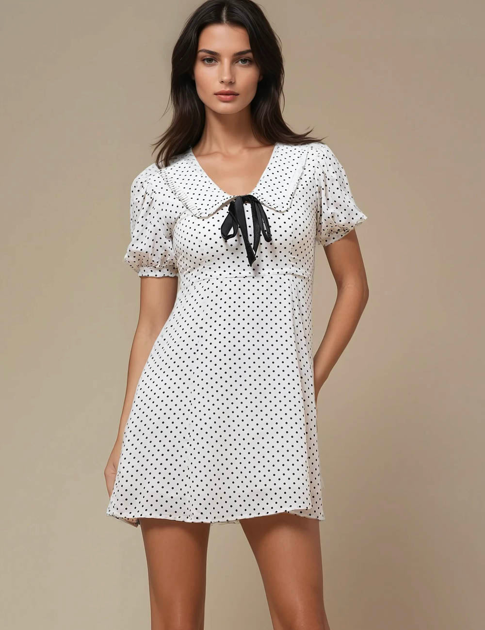 Ladies V-Neck Short Sleeves Polka Dot Mini Dress SKD50186