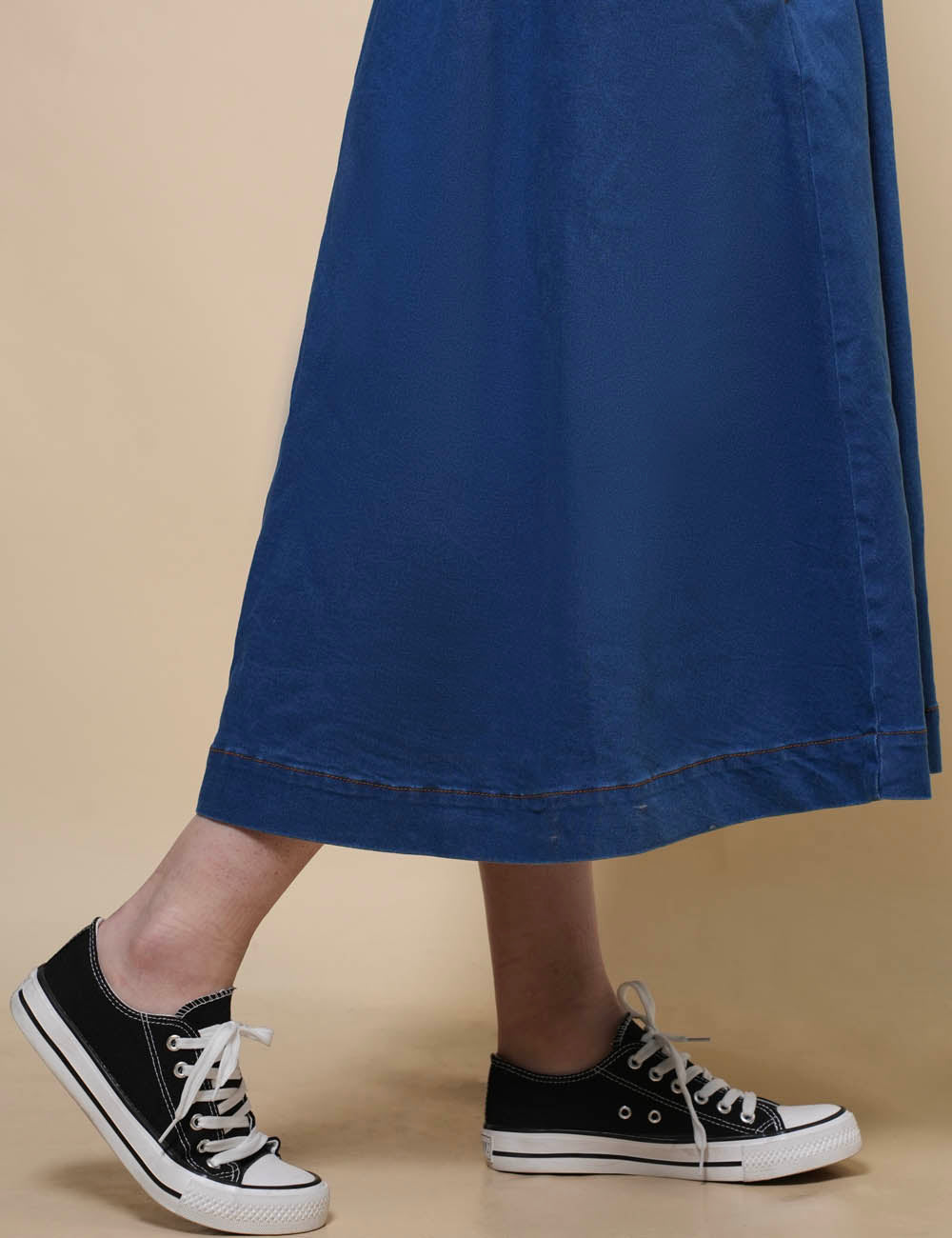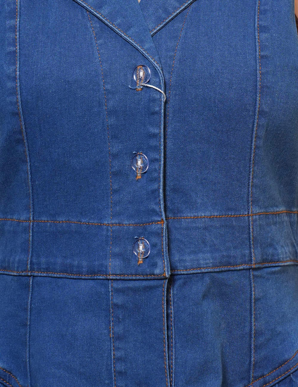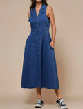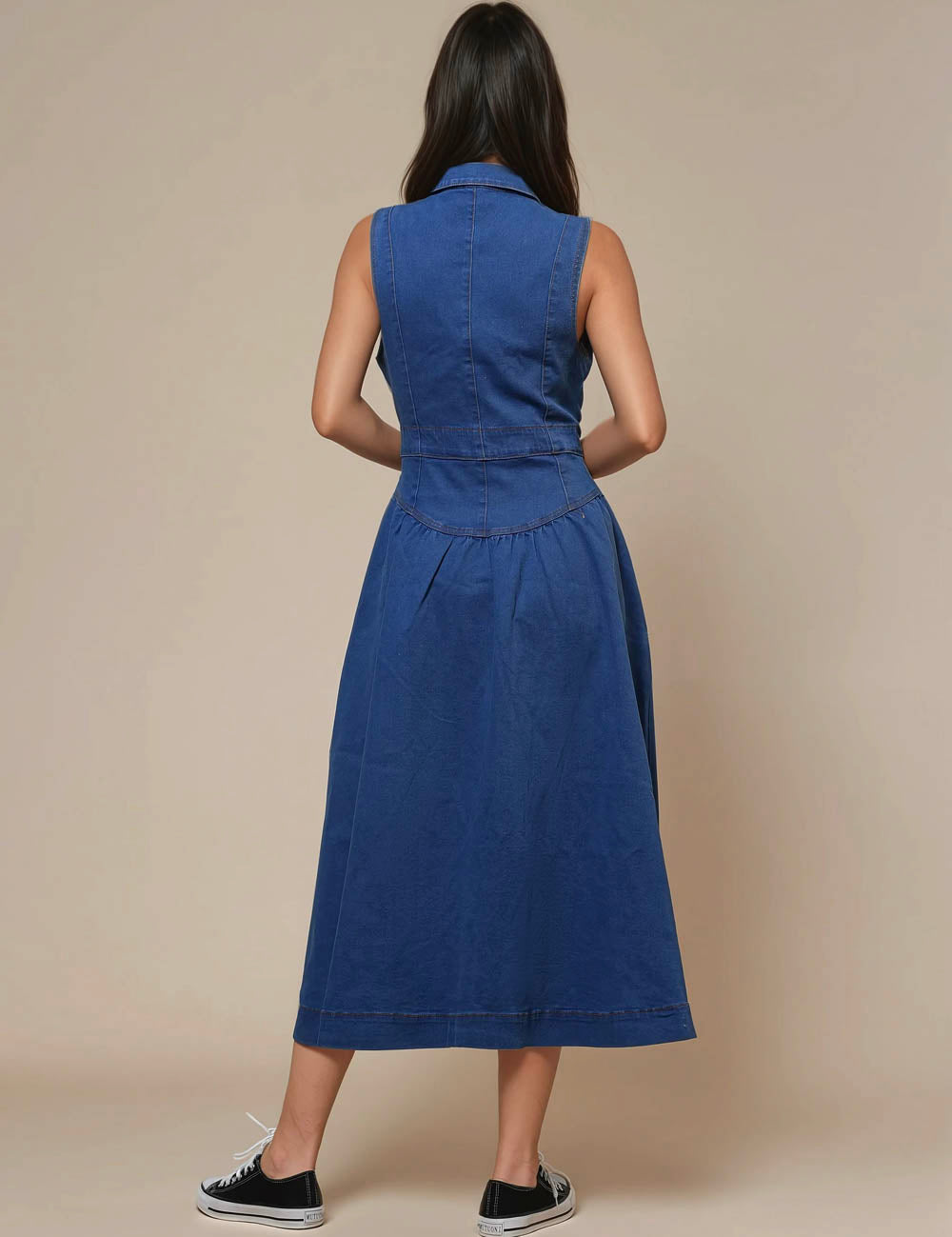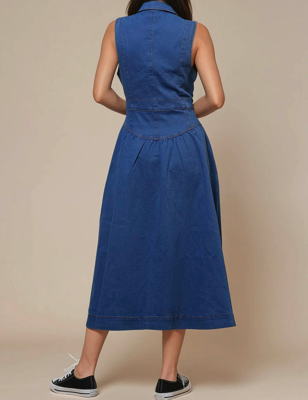 Ladies V-Neck Sleeveless Button Denim Midi Dress SKD50016
