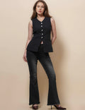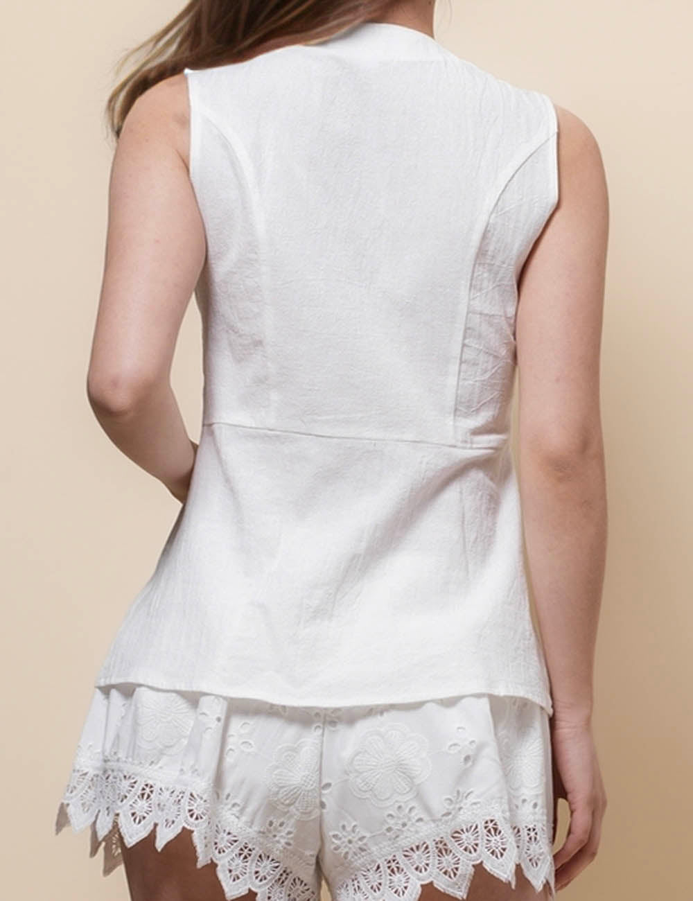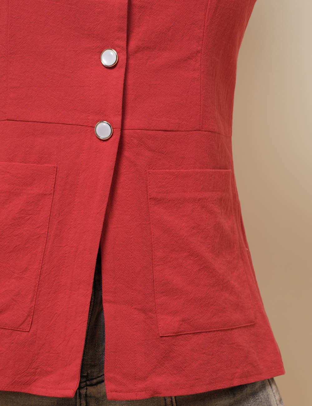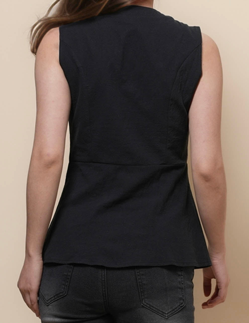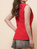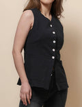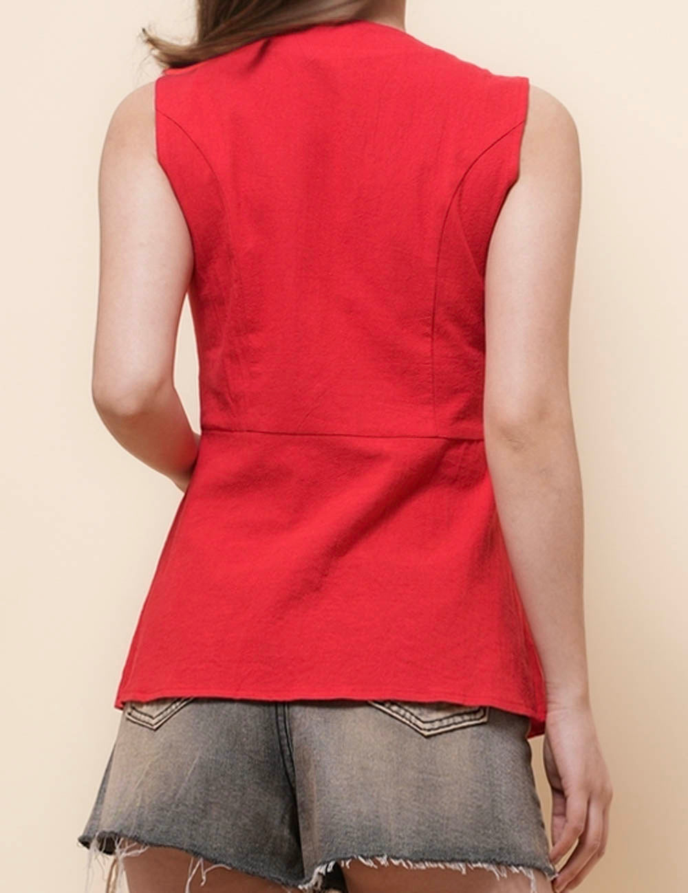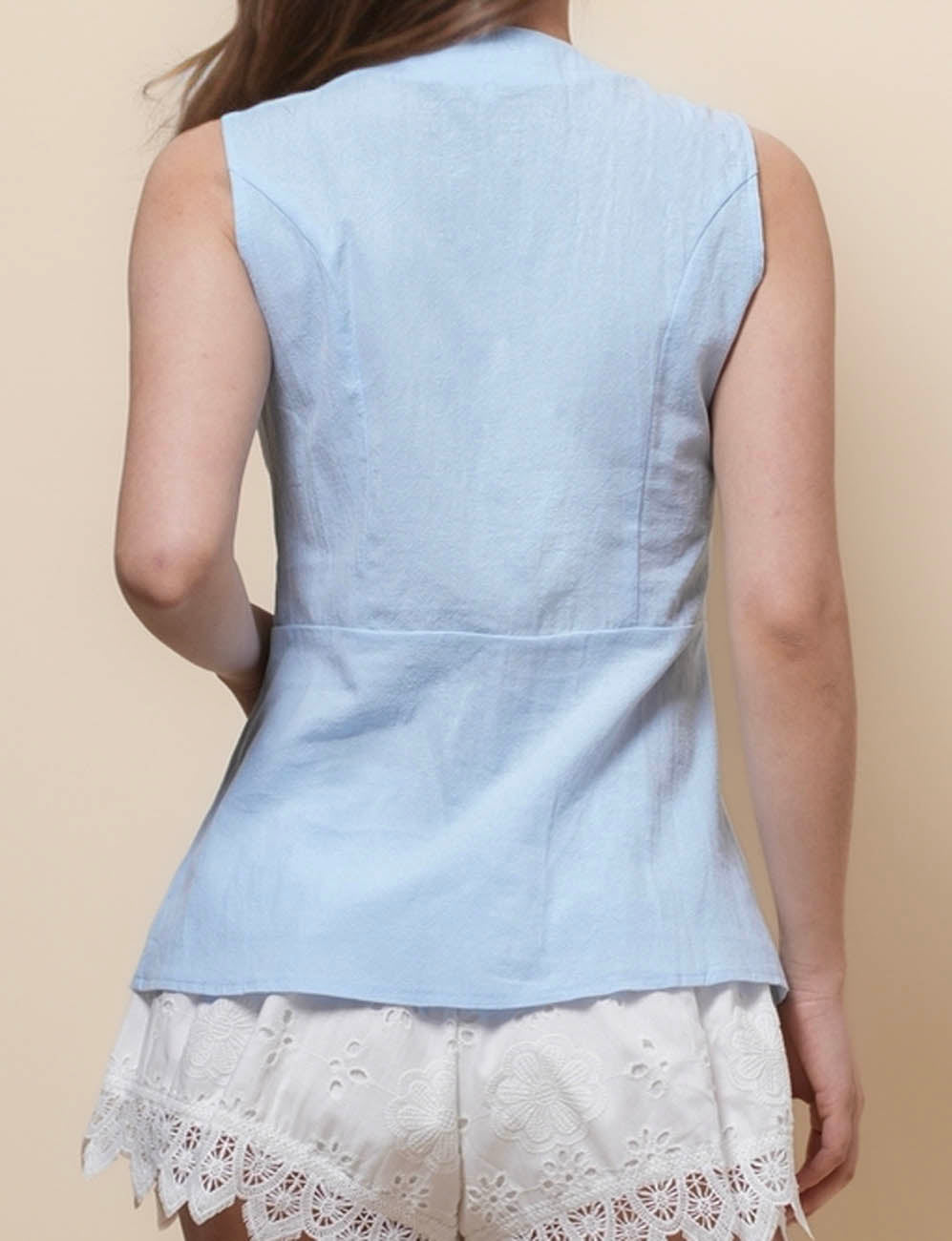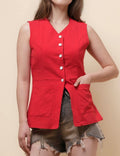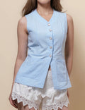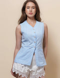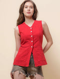 Ladies V-Neck Sleeveless Button Vest Top SKT51037
