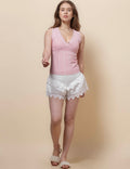 Ladies V-Neck Sleeveless Floral Lace Knit Top SKT51063