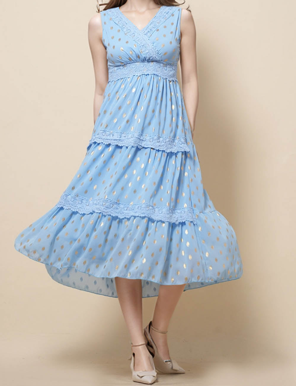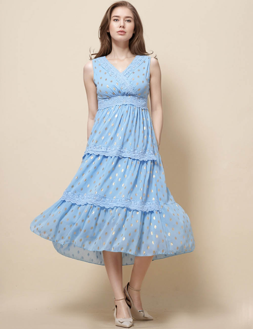 Ladies V-Neck Sleeveless Hollow Out Maxi Dress SKD51197