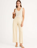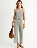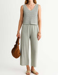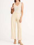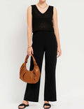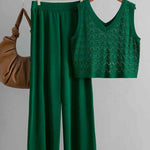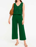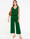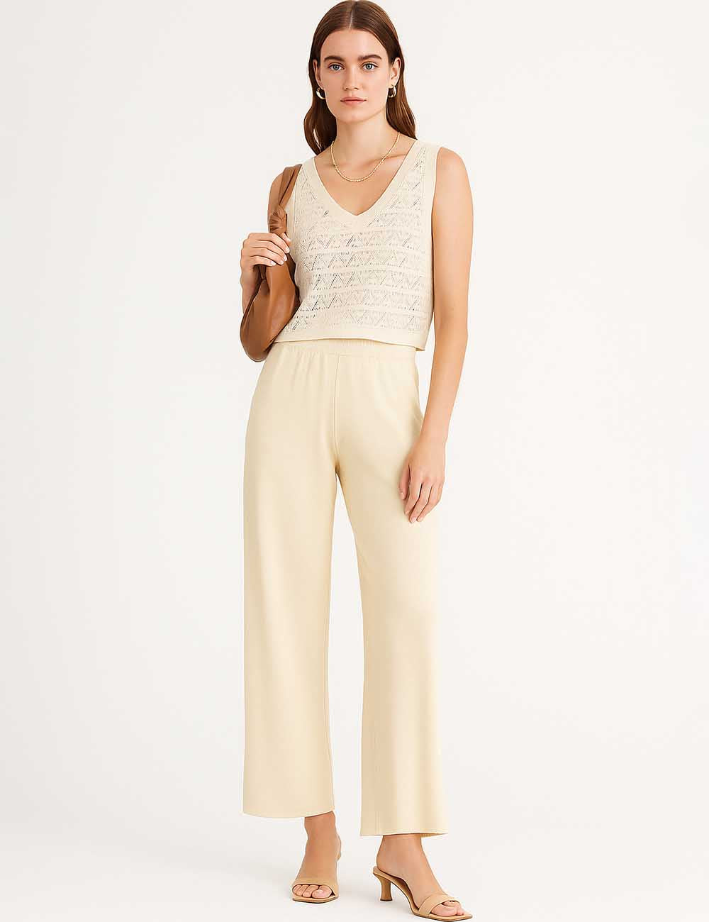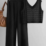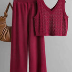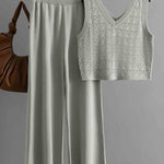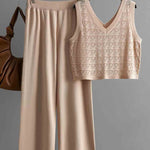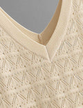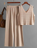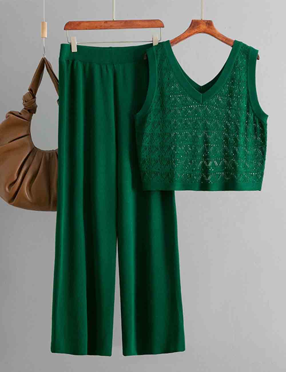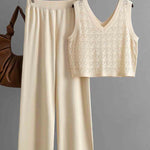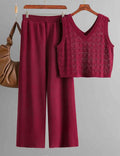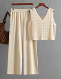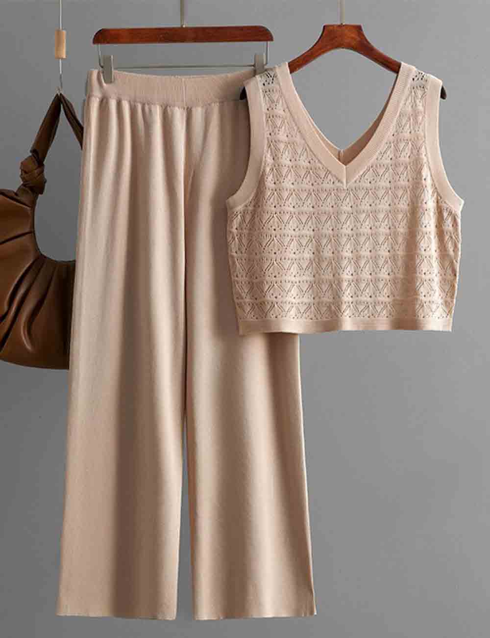 Ladies V-Neck Solid Color Hollow Out Knit Vest & Pants Set