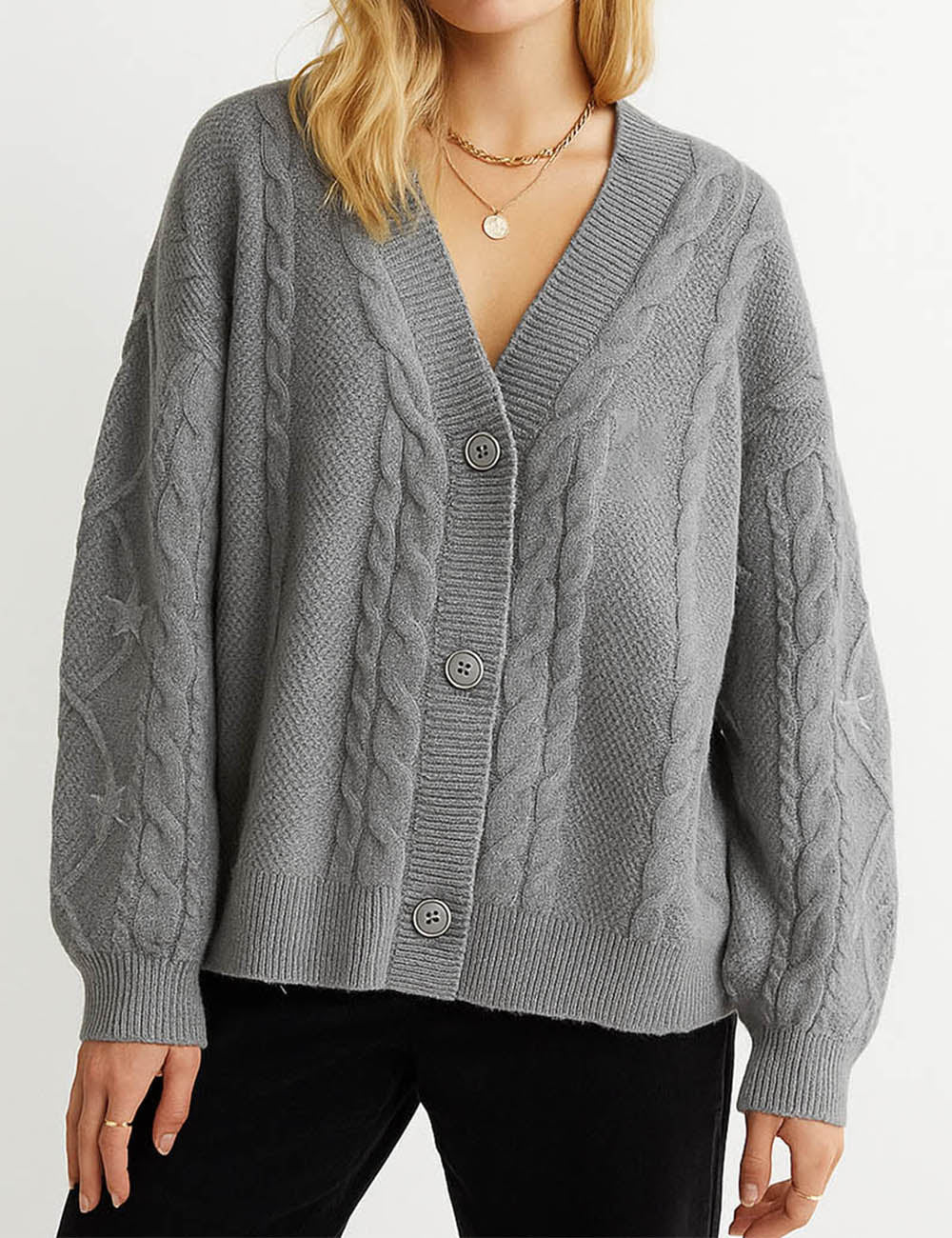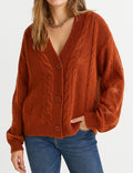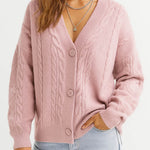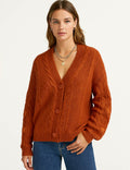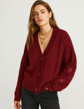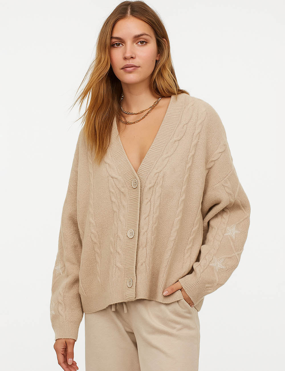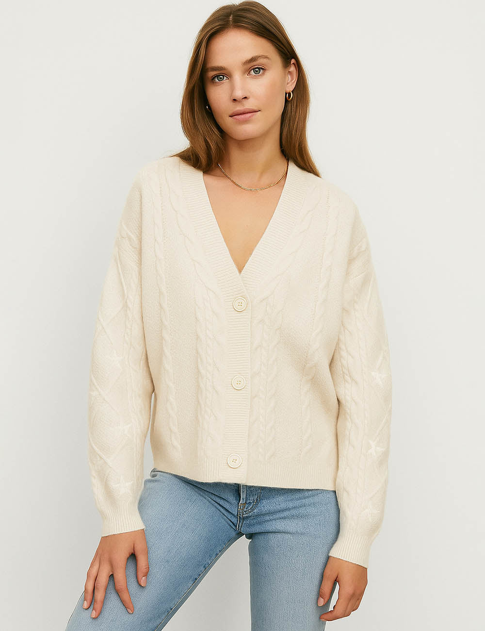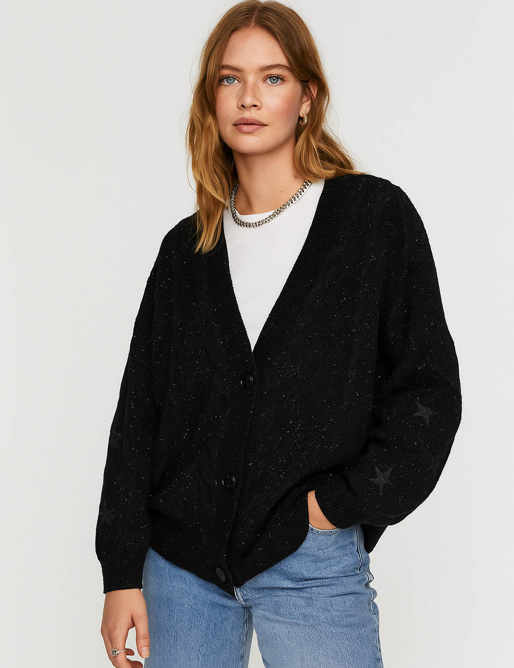 Ladies V-Neck Star Embroidery Button Front Knit Cardigan