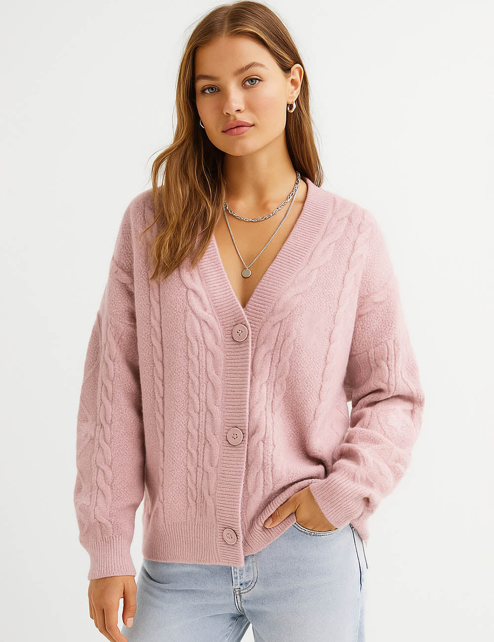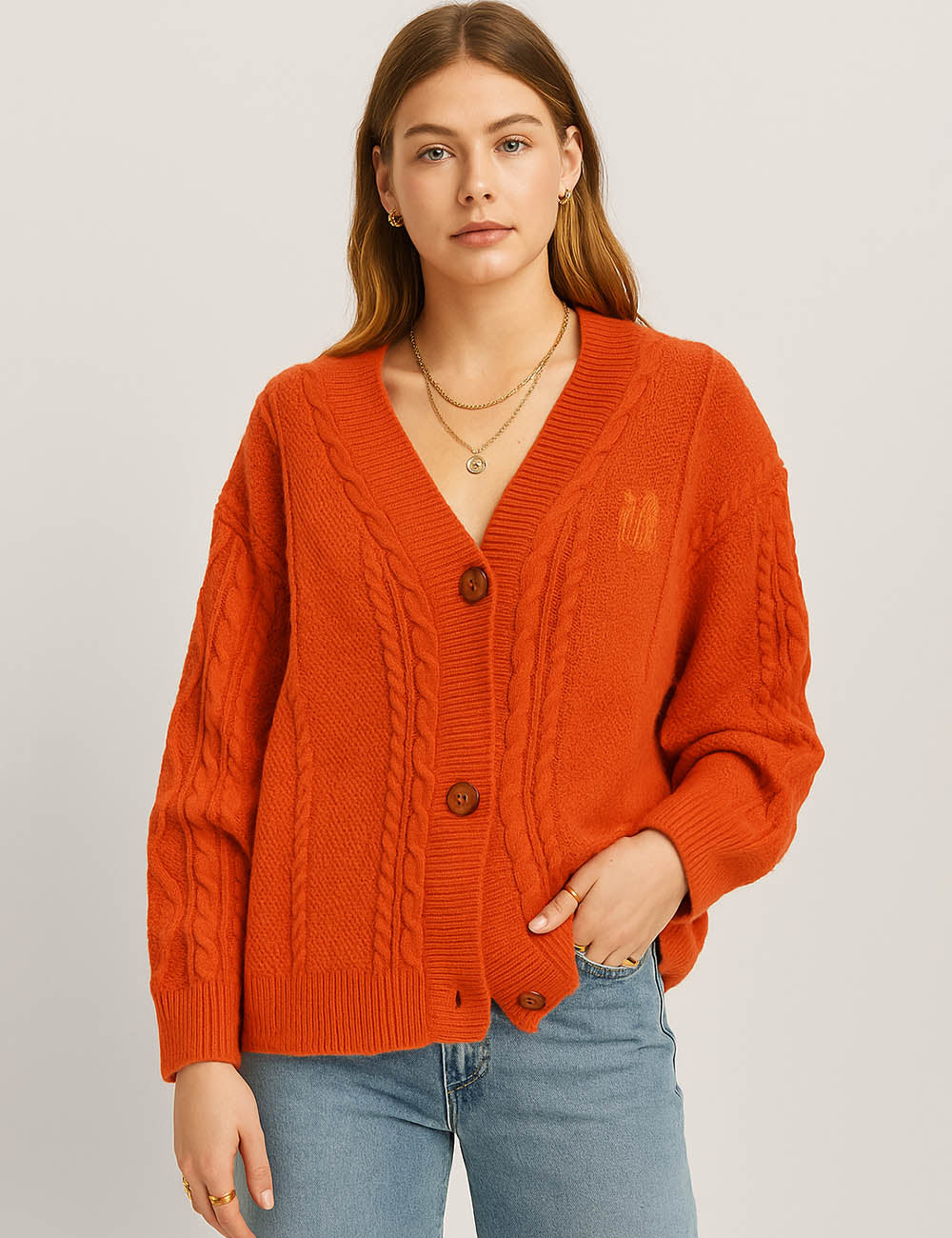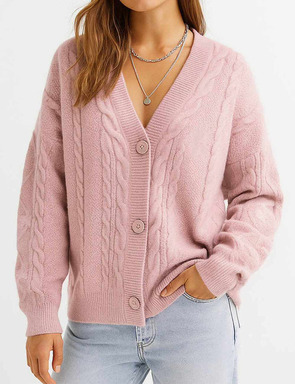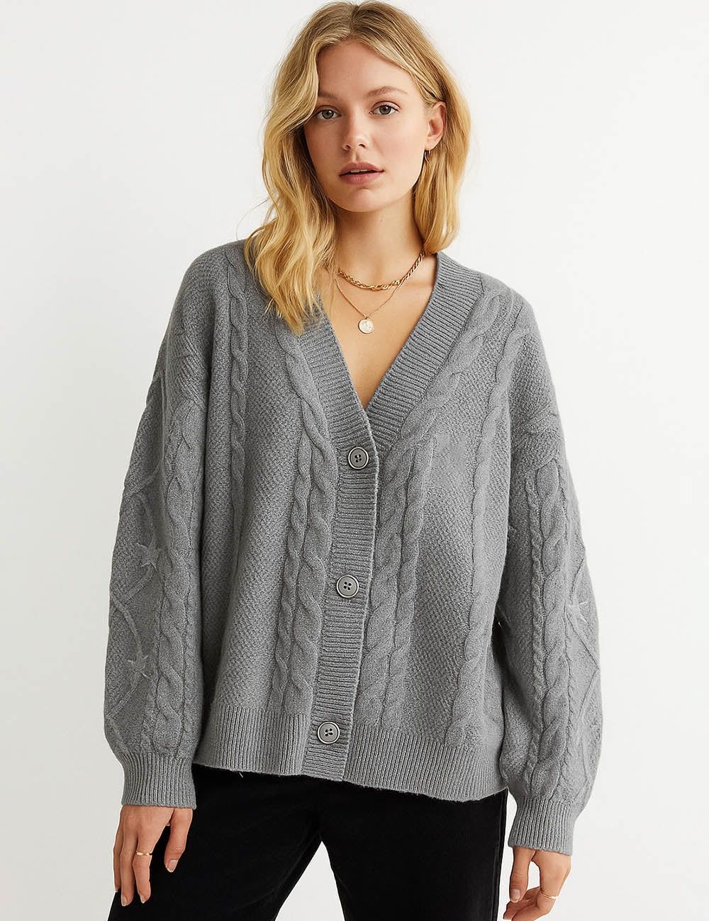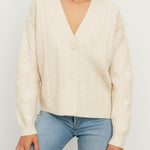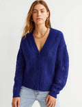 Ladies V-Neck Star Embroidery Button Front Knit Cardigan