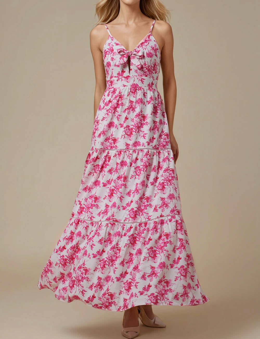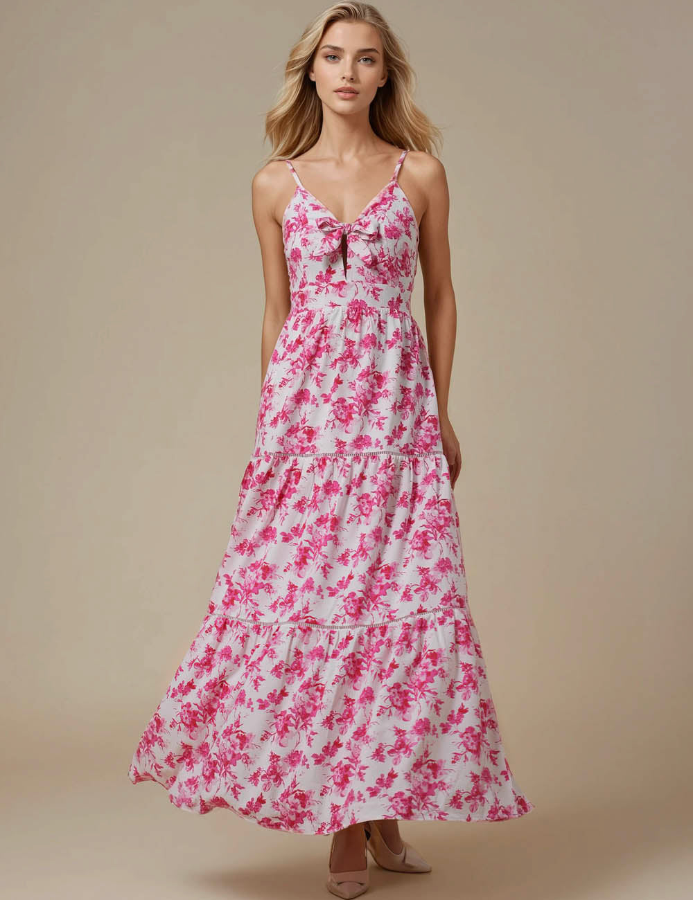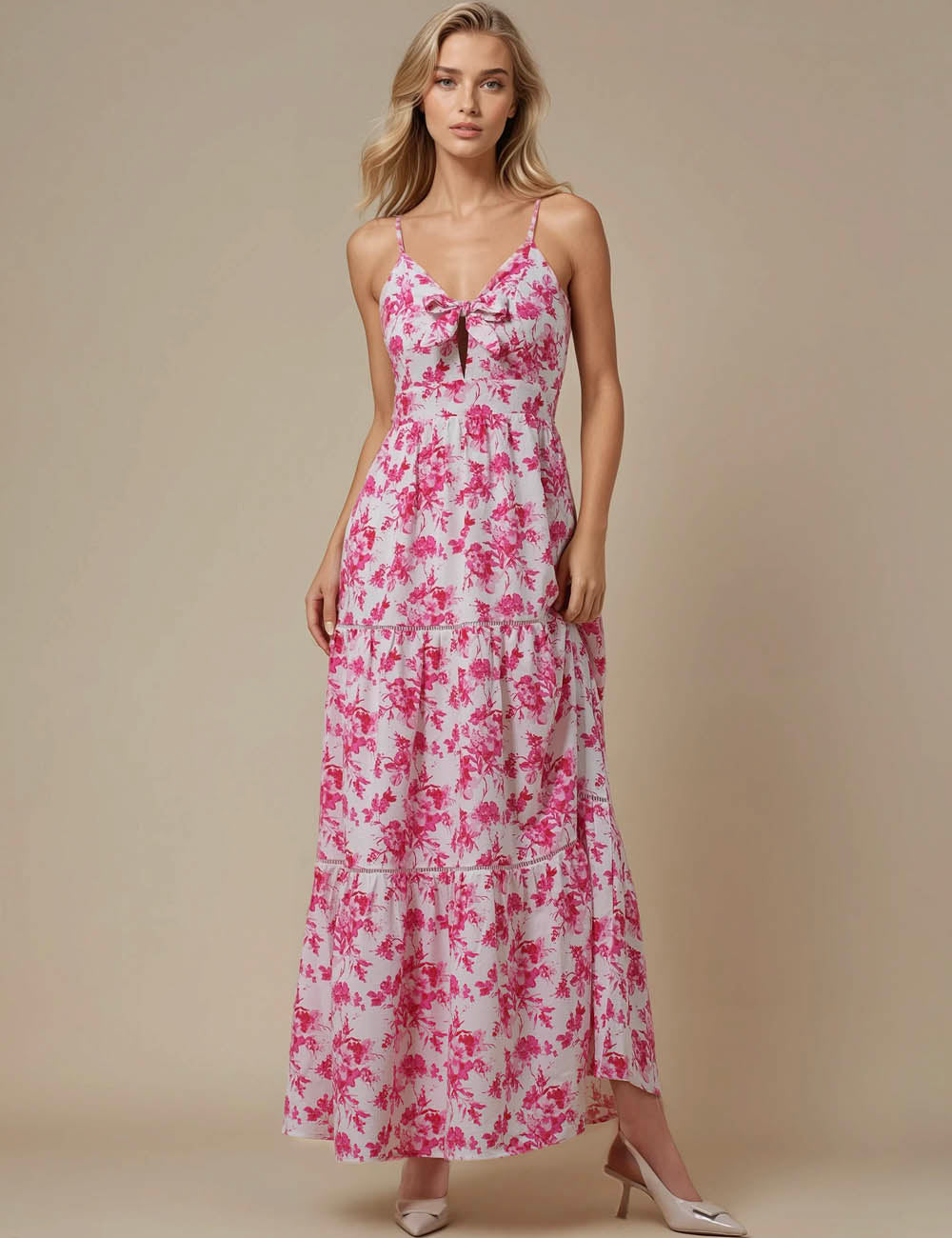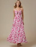 Ladies V-Neck String Shoulder Floral Print Maxi Dress JD5012