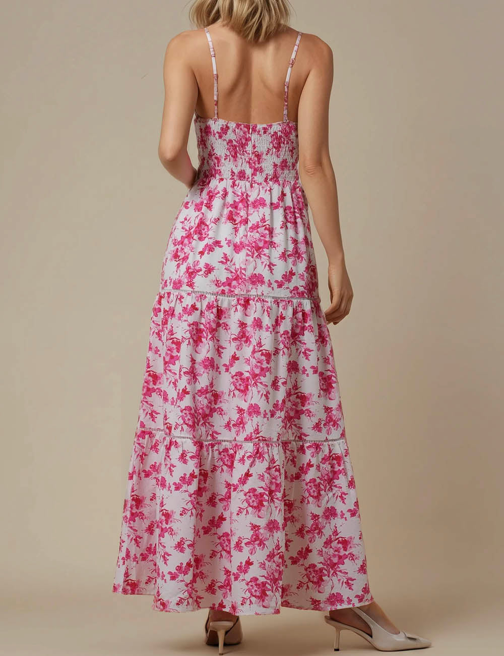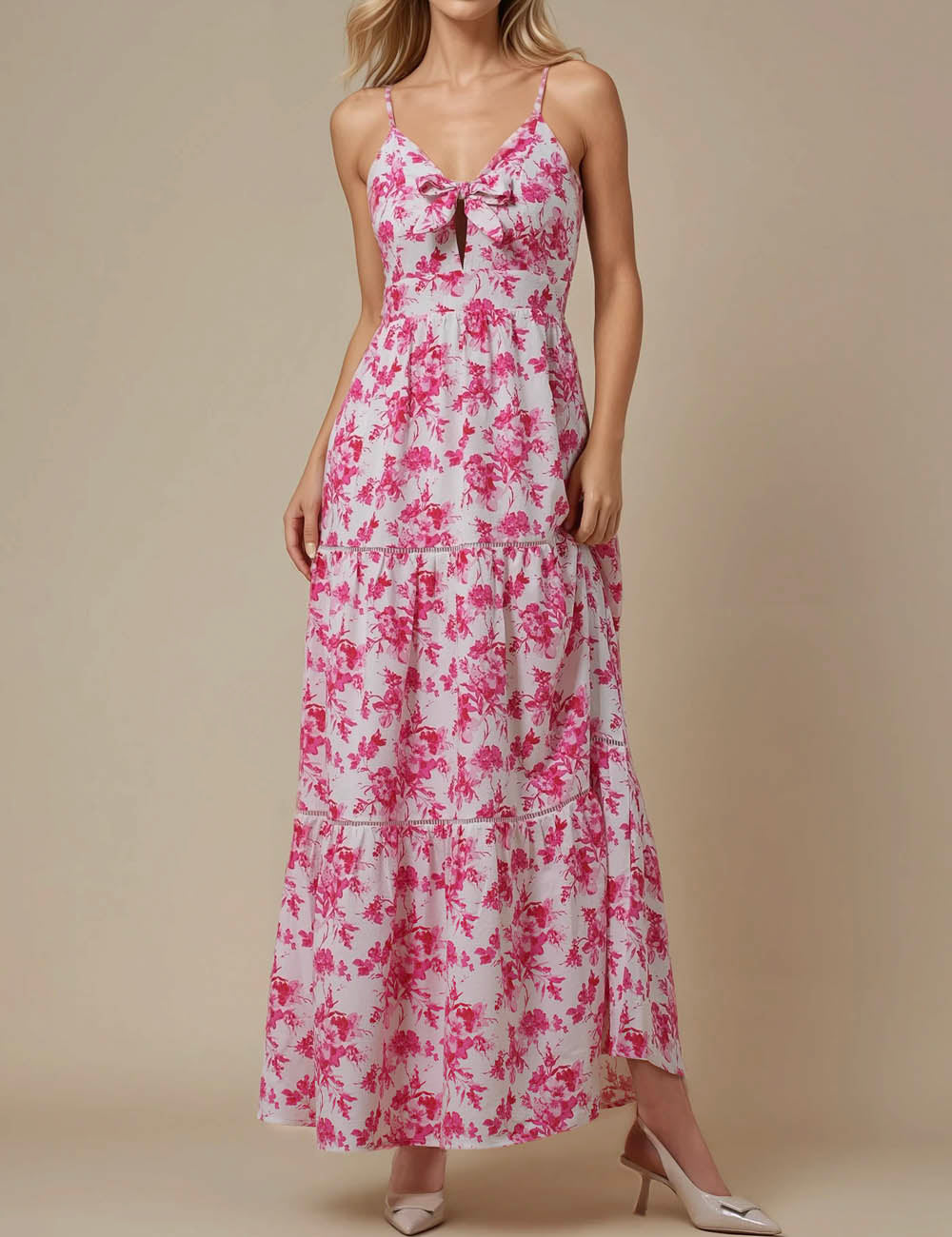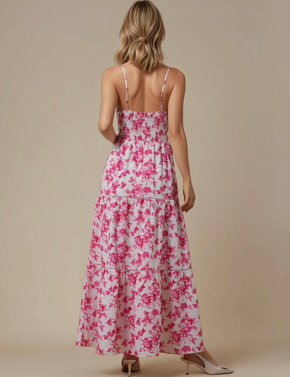 Ladies V-Neck String Shoulder Floral Print Maxi Dress JD5012