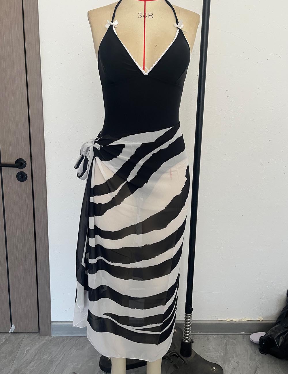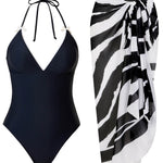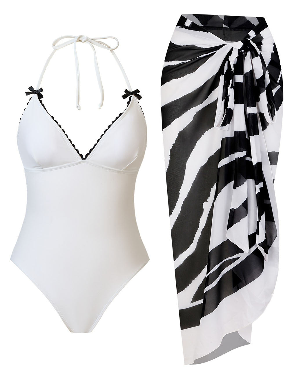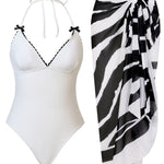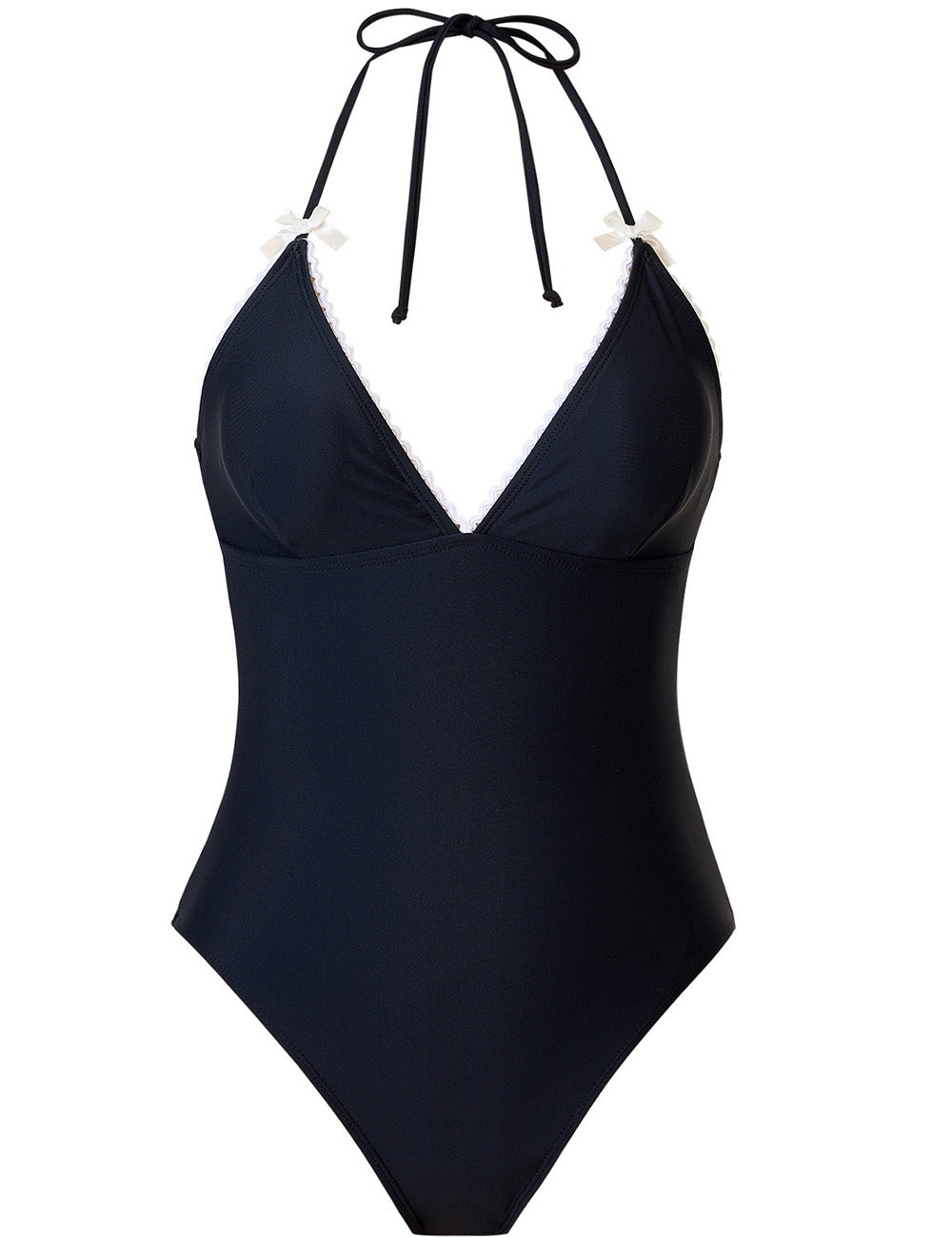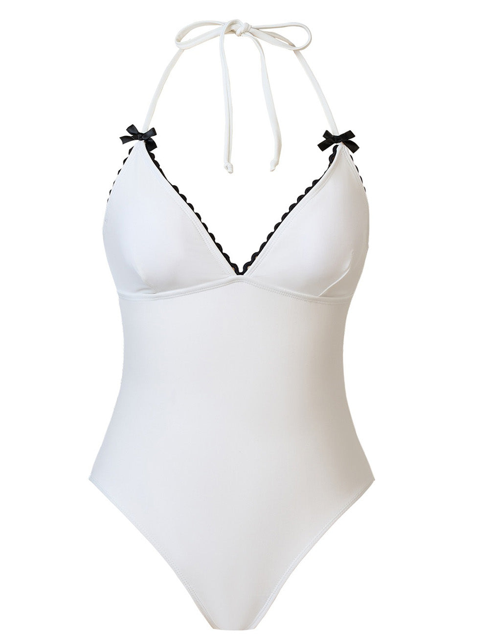 Ladies V-Neck String Tie One Piece Swimwear with Salong