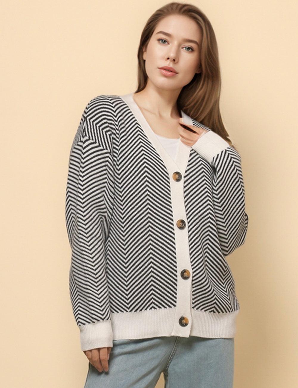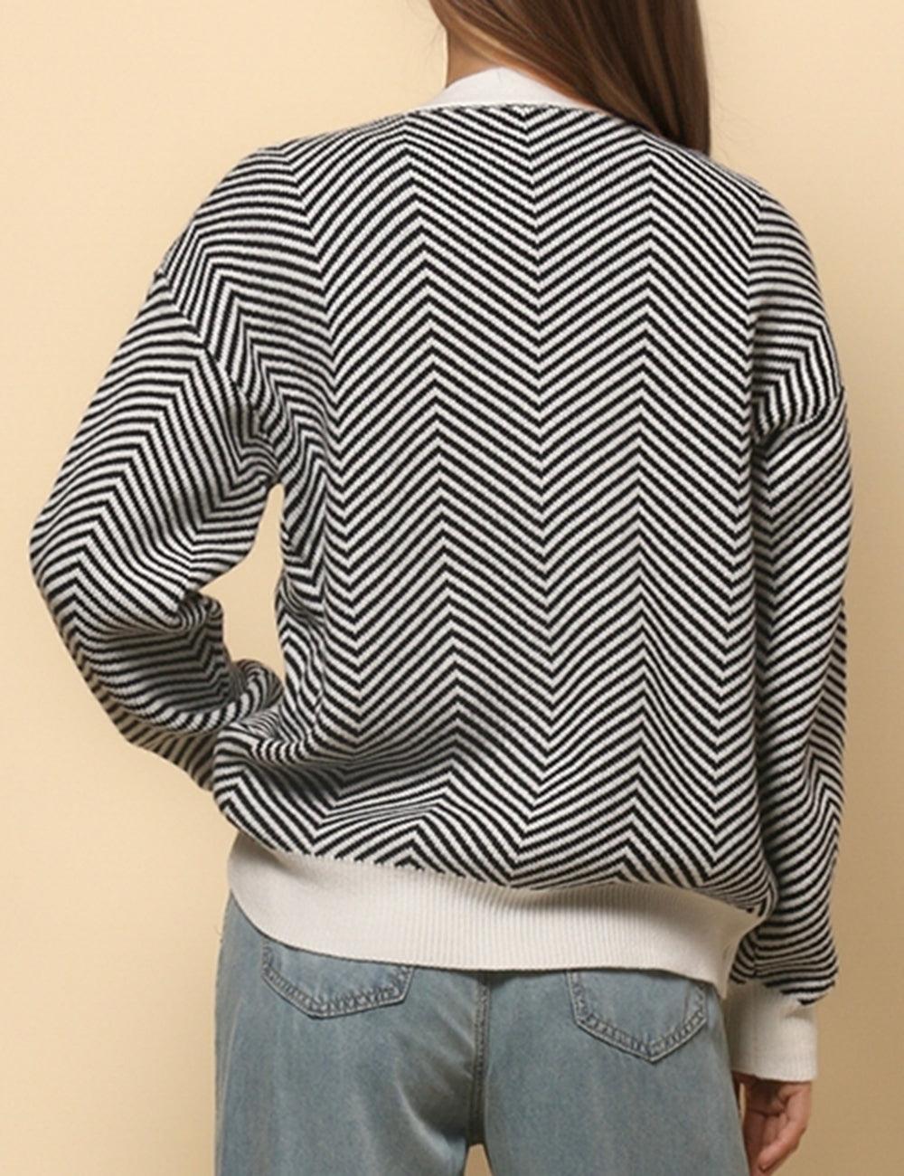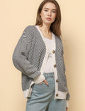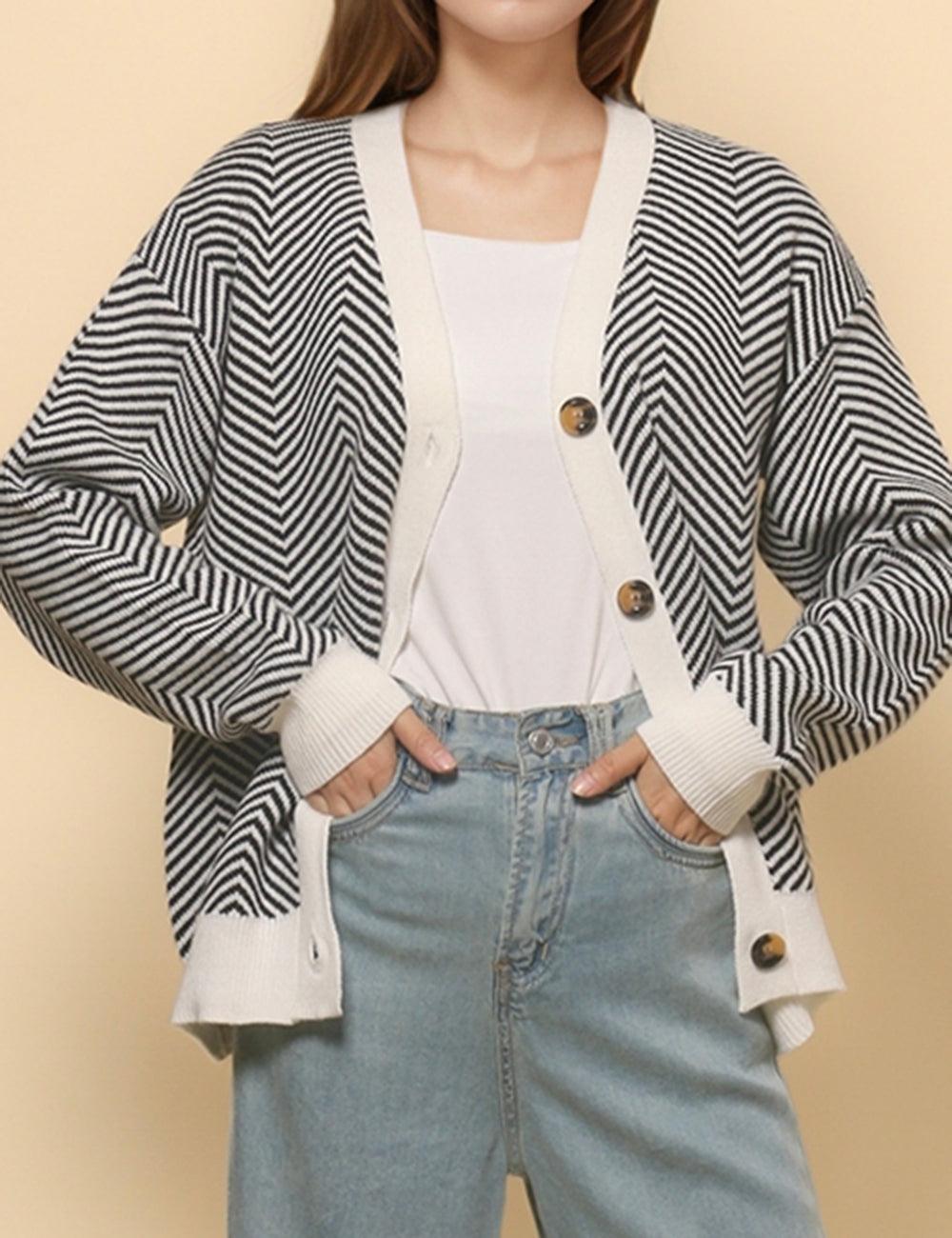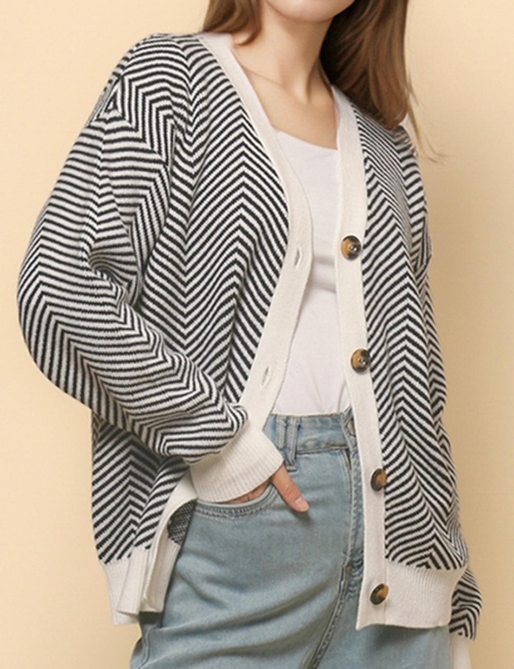 Ladies V-Neck Striped Cardigan Sweater Coat SKT4772