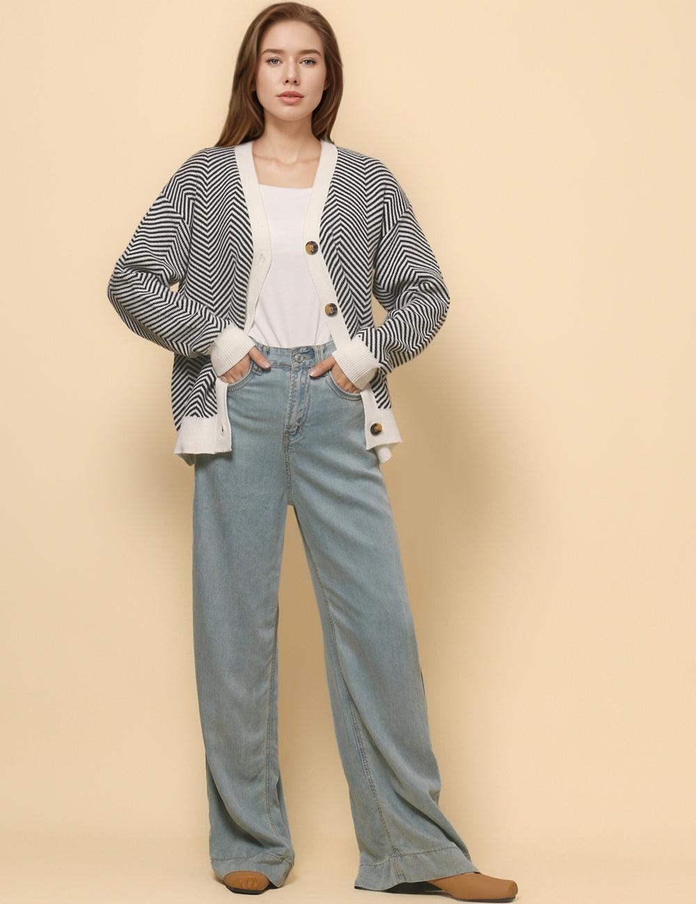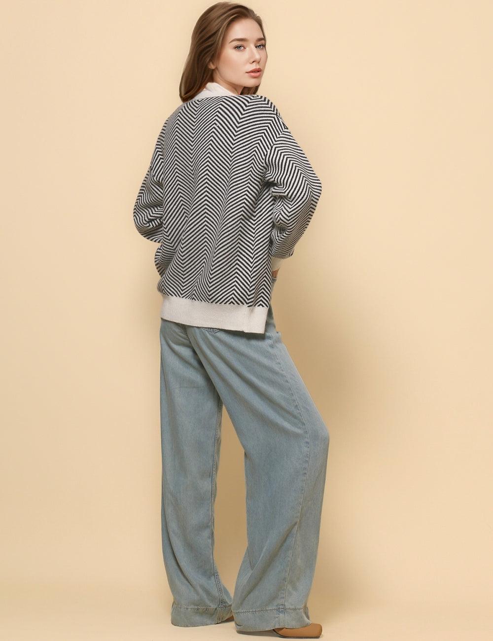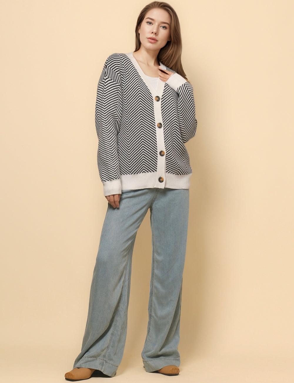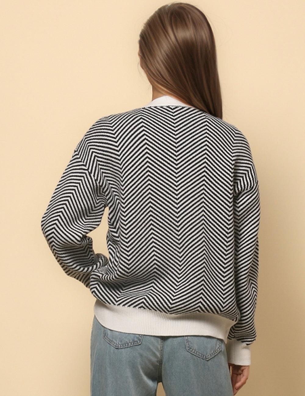 Ladies V-Neck Striped Cardigan Sweater Coat SKT4772