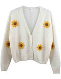 Ladies V-Neck Sunflower Pattern Button Knit Cardigan