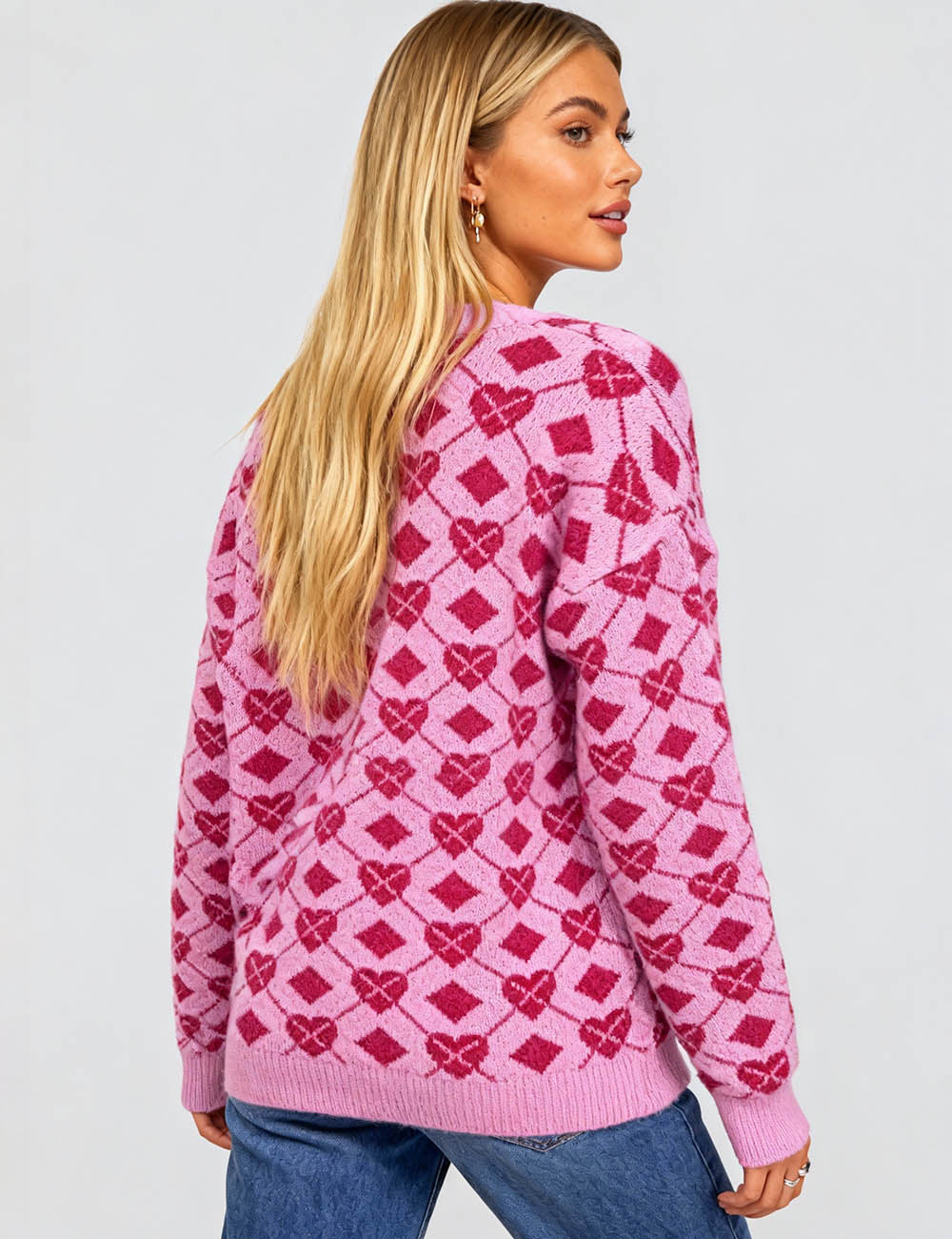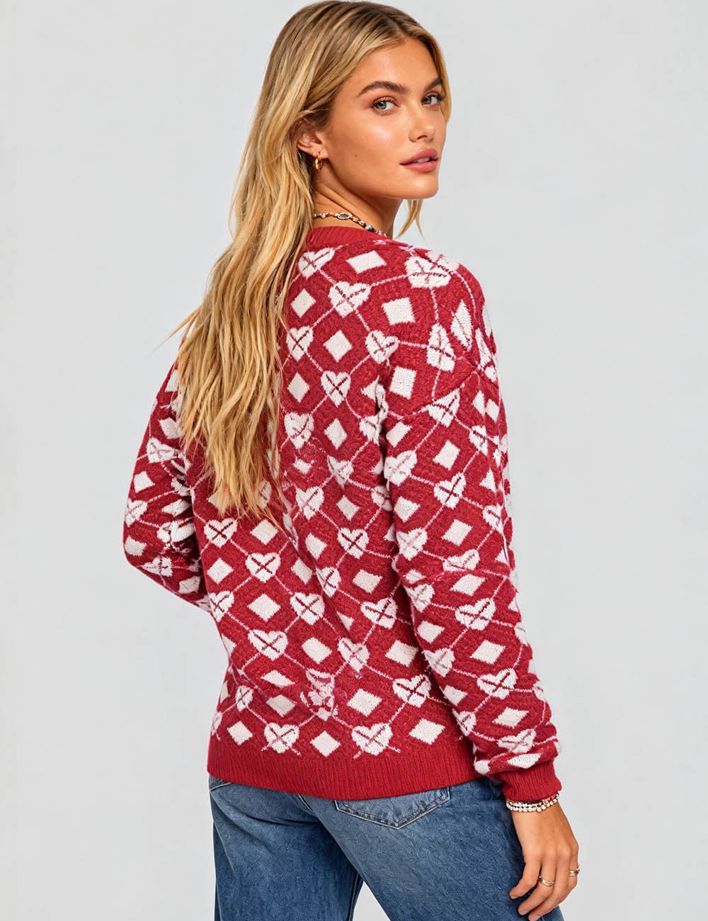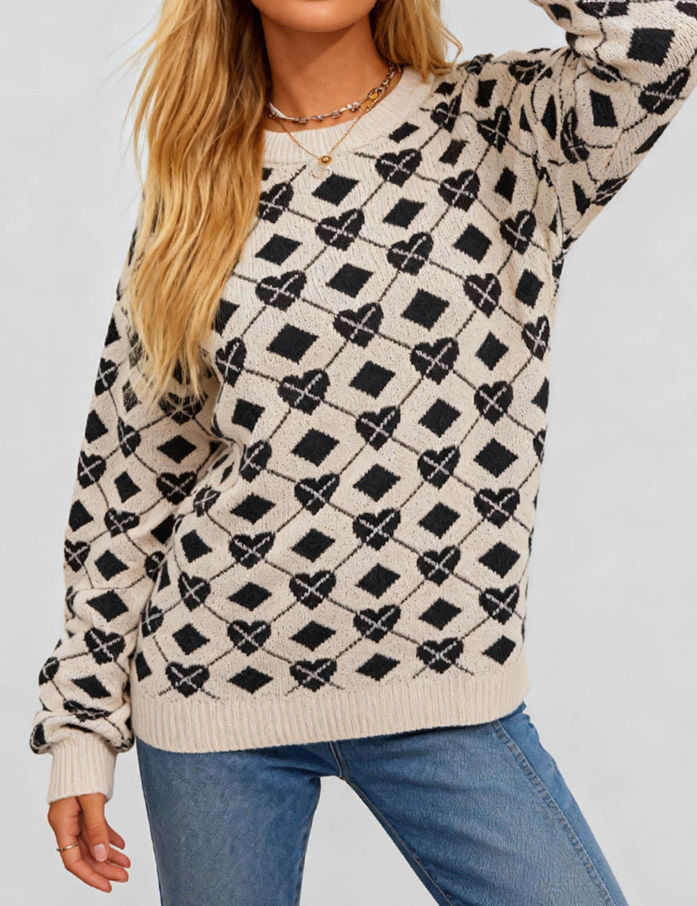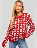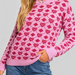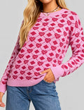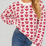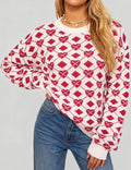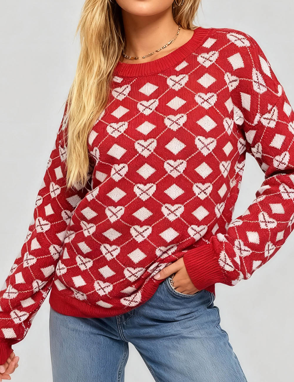 Ladies Valentine's Heart Graphic Pullover Sweater Top