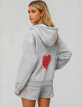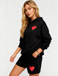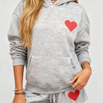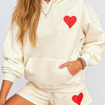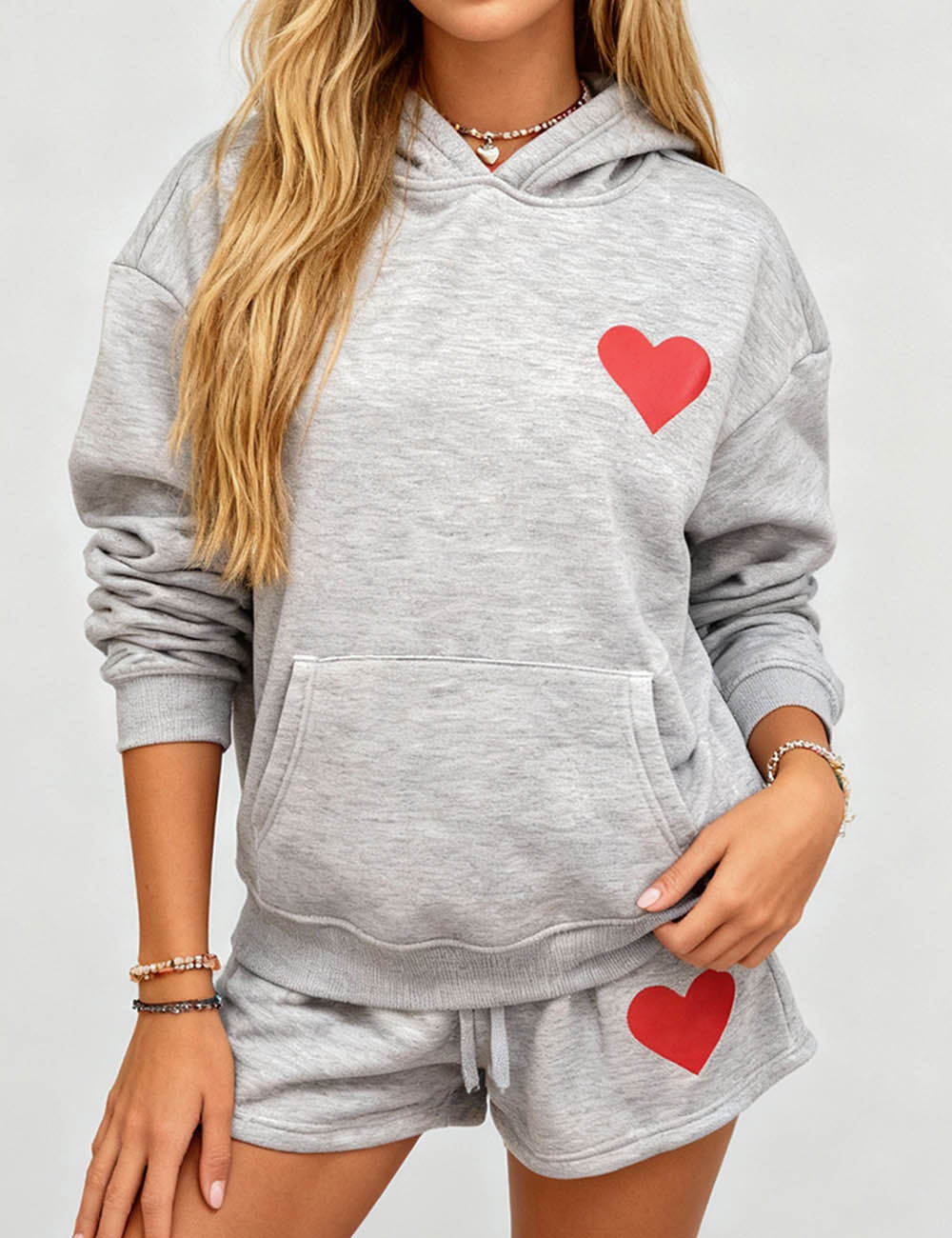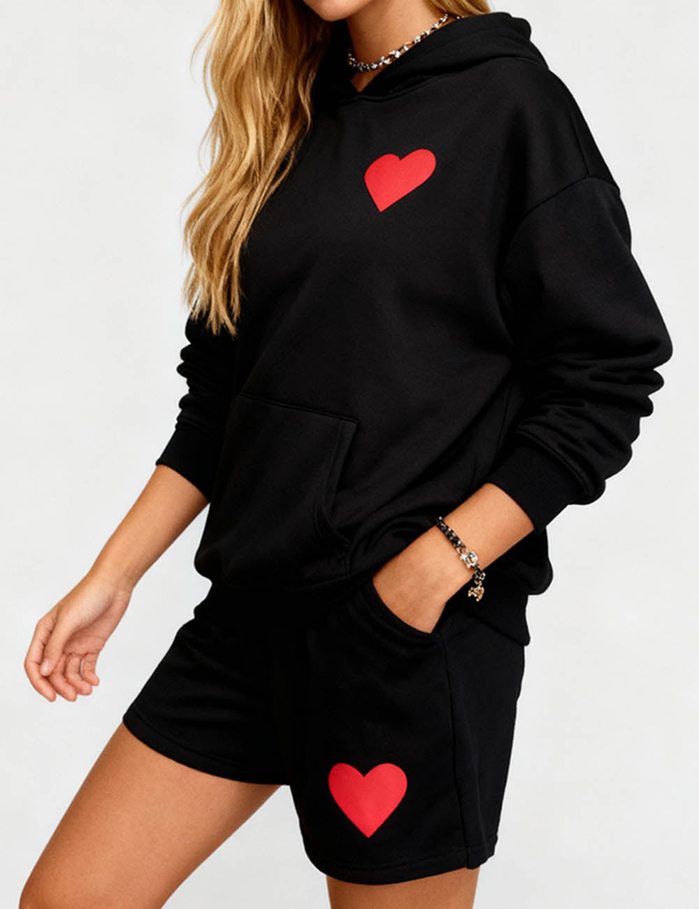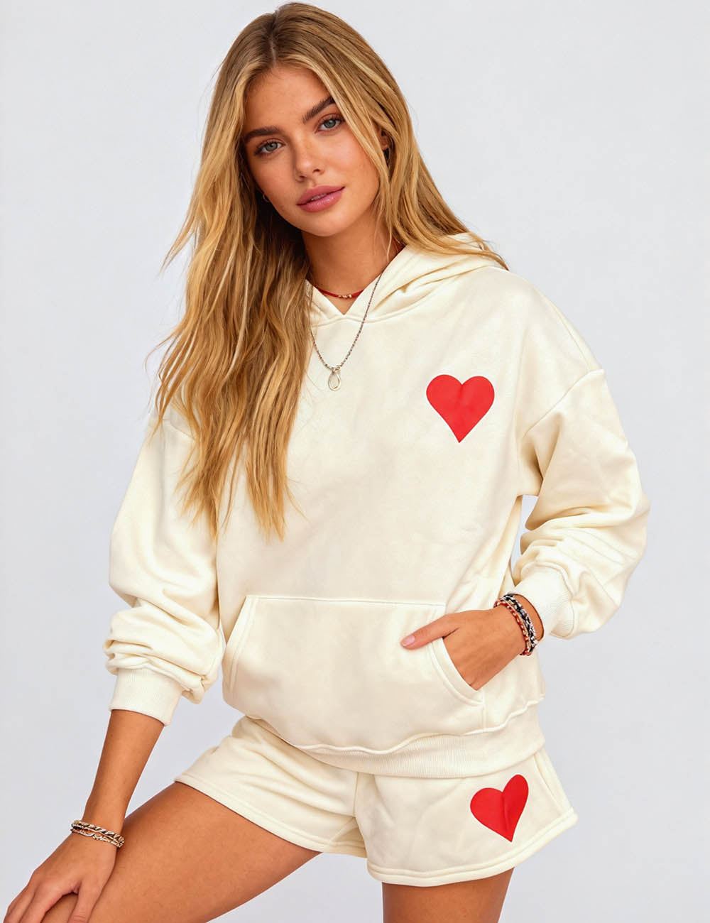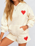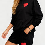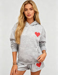 Ladies Valentine Fleece Lined Heart Sweatshirt & Shorts Set