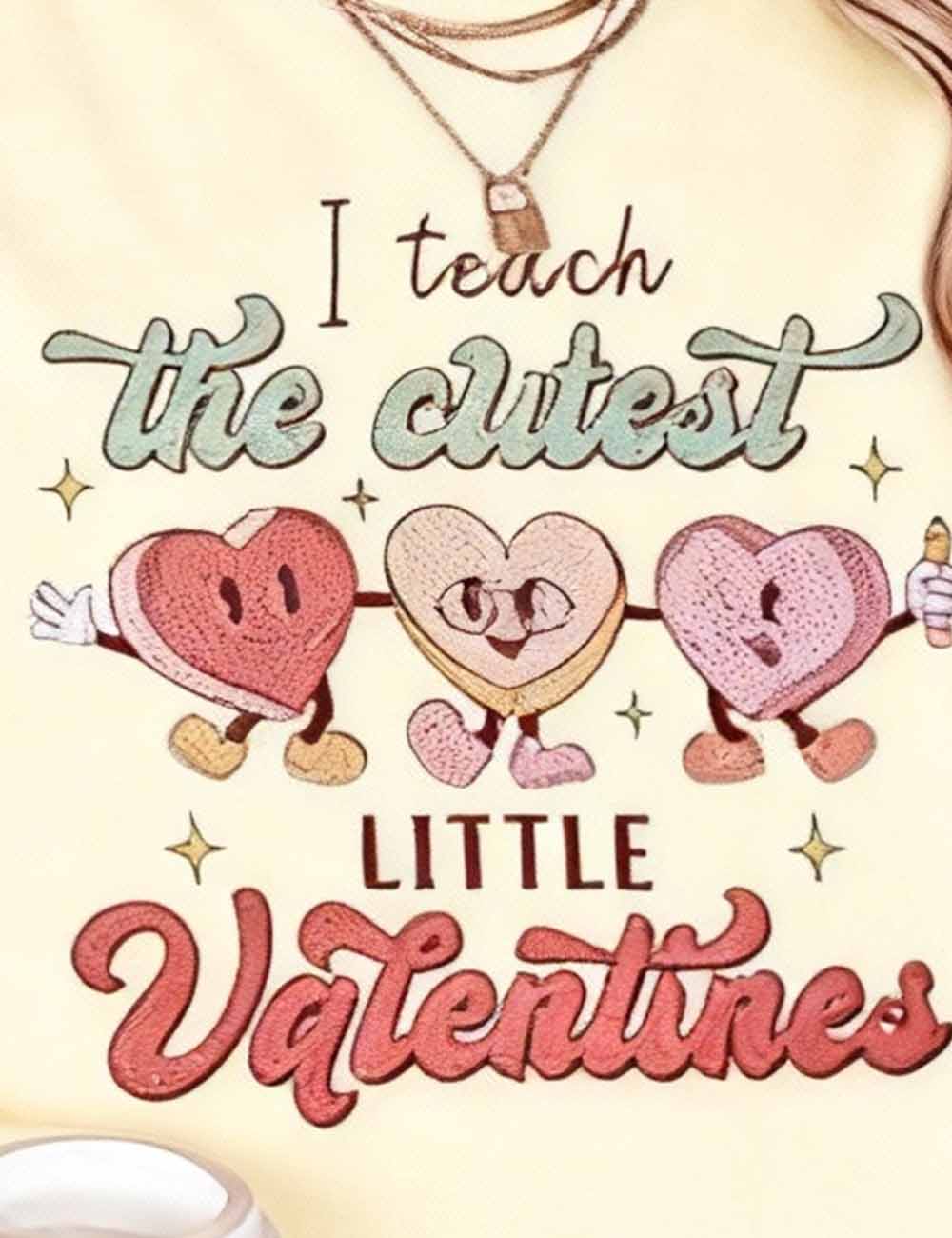 Ladies Valentine Heart Cartoon Graphic Round Neck Sweatshirt
