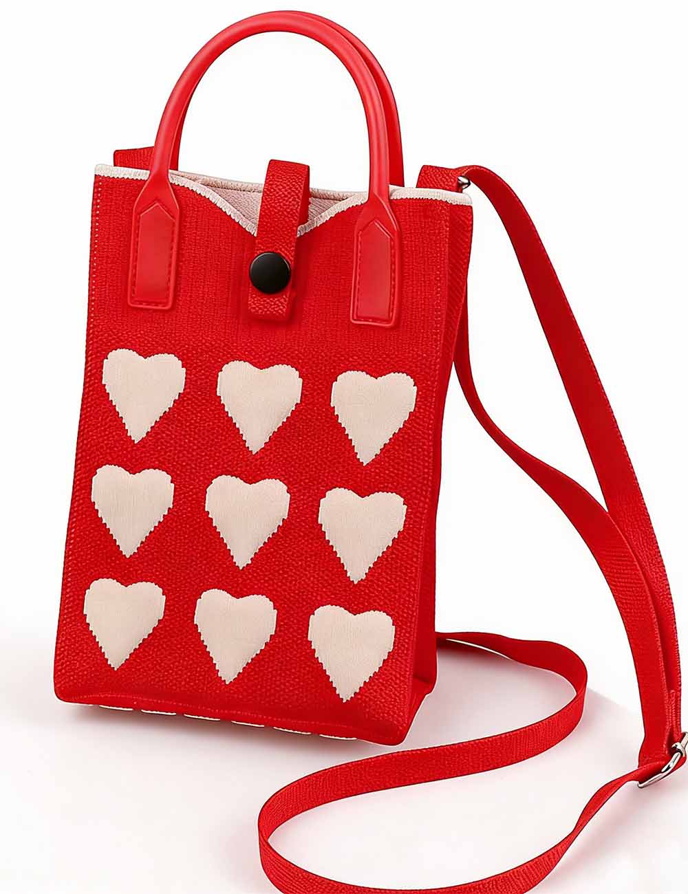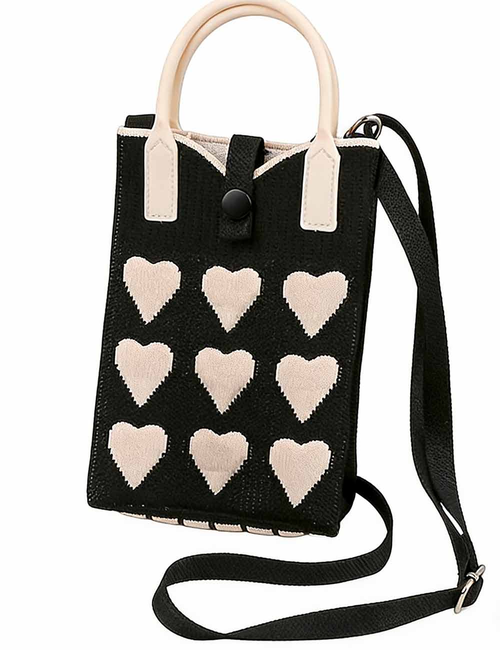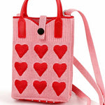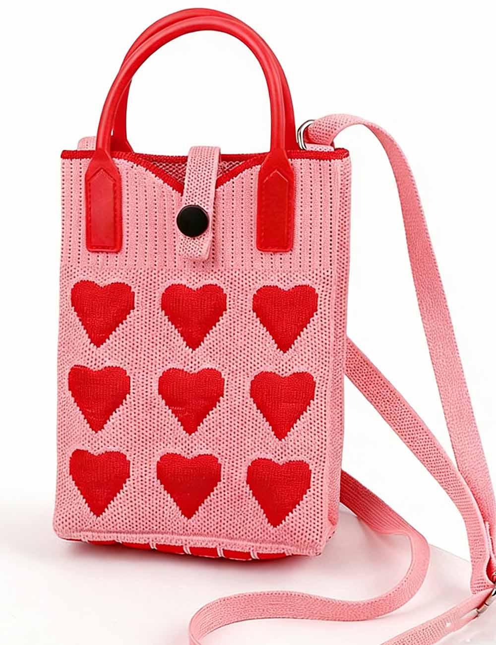 Ladies Valentine Hearts Knitted Mini Crossbody Bag