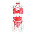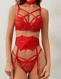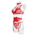 Ladies Valentine Hot Red Sexy 3PCS Lingerie Set SKLG4097