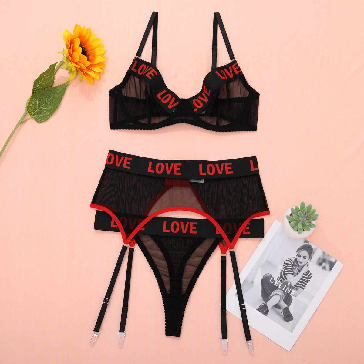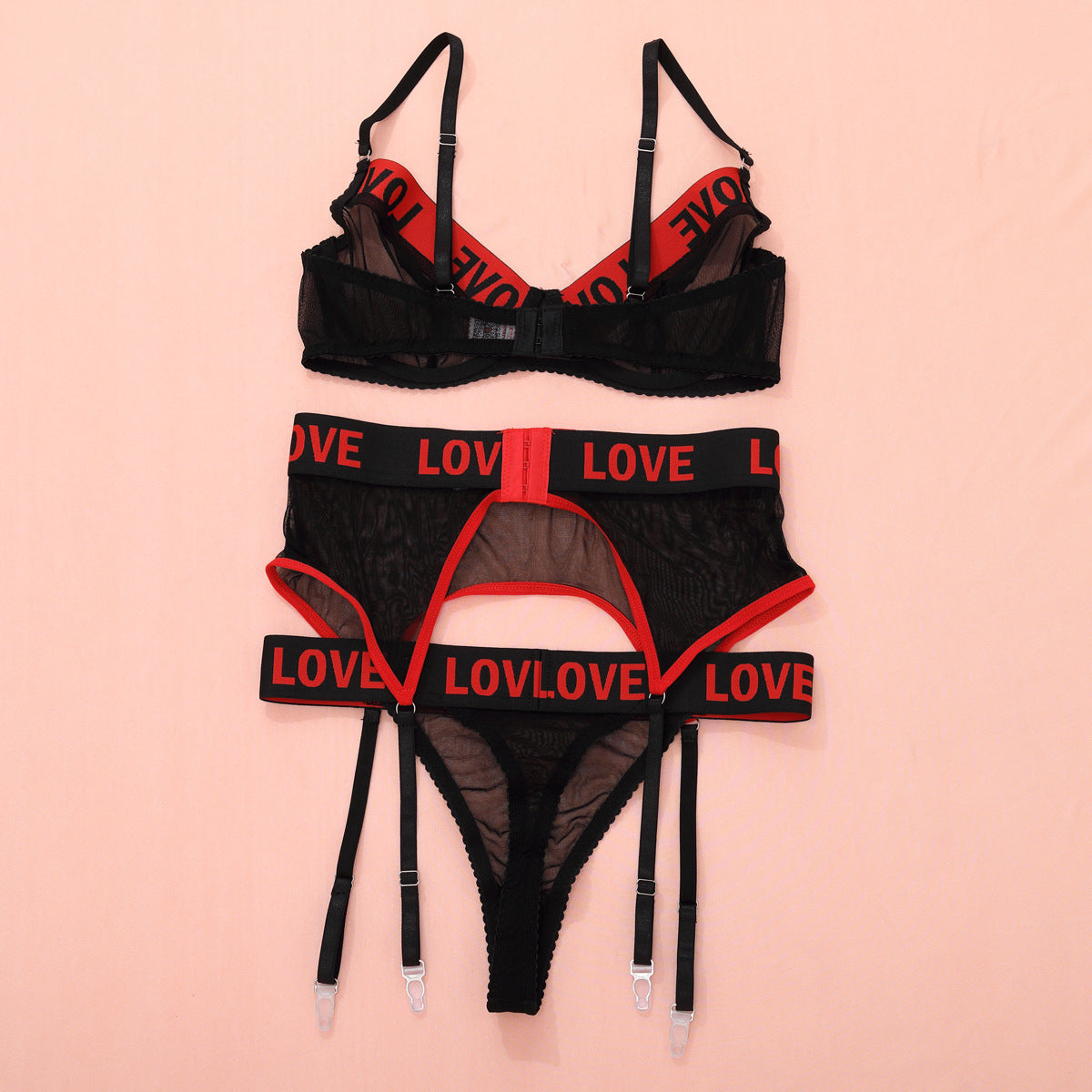 Ladies Valentine "LOVE" 3PCS Lingerie Set SKLG4106