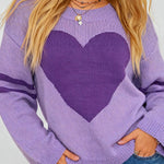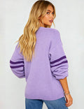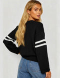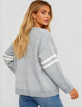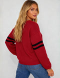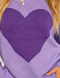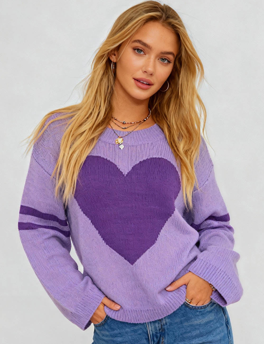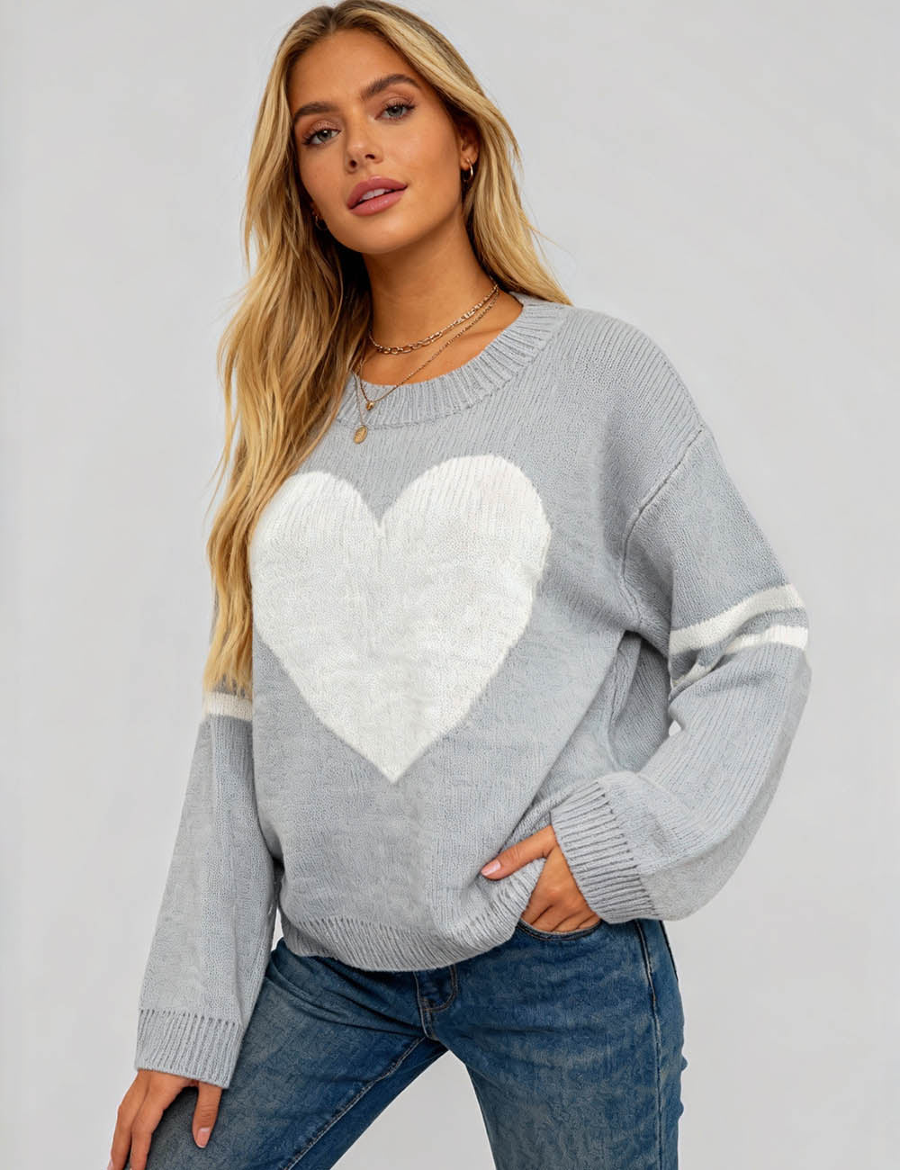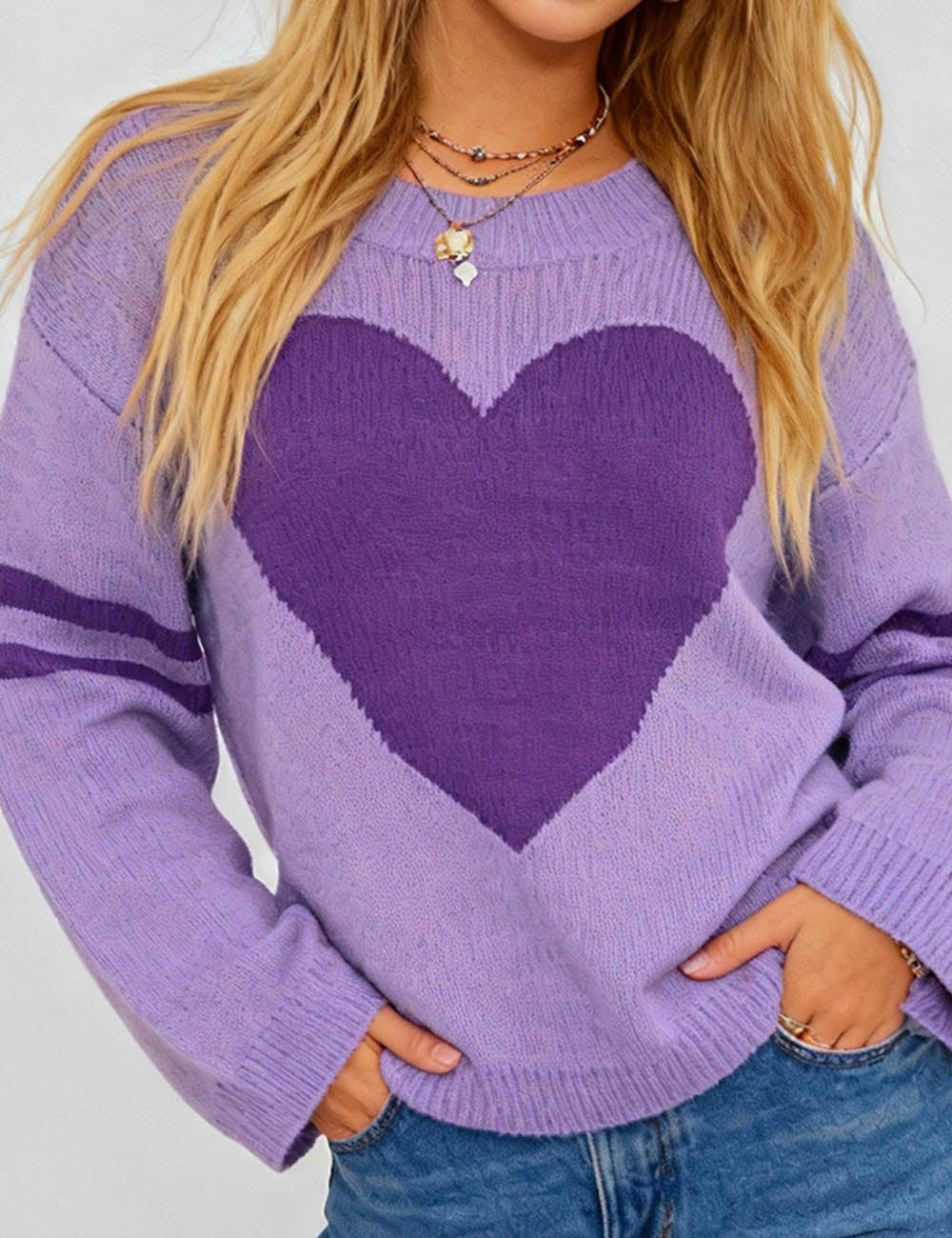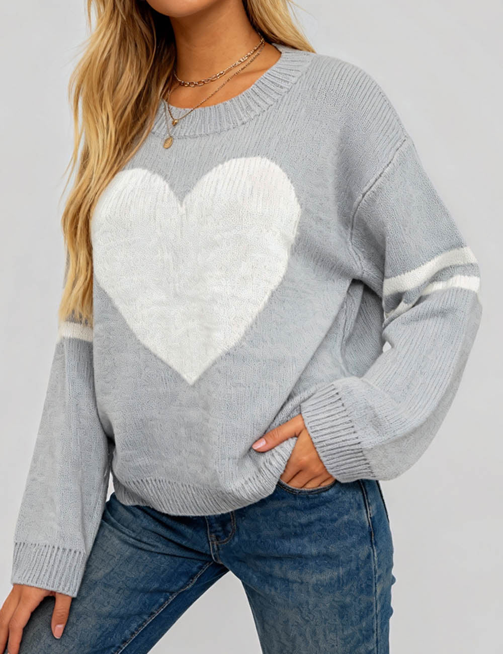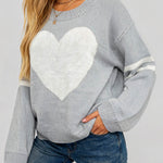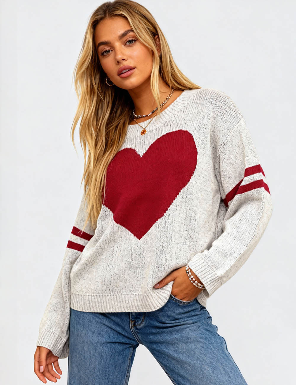 Ladies Valentine‘s Heart Pattern Striped Sleeves Pullover Sweater