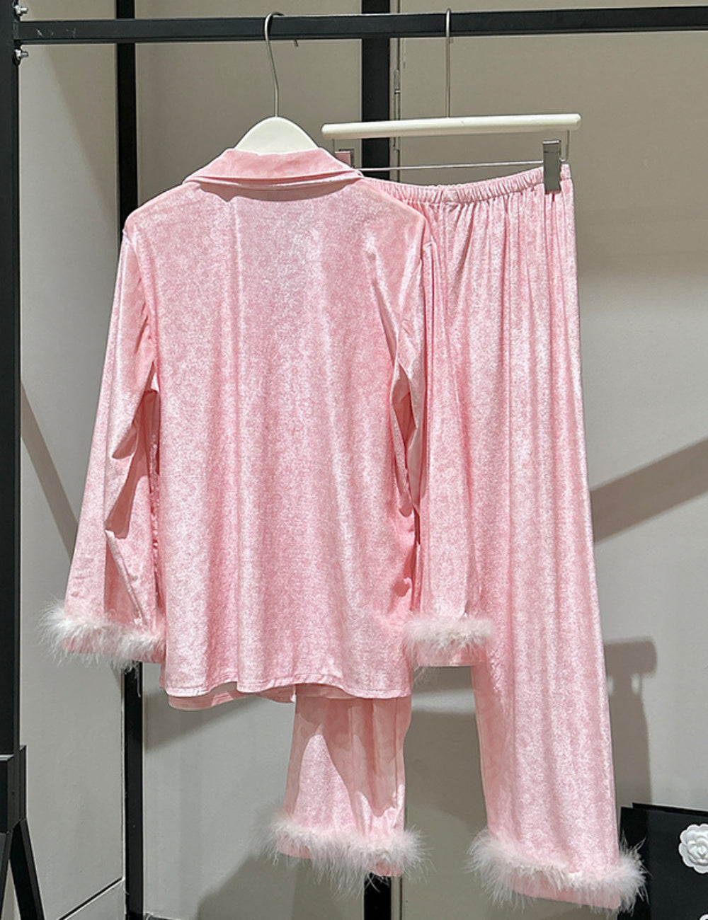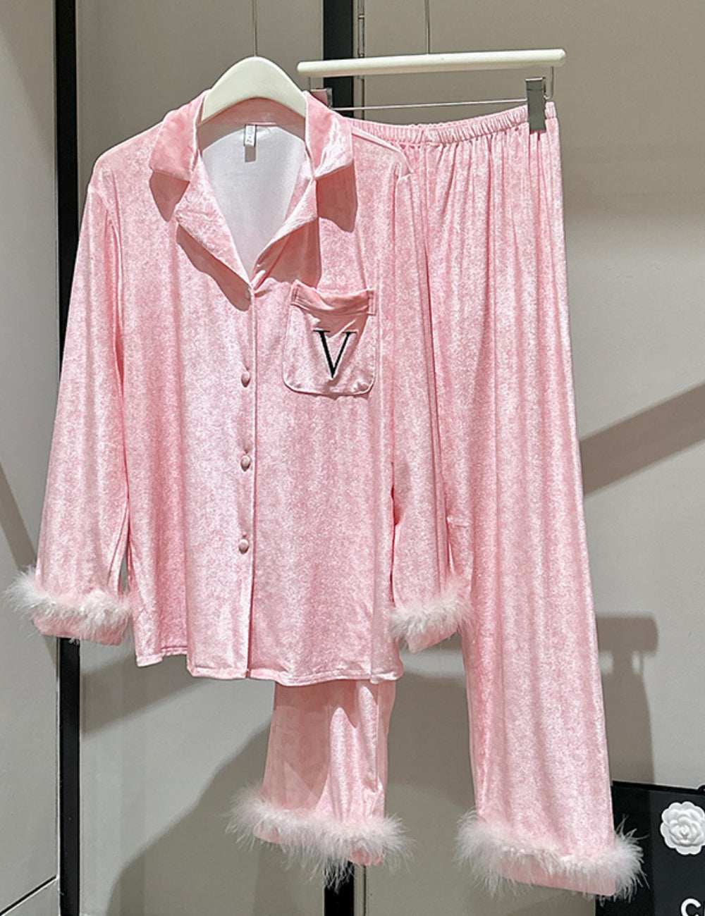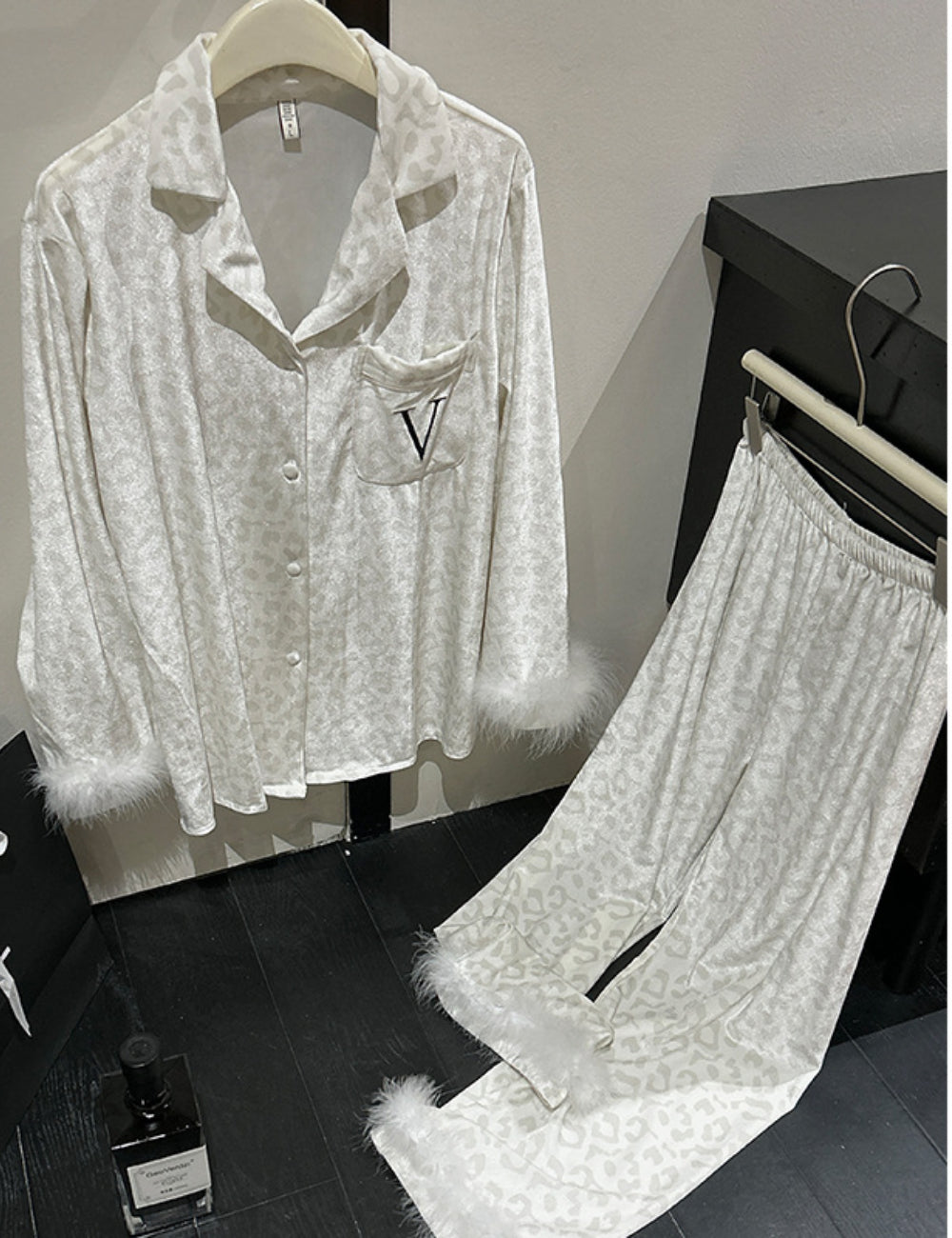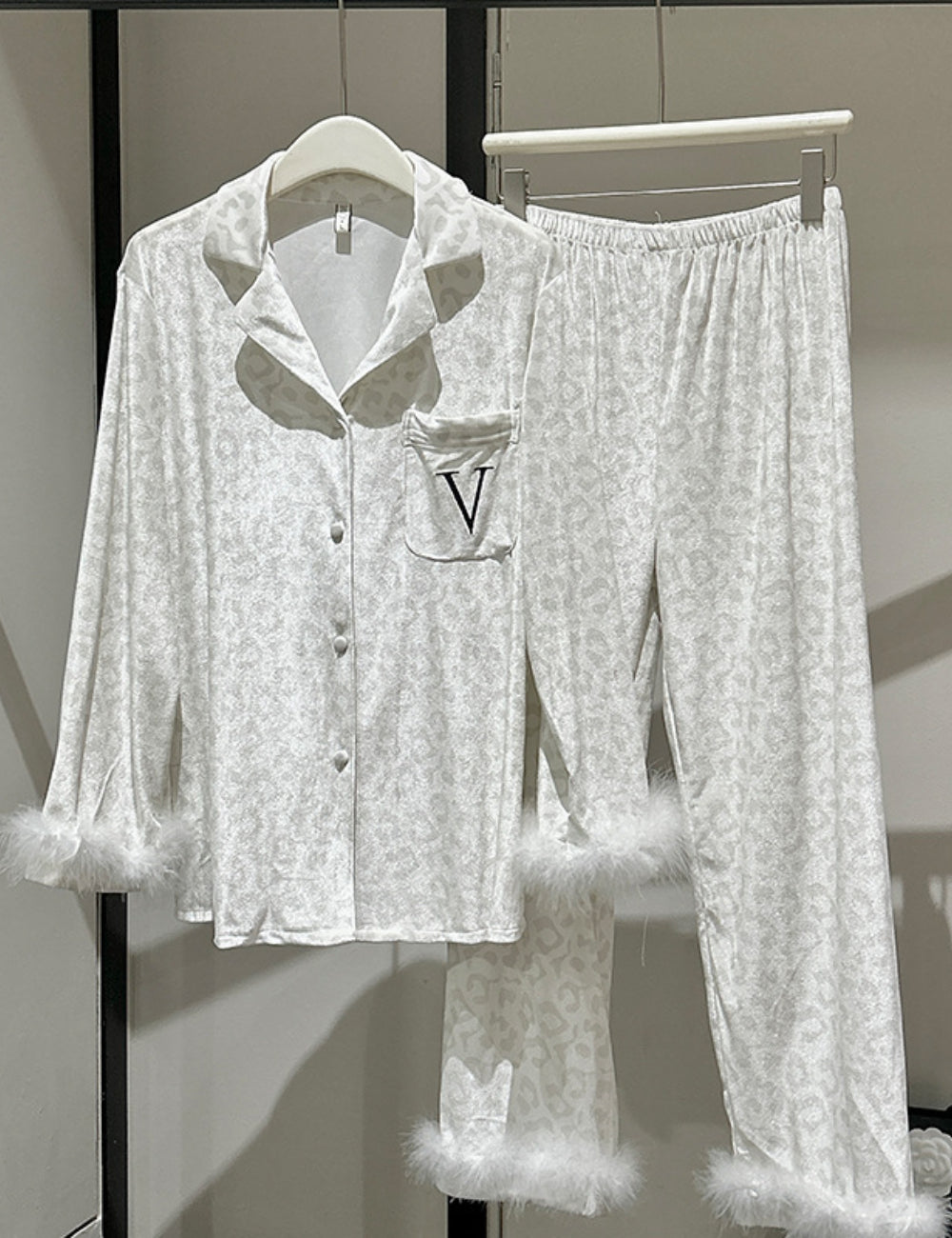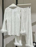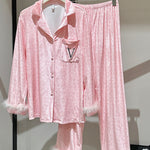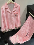 Ladies Valentine Velvet Feather Loungewear Set SKST41180