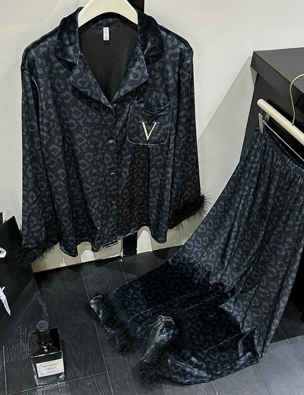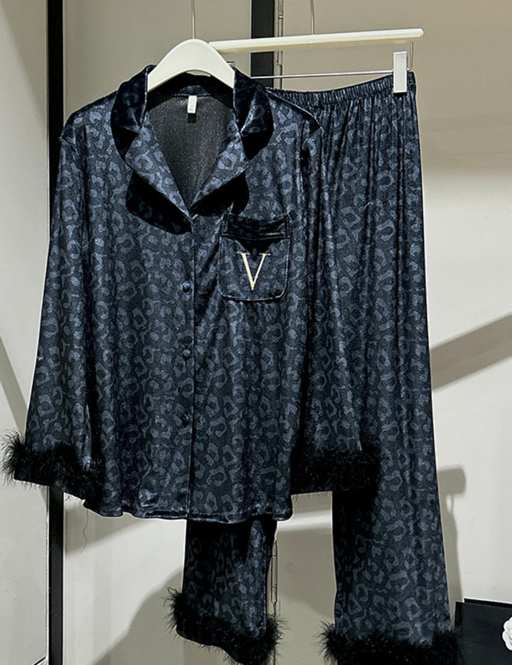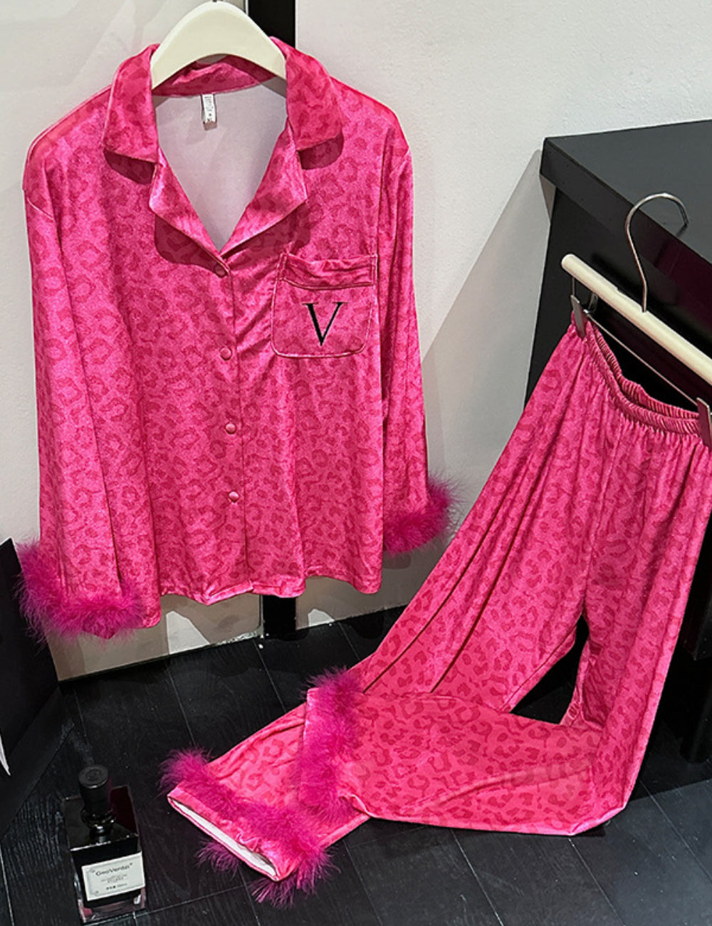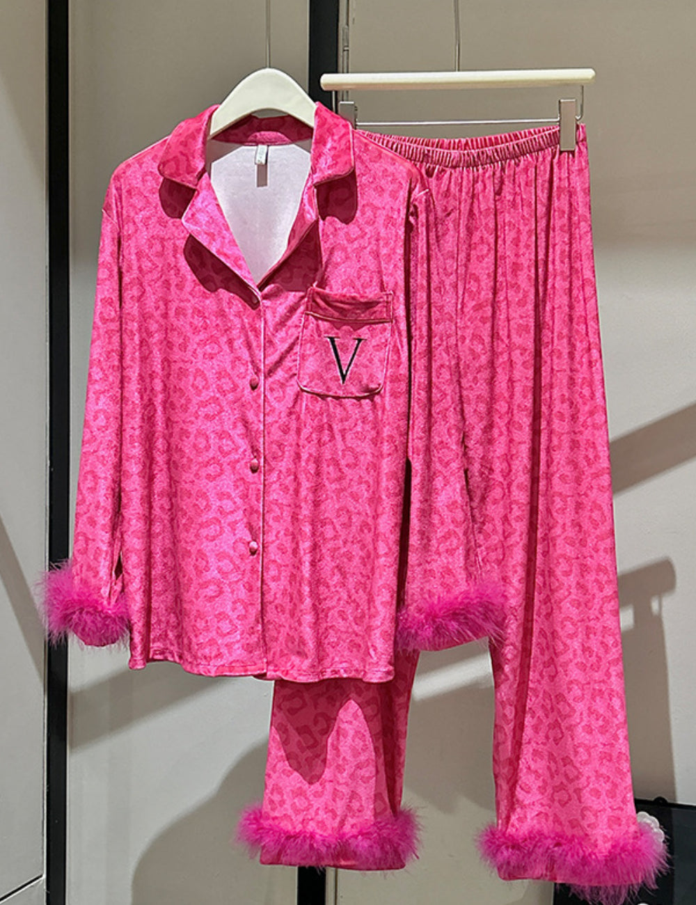 Ladies Valentine Velvet Feather Loungewear Set SKST41180