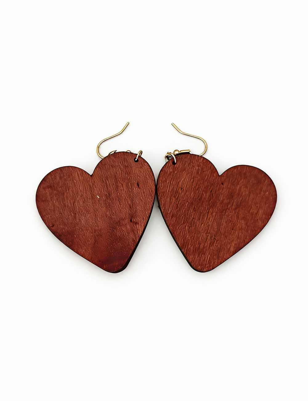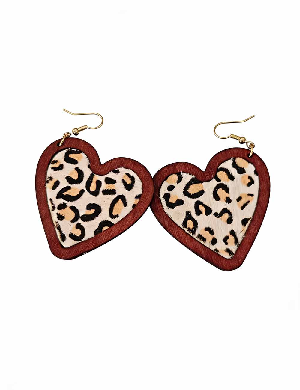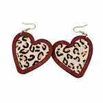 Ladies Valentine Wood Leopard Heart Pendant Earrings