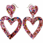 Ladies Valentine's Acrylic Double Heart Hollow Pendant Earrings