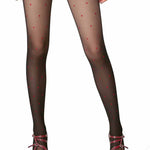 Ladies Valentine's Dot Heart See Sheer Non-Fleece Pantyhose