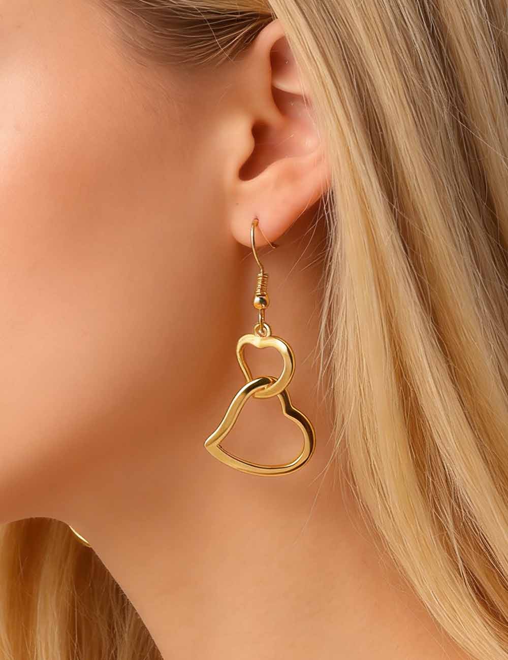 Ladies Valentine's Double Heart Hollow Pendant Earrings