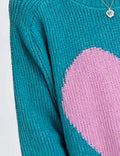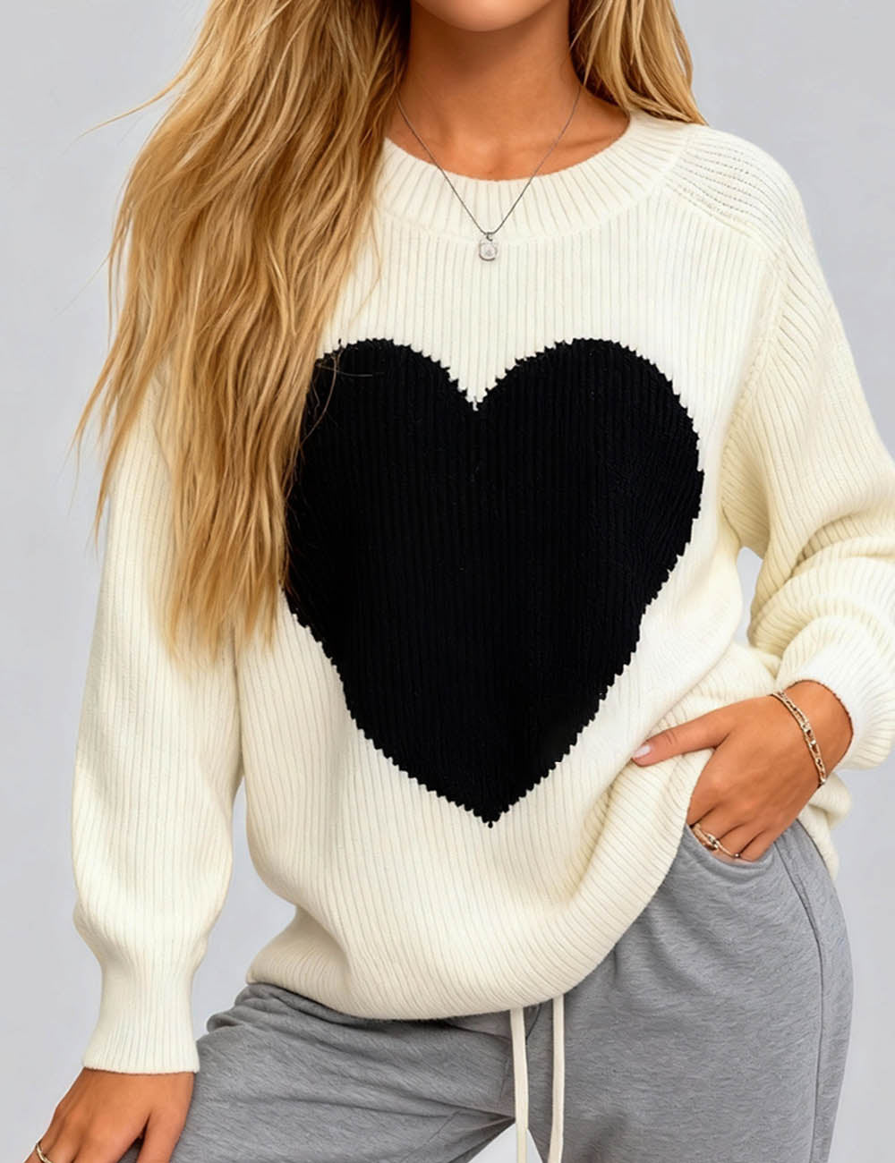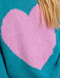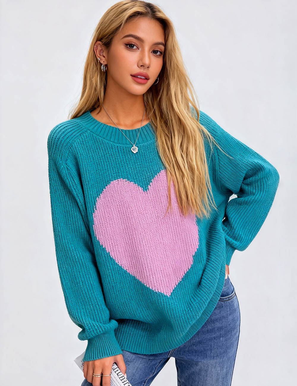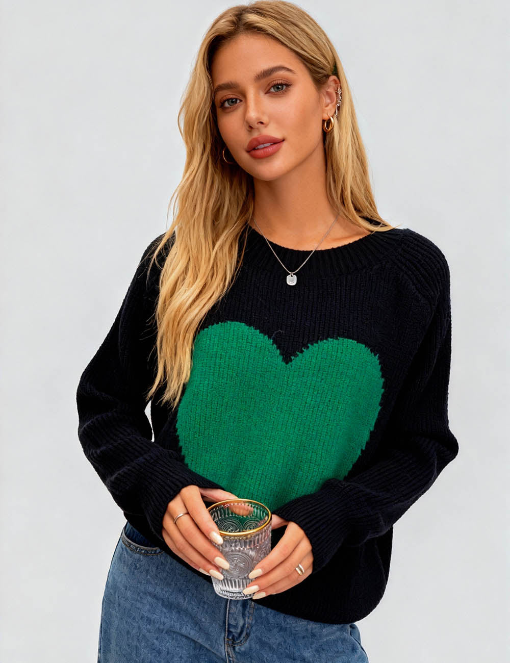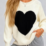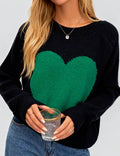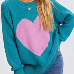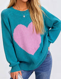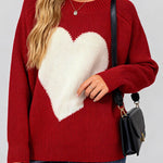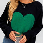 Ladies Valentine's Heart Color Block Round Neck Sweater