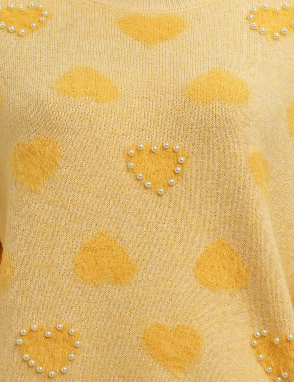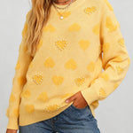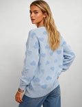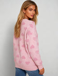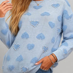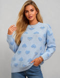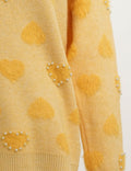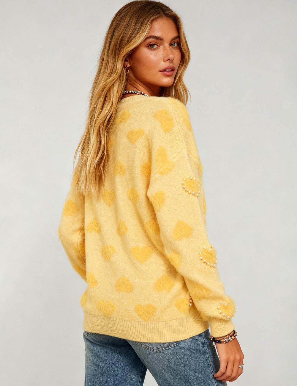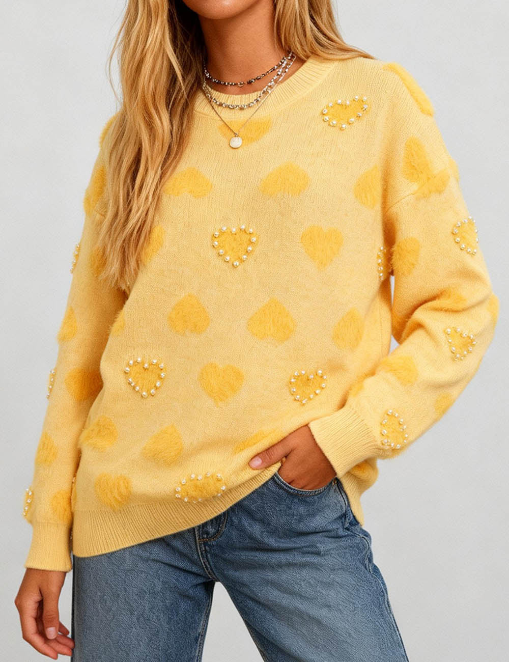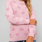Ladies Valentine's Heart Pattern Round Neck Bead Sweater