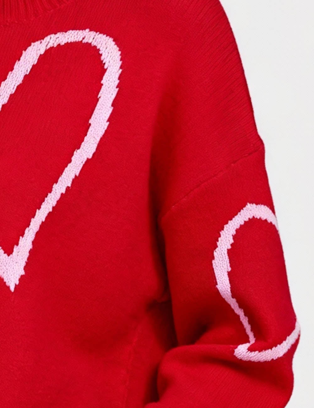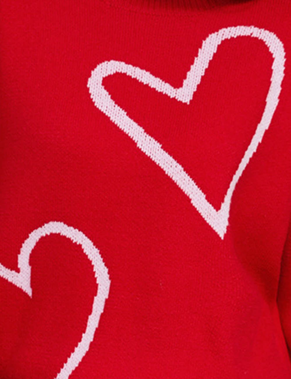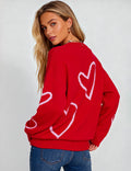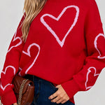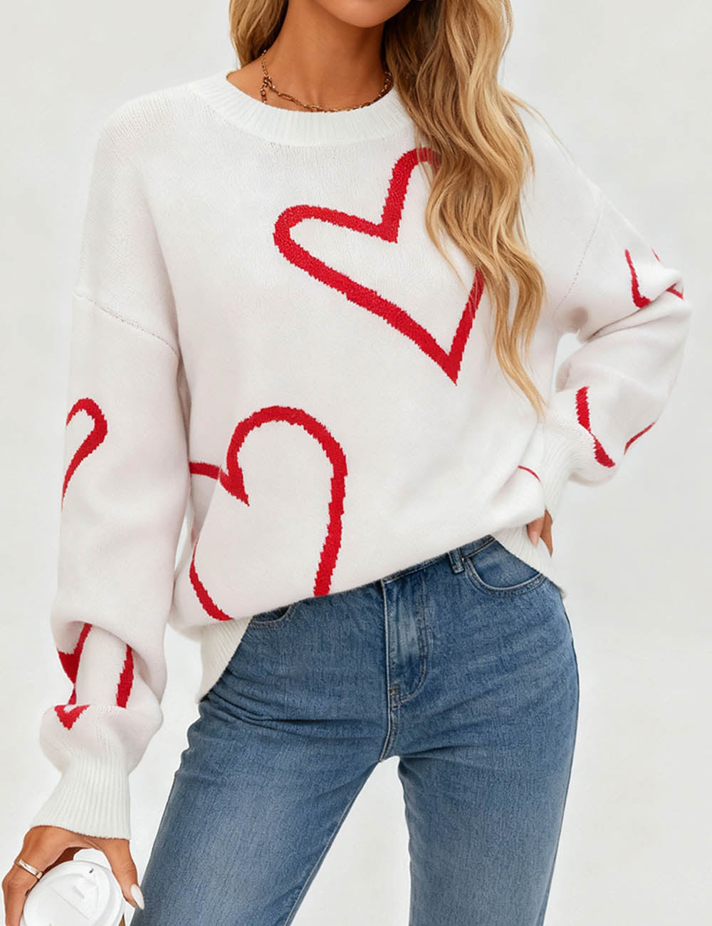 Ladies Valentine's Heart Pattern Round Neck Long Sleeves Sweater