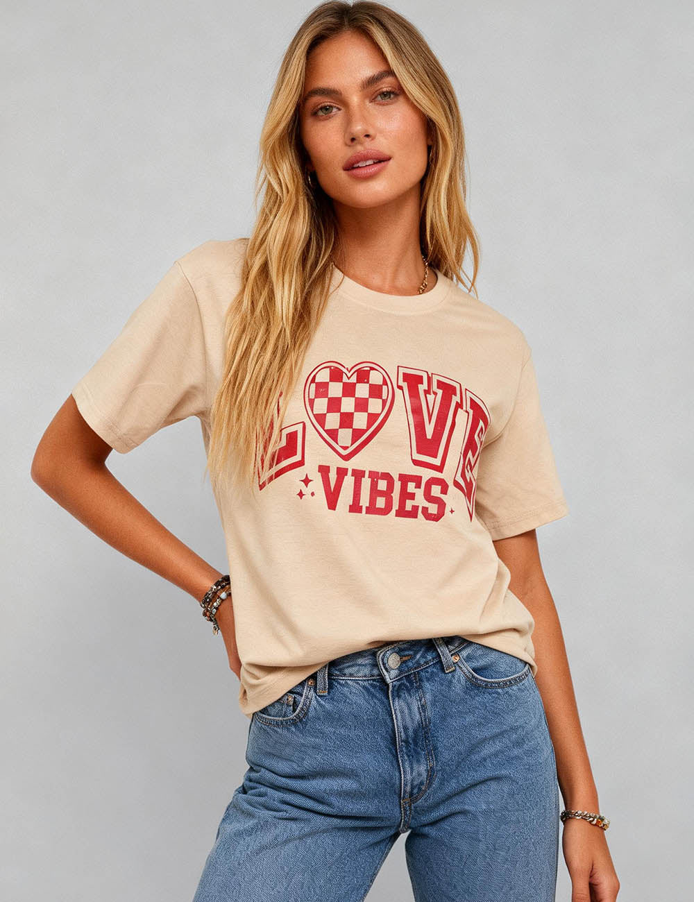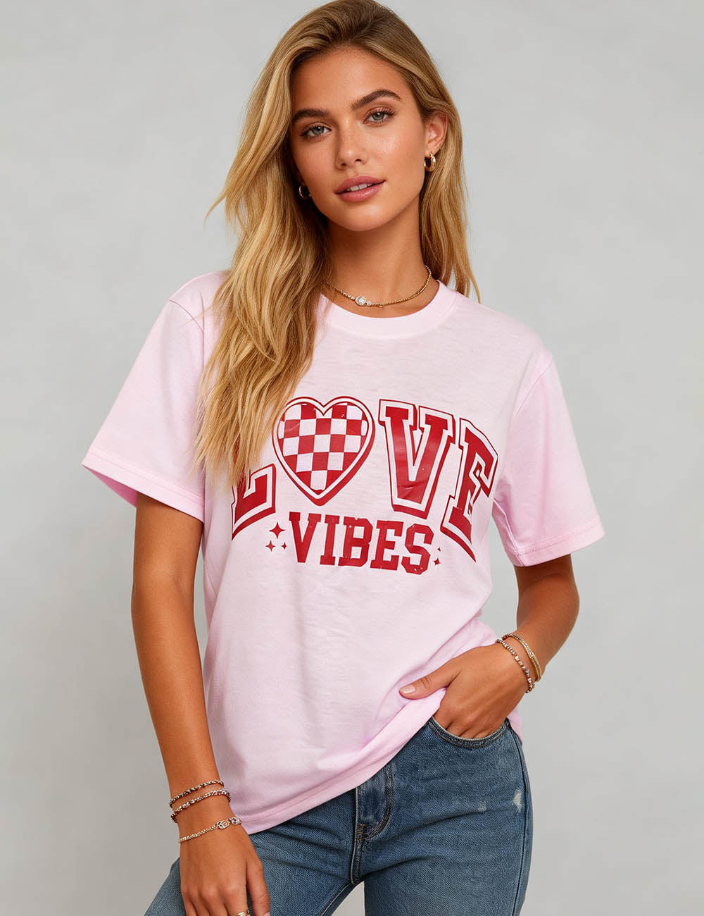Ladies Valentine's Heart Print Top Love Letter T-Shirt