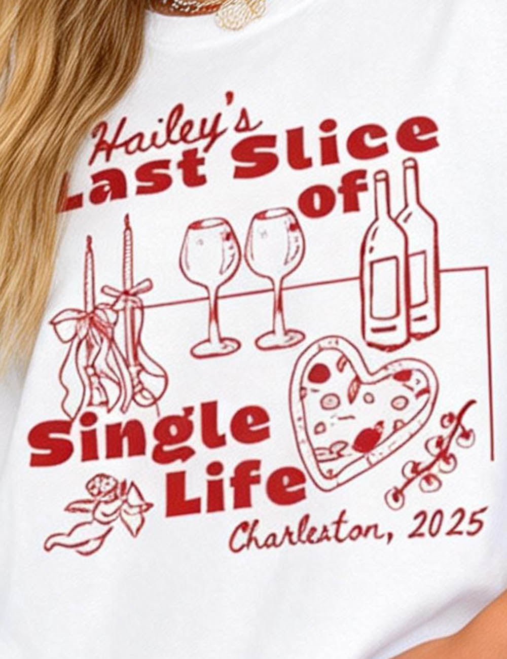 Ladies Valentine's Print Round Neck Short Sleeves T-Shirt