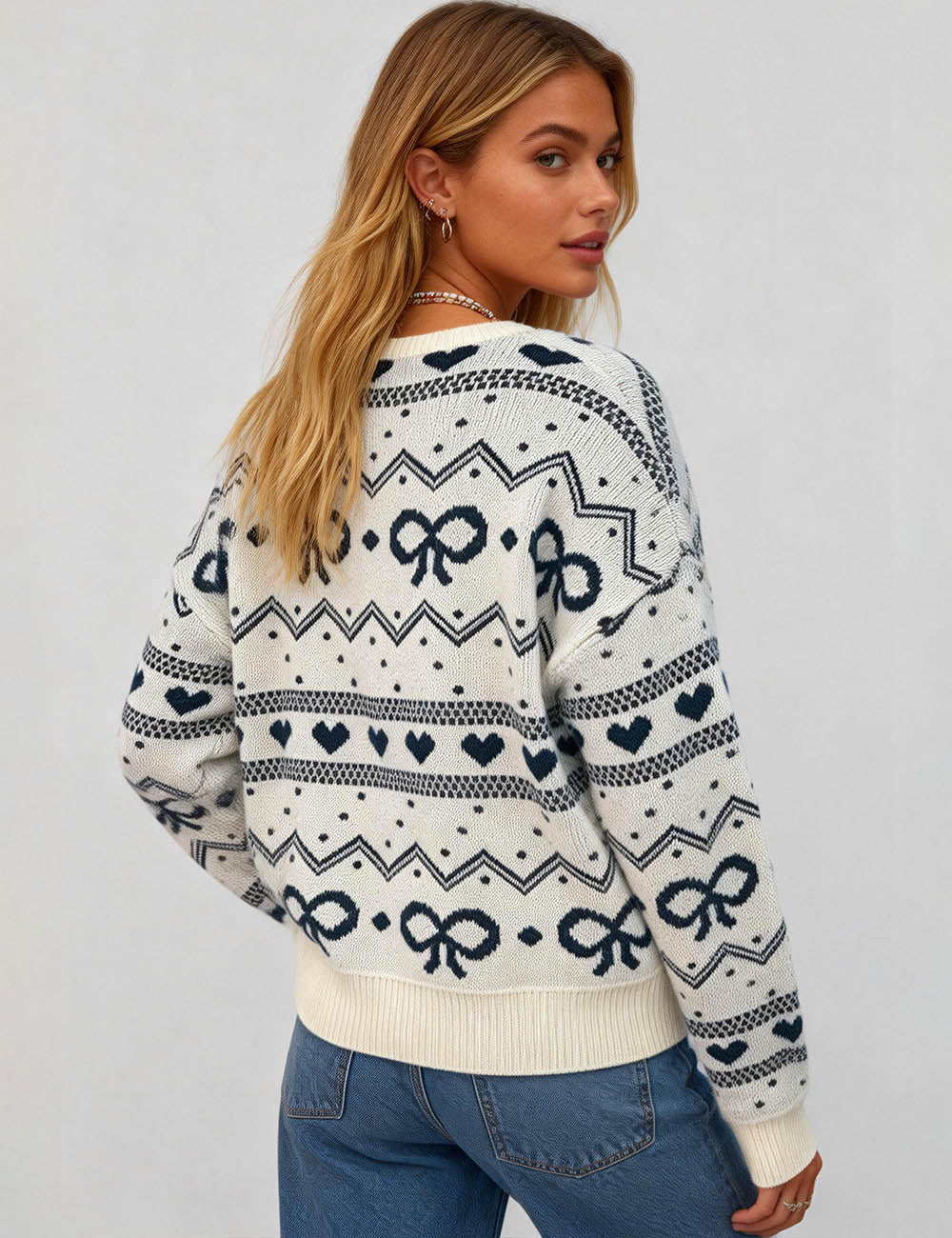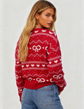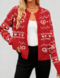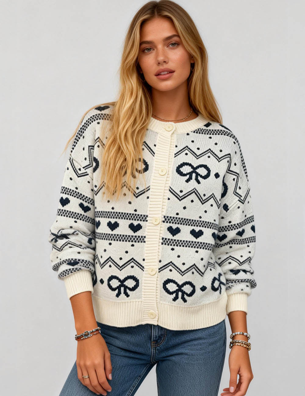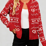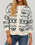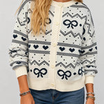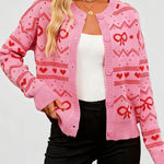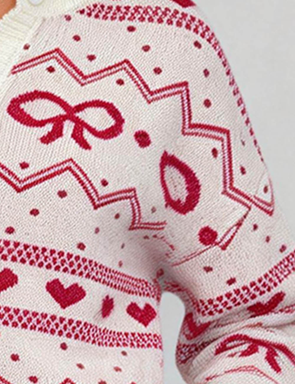 Ladies Valentine's Round Neck Button Heart Sweater Cardigan