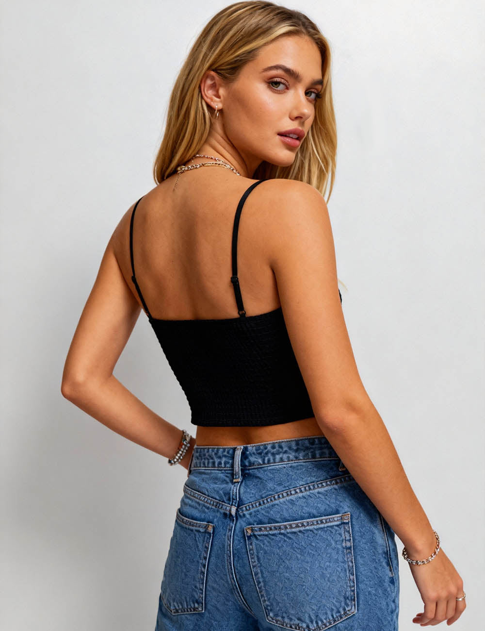 Ladies Velvet Pleated Corset Faux Button Front Cami Top