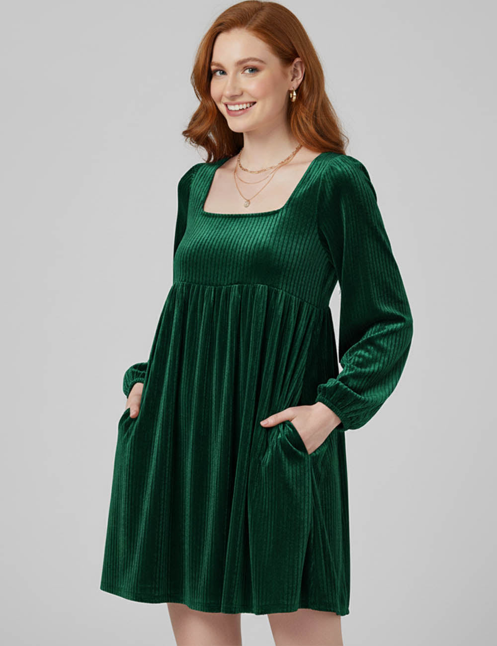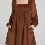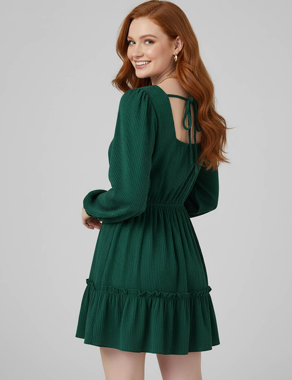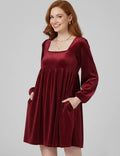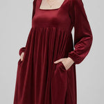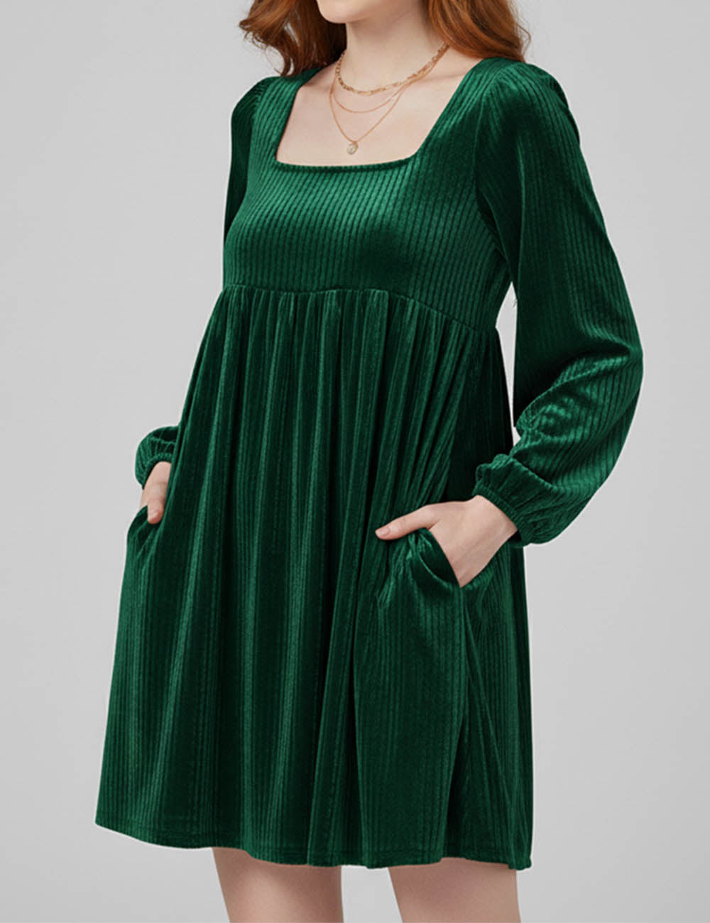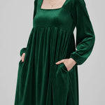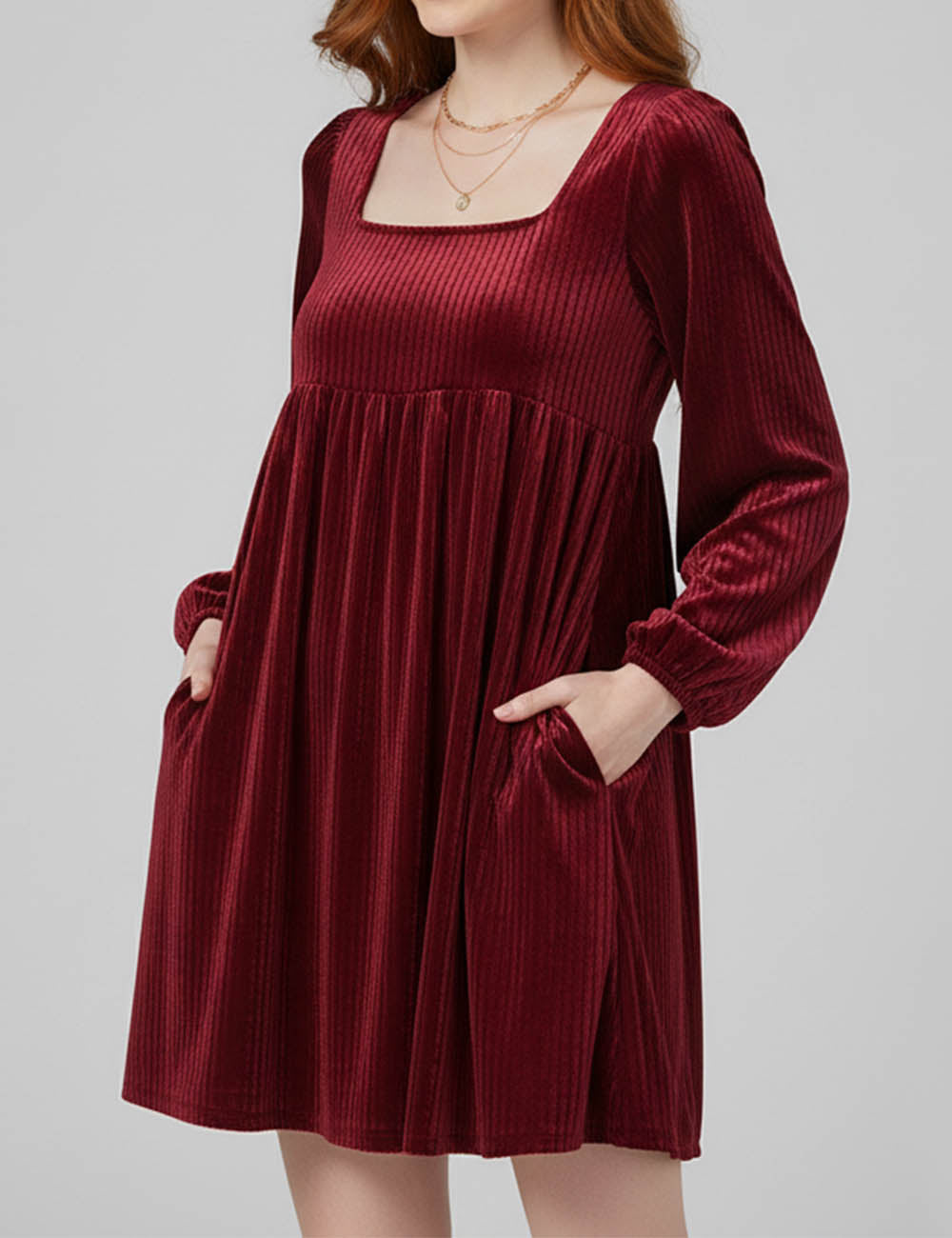 Ladies Velvet Square Neck Long Sleeves Mini Dress