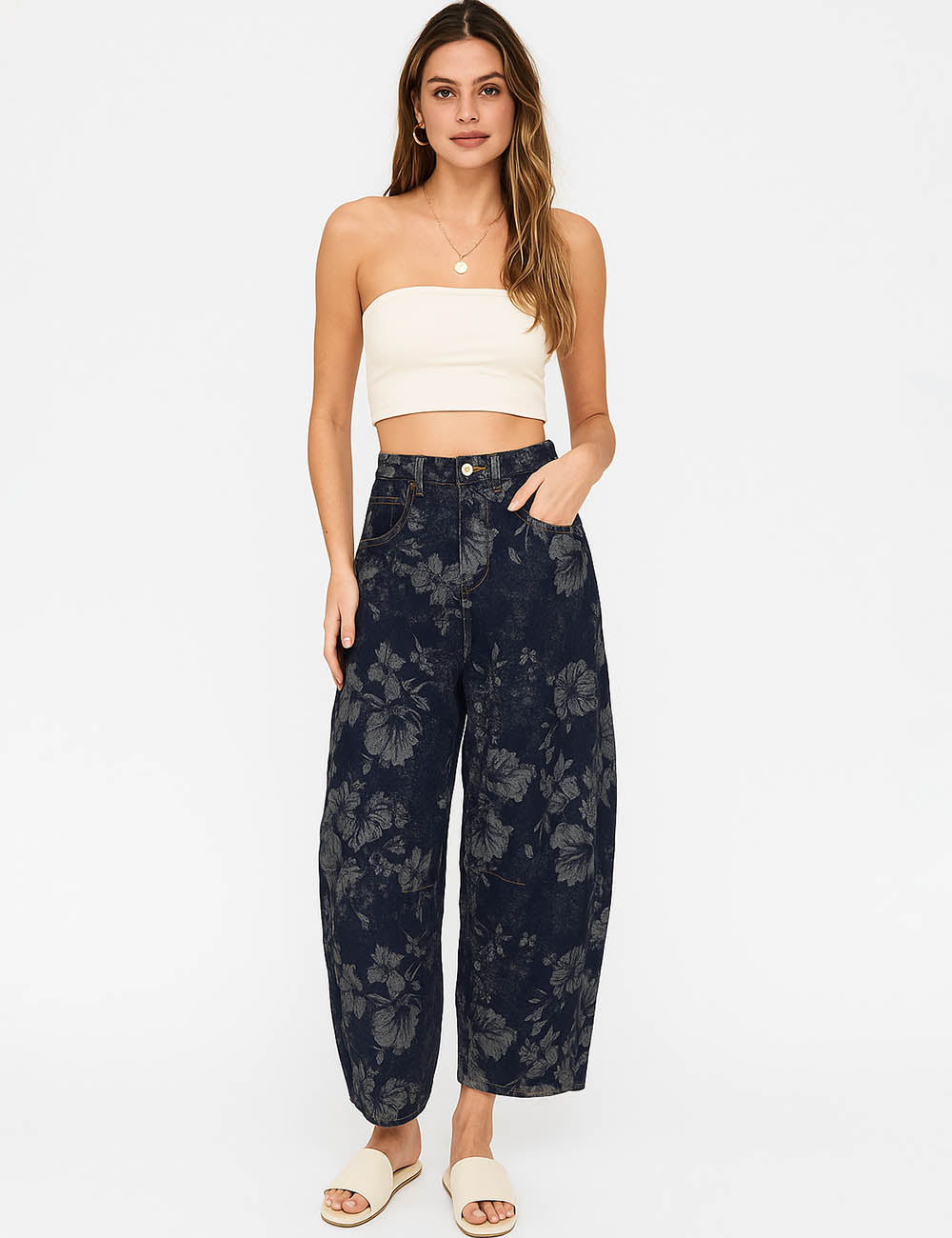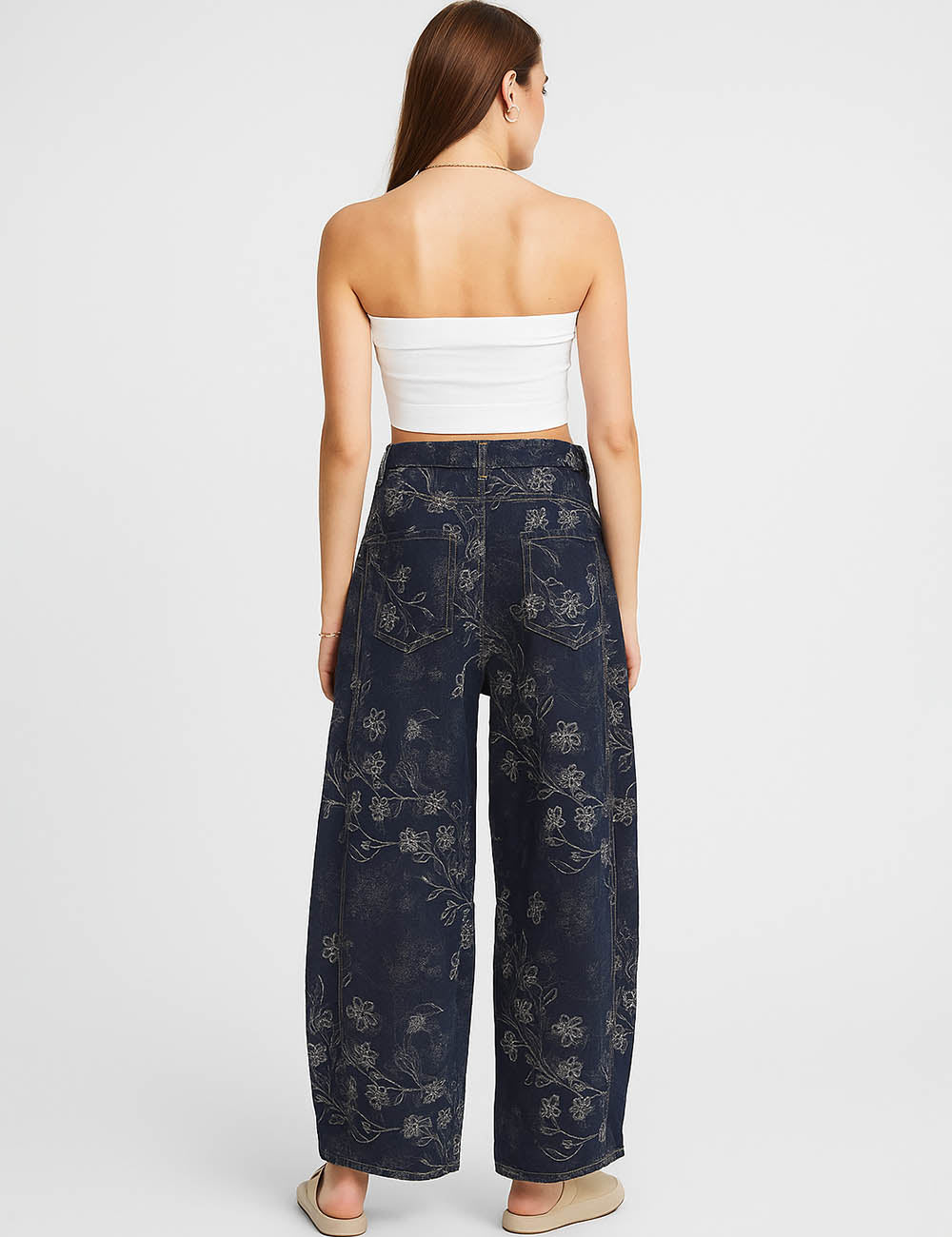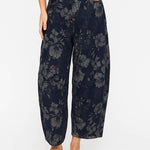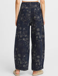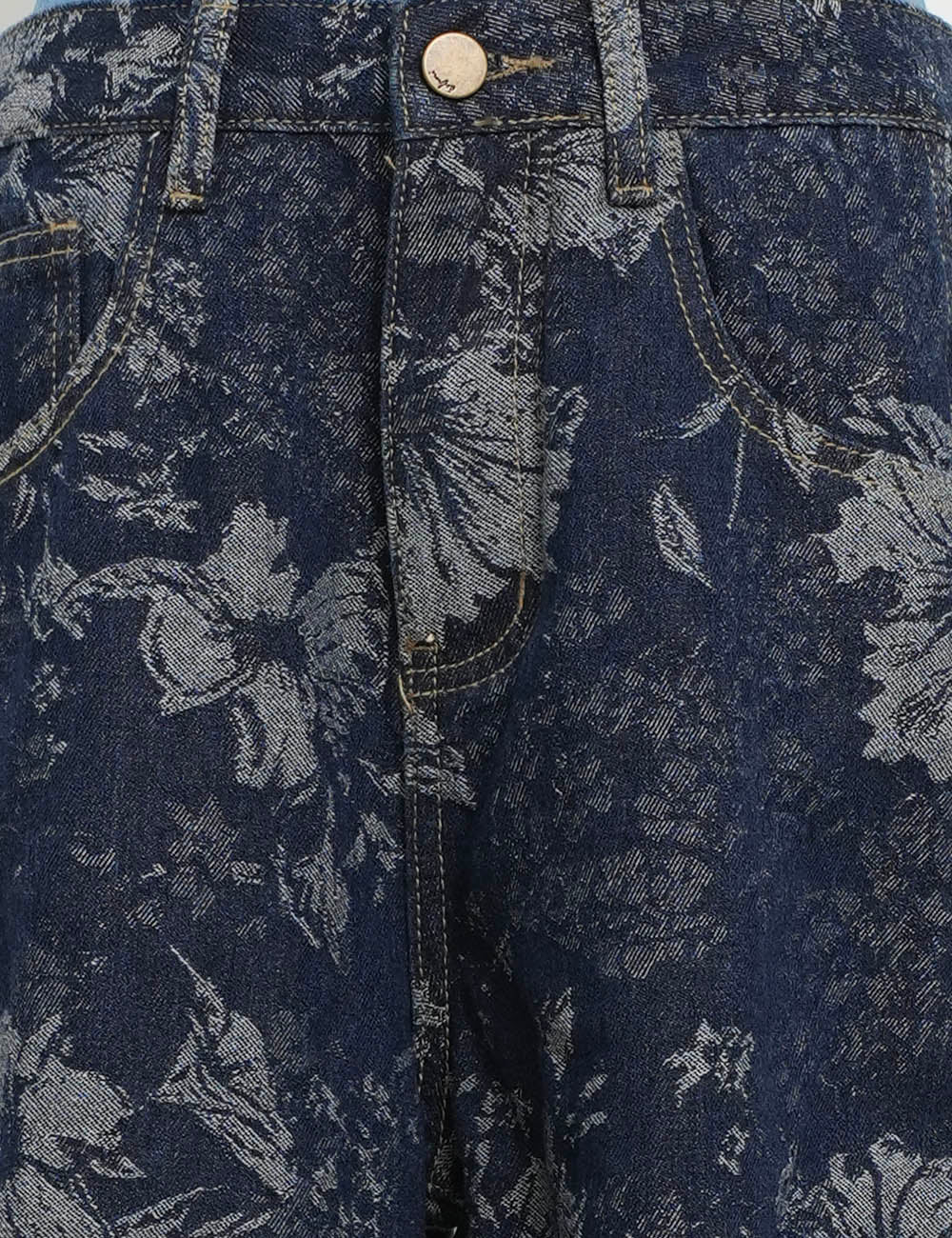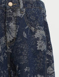 Ladies Vintage Denim Pants Floral Print Barrel Pants