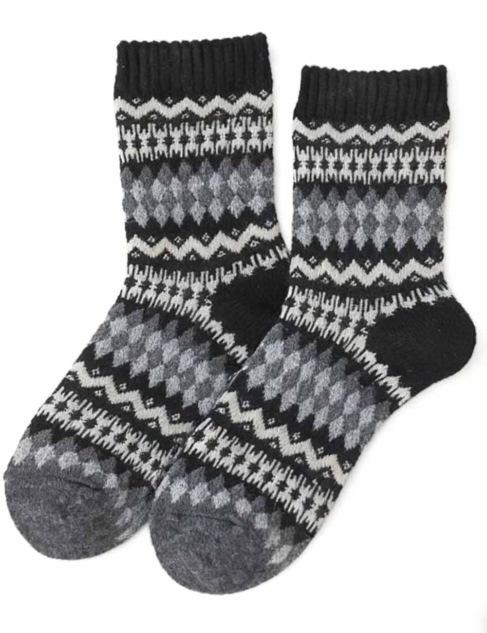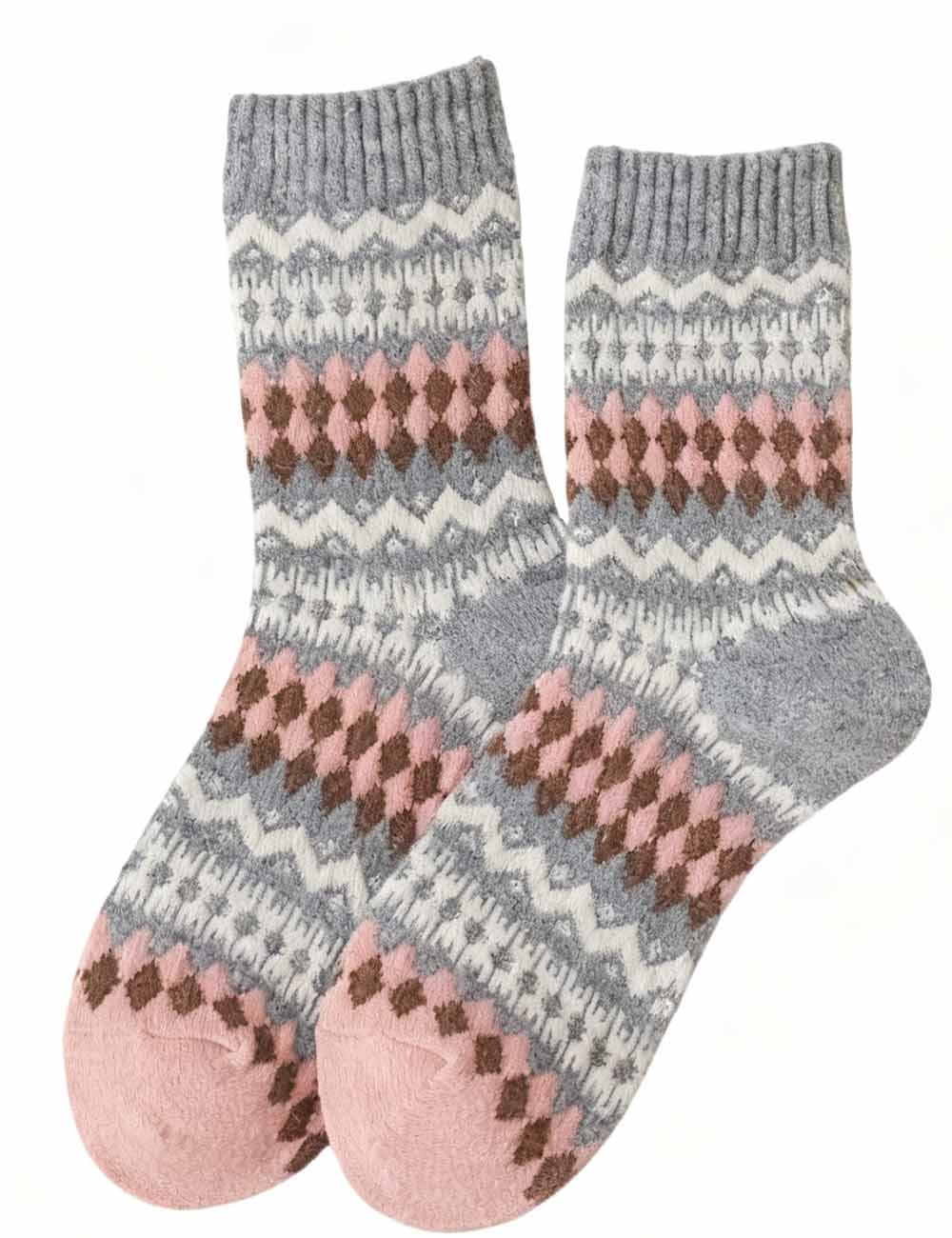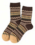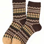Ladies Vintage Fair Isle Diamond Midi Calf Socks