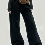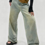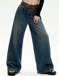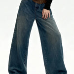 Ladies Vintage Fleece Lined Wide Leg Denim Pants