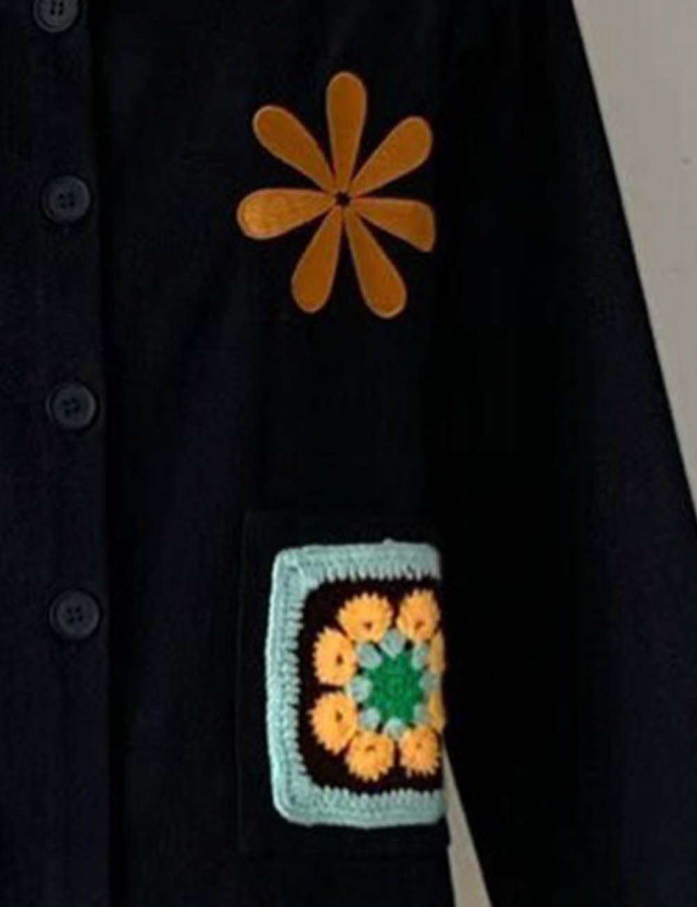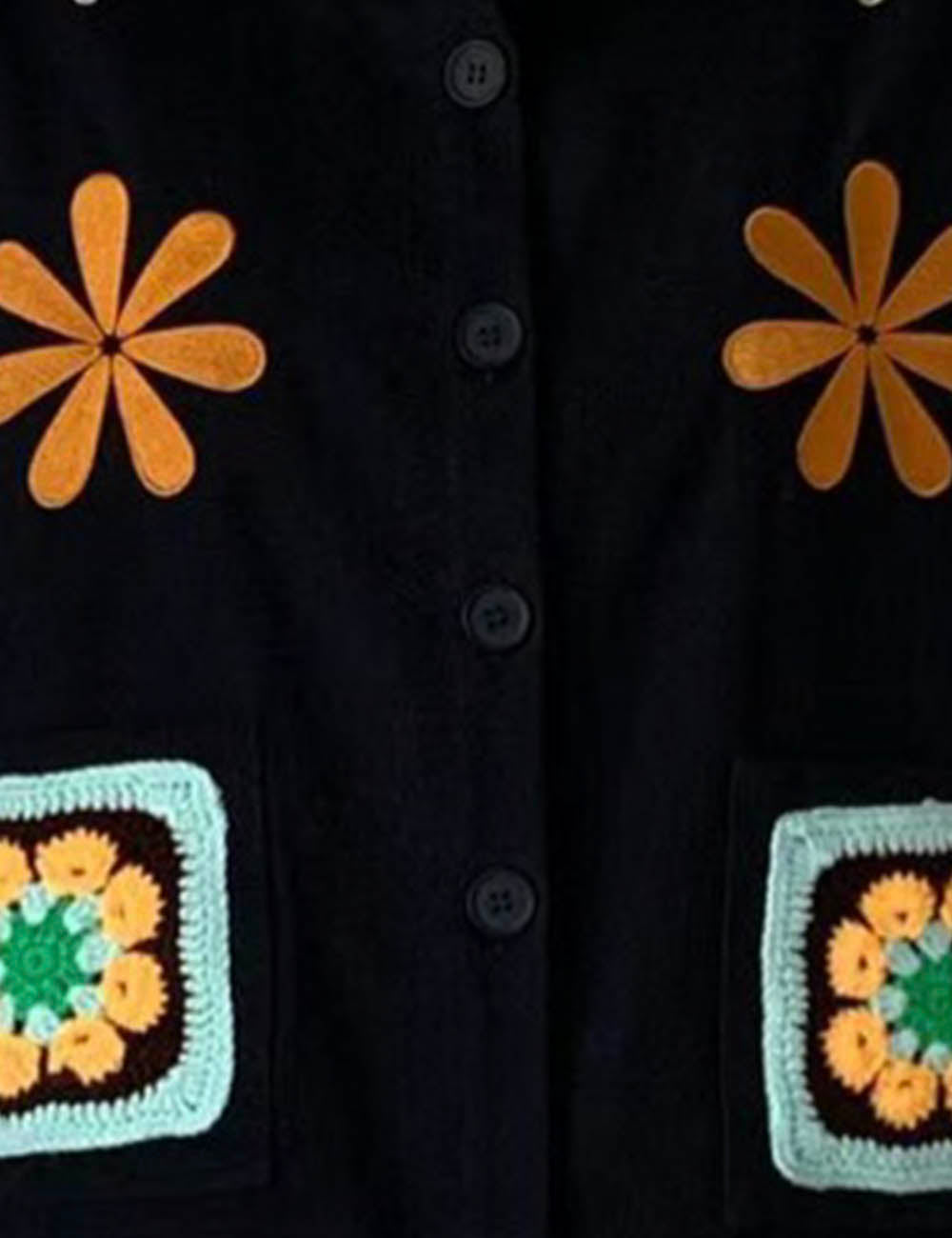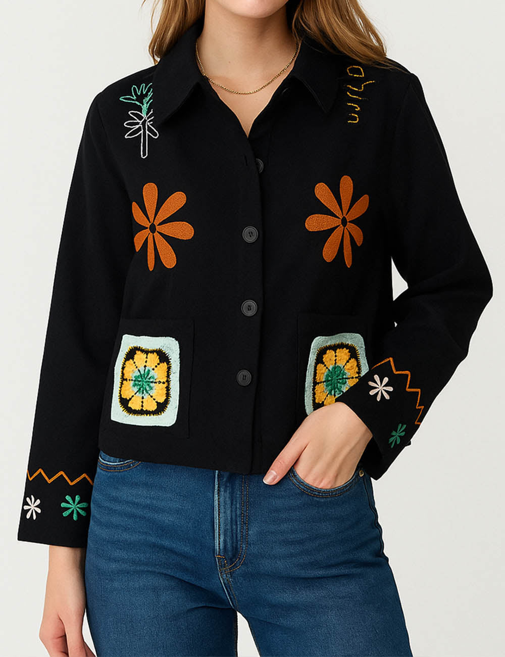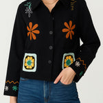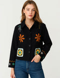 Ladies Vintage Floral Embroidery Shirt Button Down Jacket