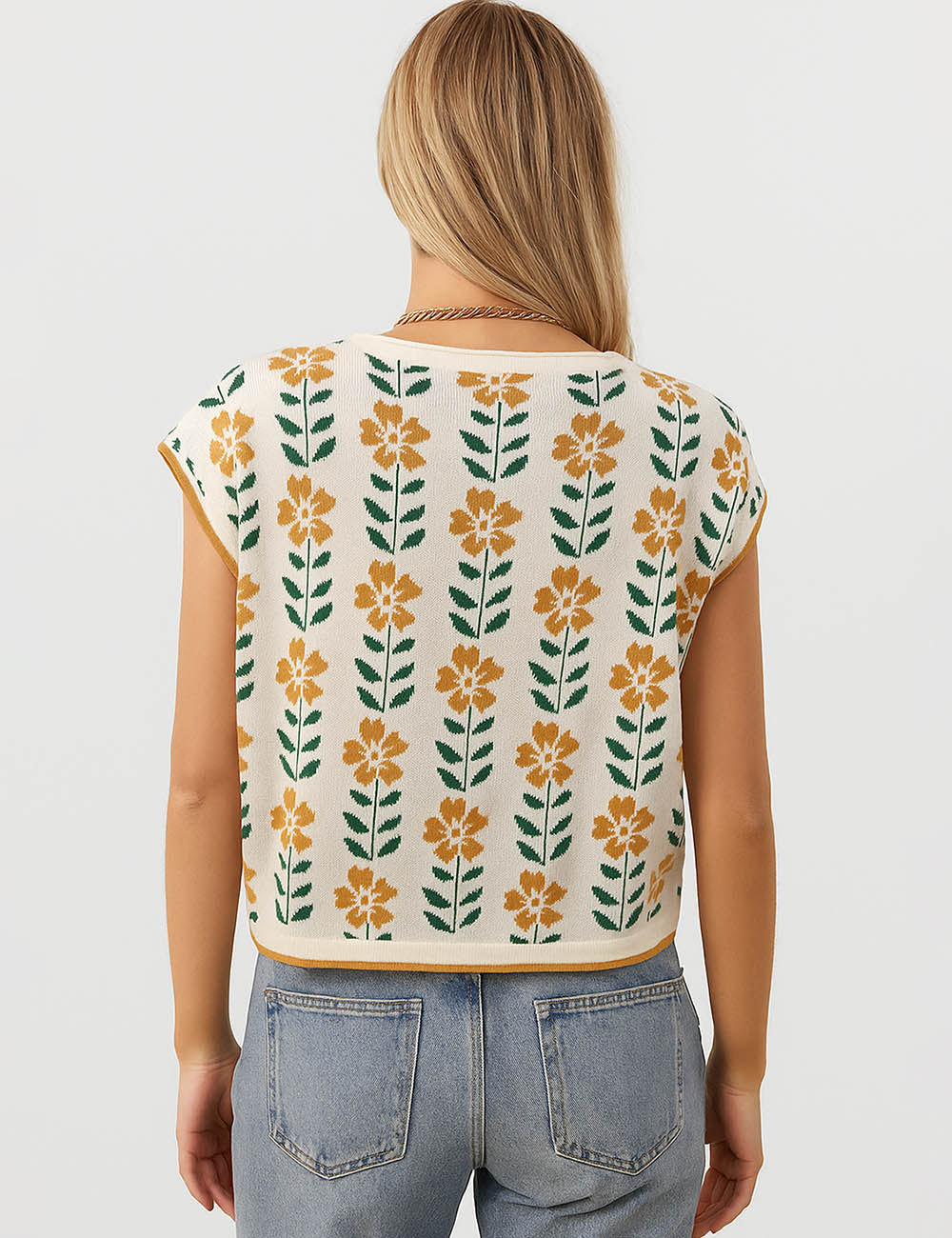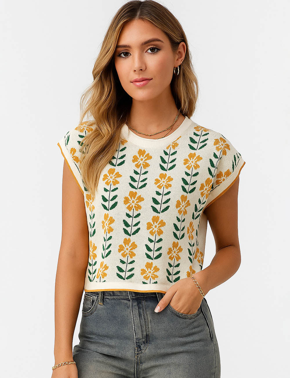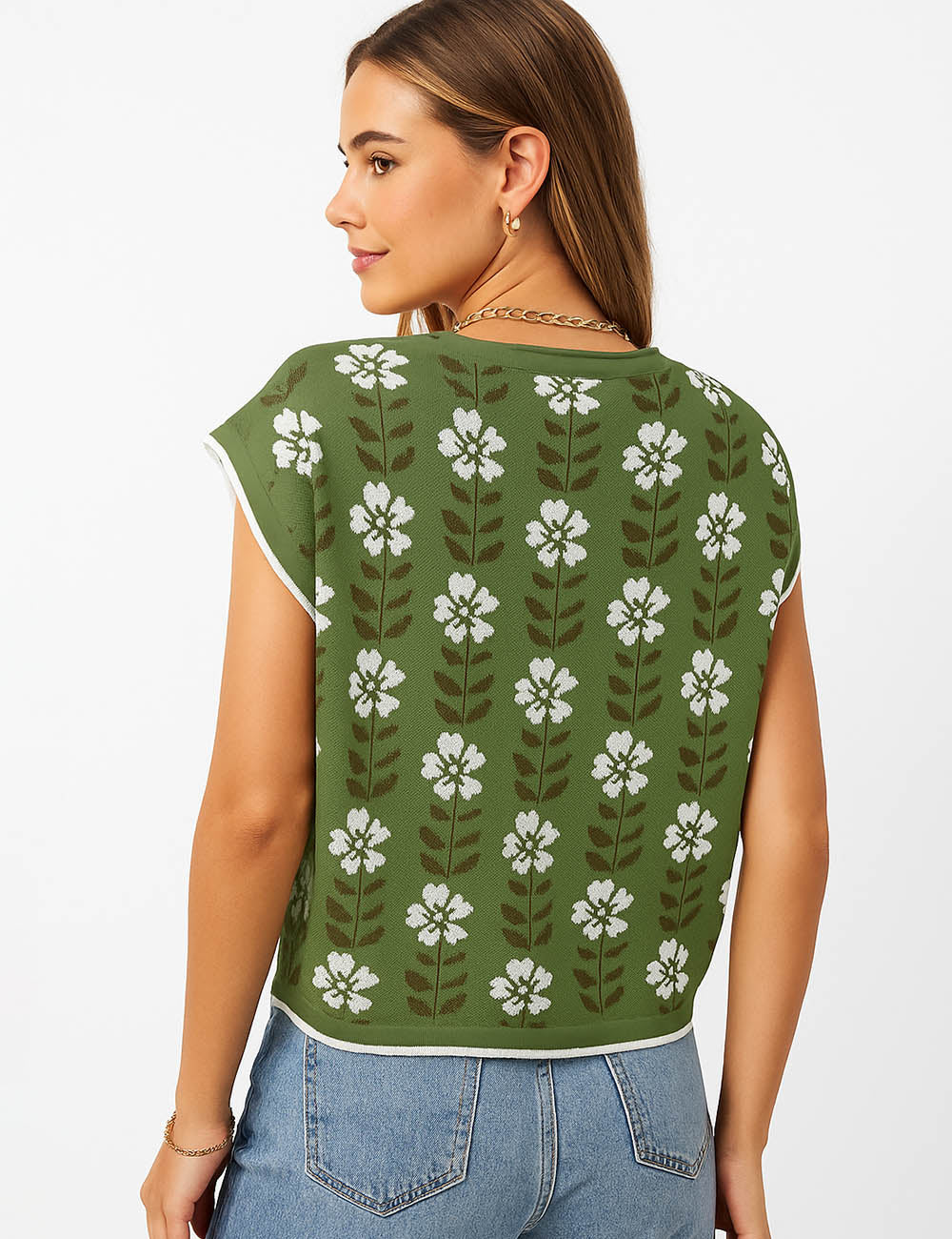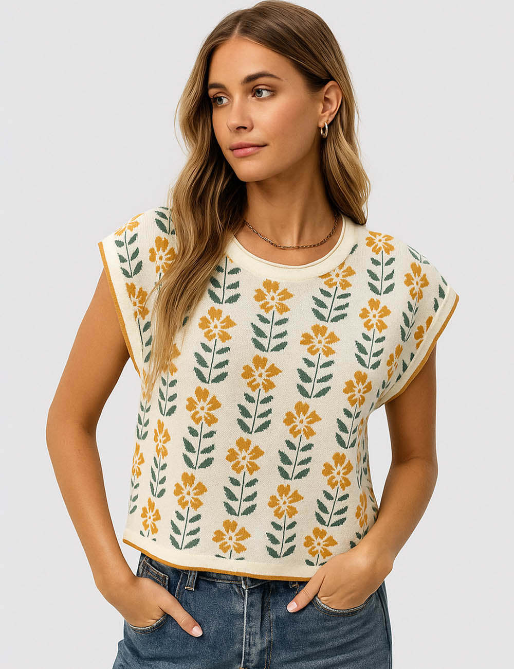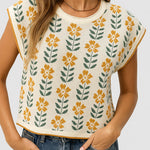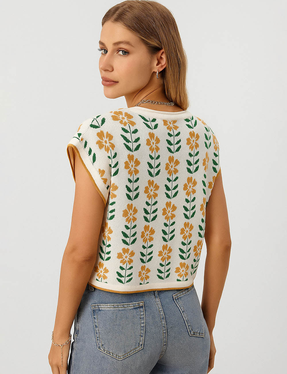 Ladies Vintage Floral Jacquard Cap Sleeves Sweater Vest