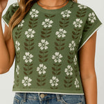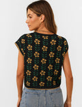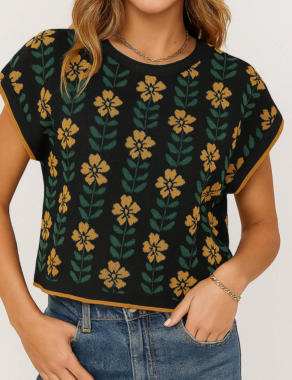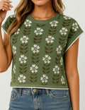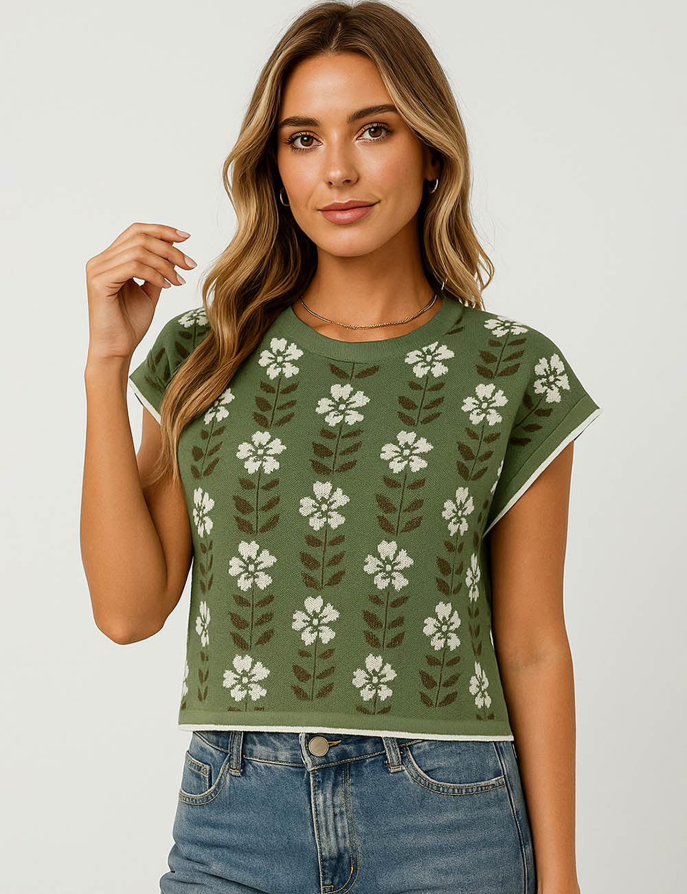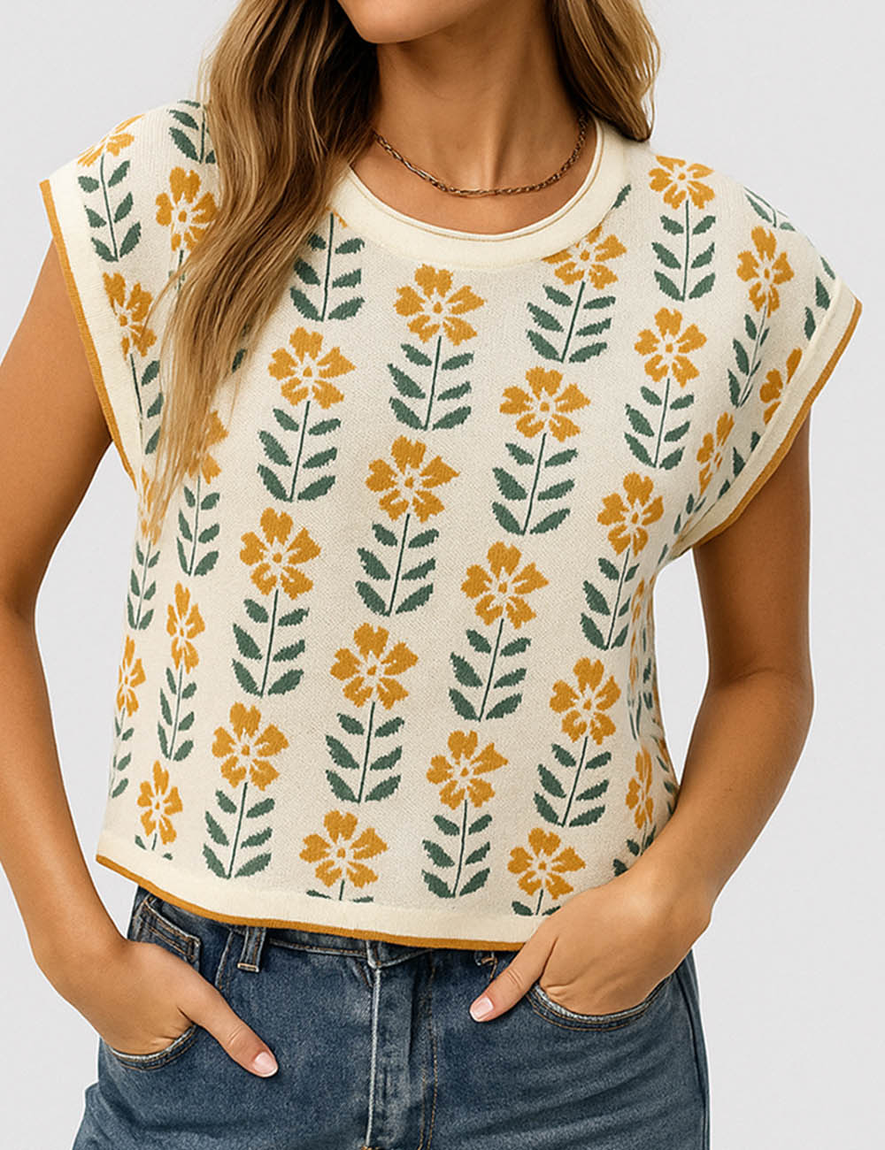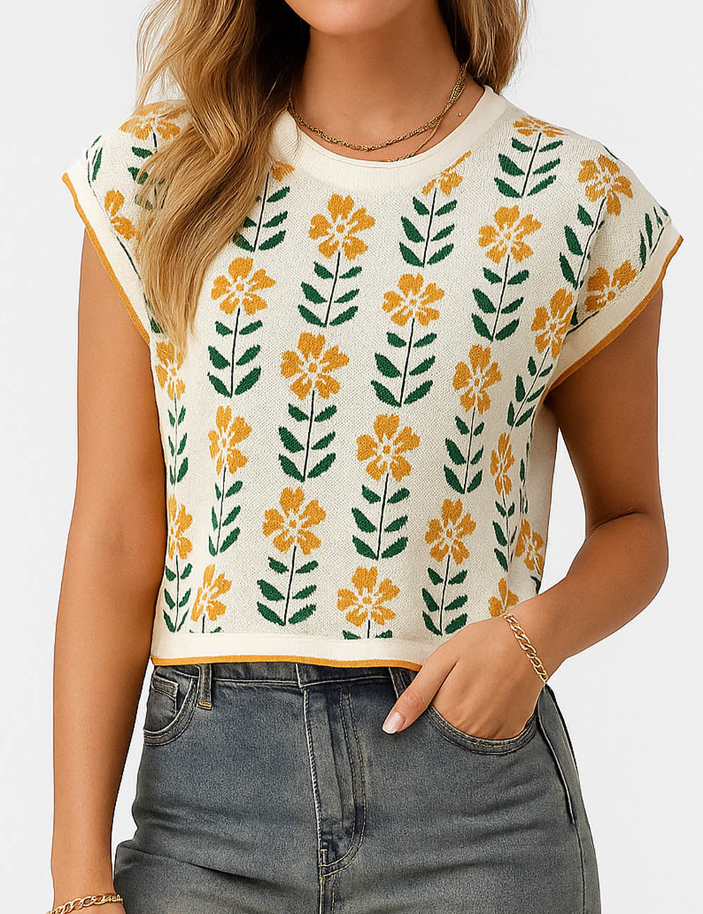 Ladies Vintage Floral Jacquard Cap Sleeves Sweater Vest
