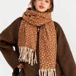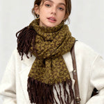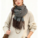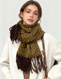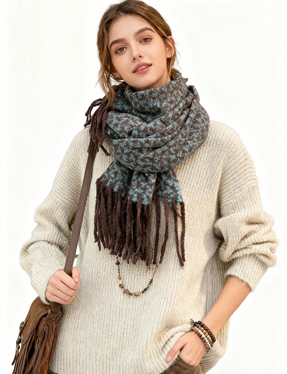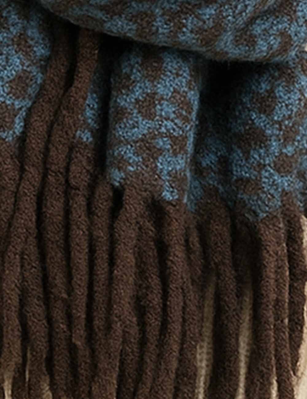 Ladies Vintage Floral Jacquard Fringe Oblong Knit Scarf