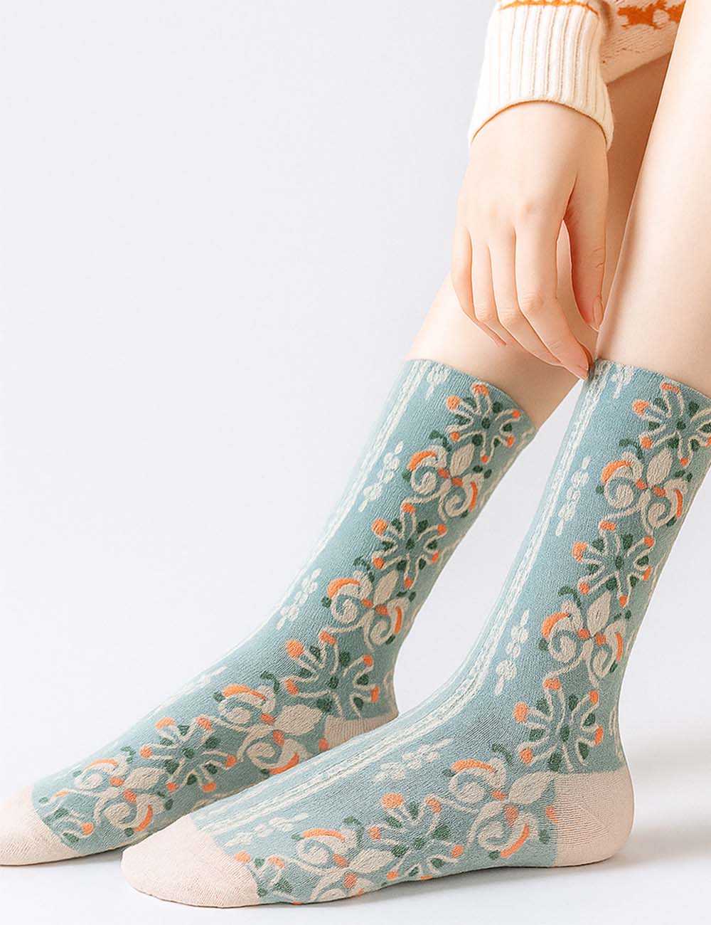 Ladies Vintage Floral Jacquard Mid Calf Socks