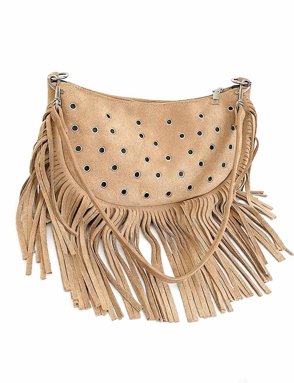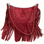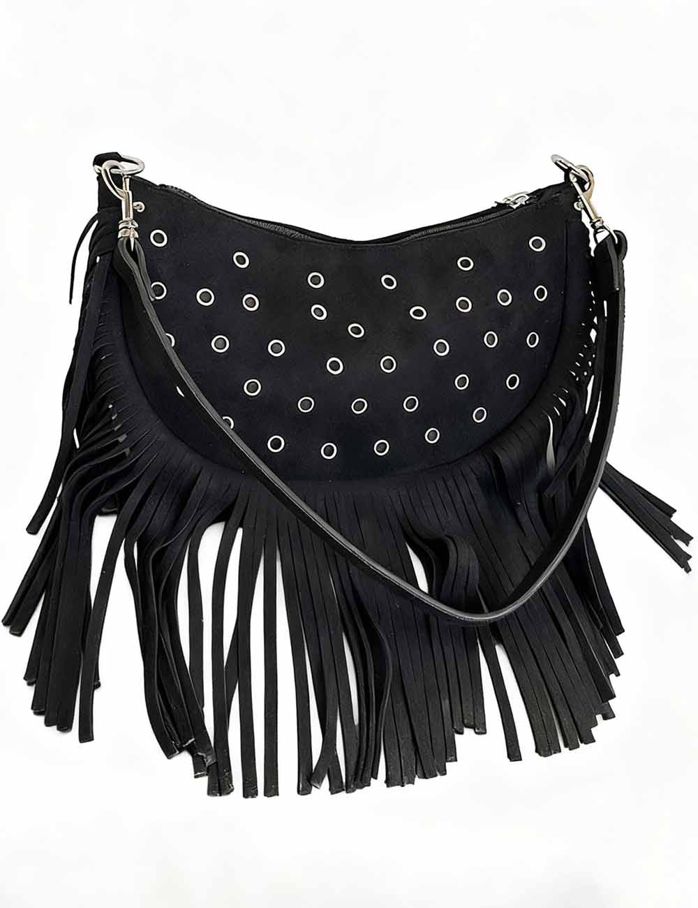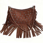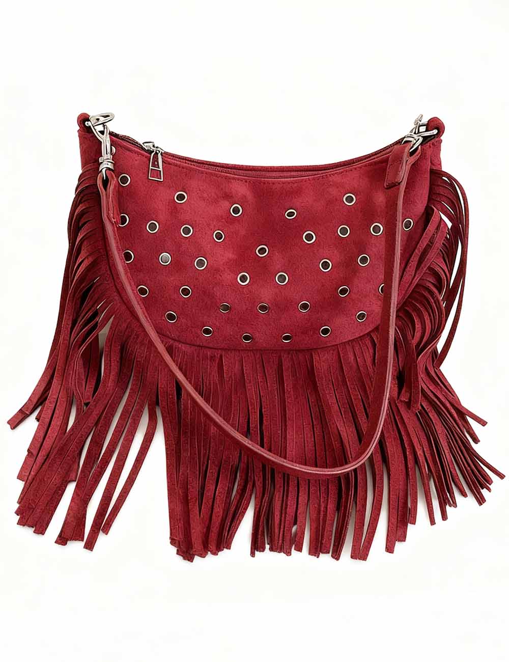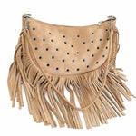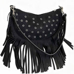 Ladies Vintage Fringe Studded Suede Shoulder Bag
